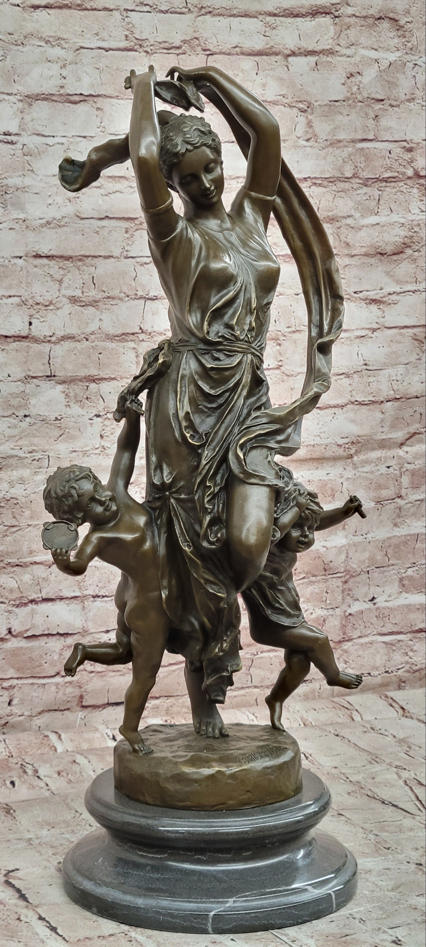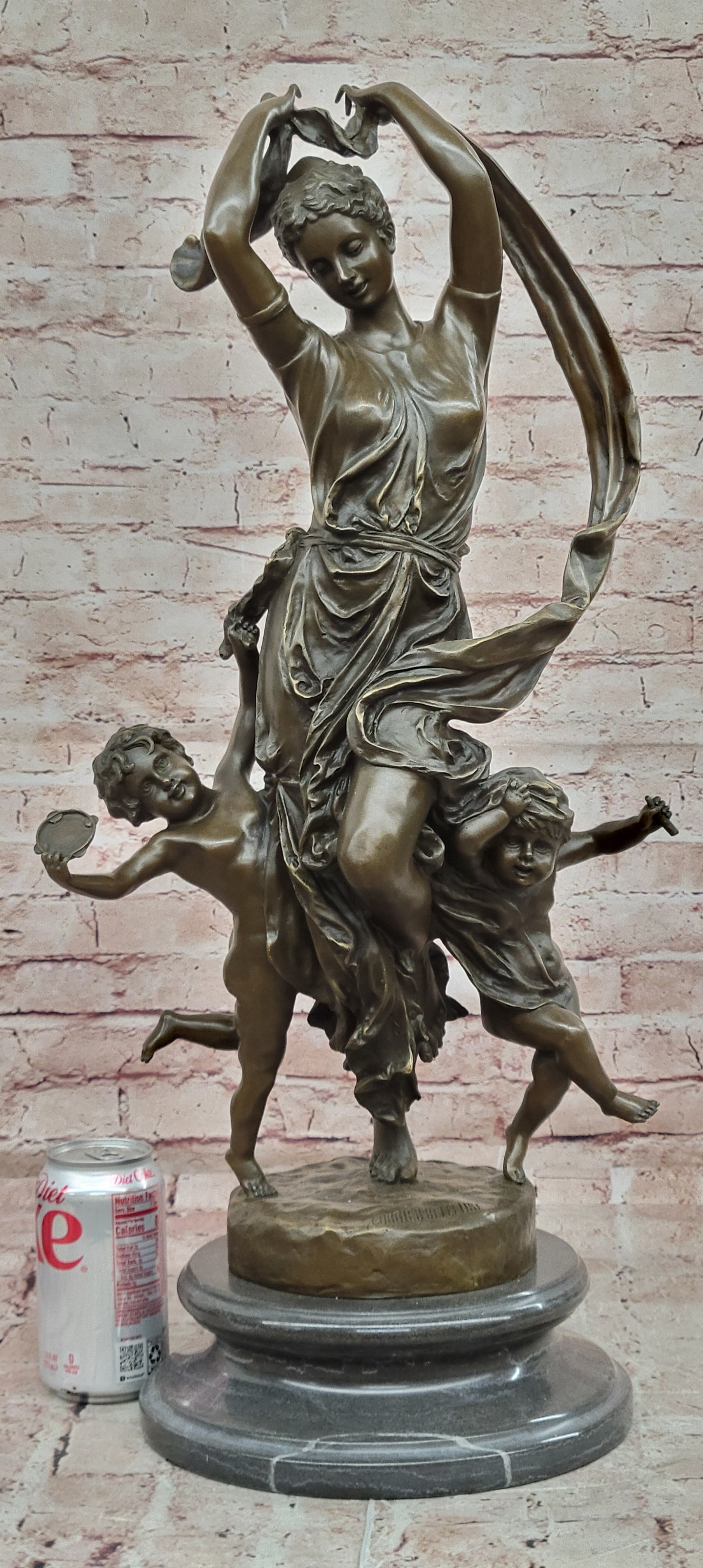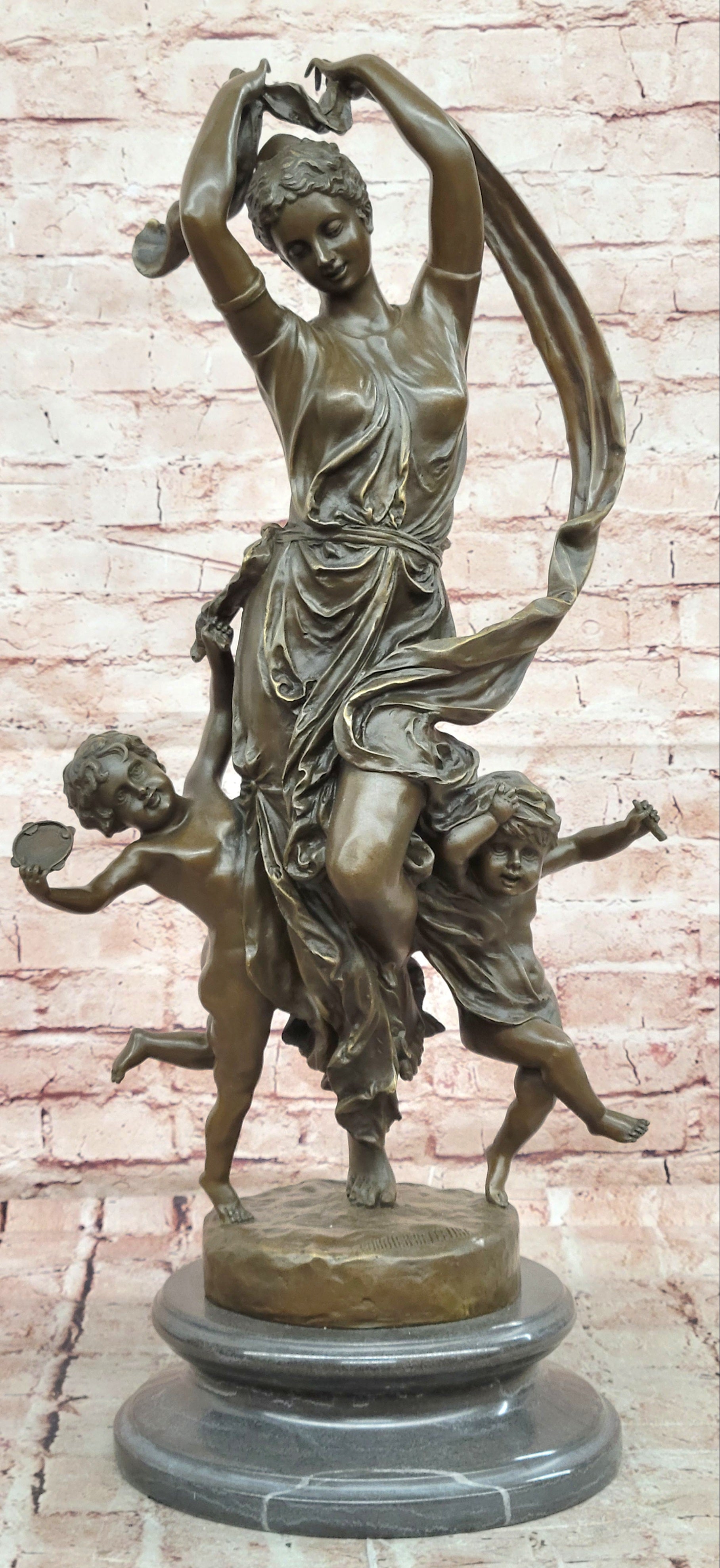 Allegorical Dance of Spring with Cherubs Bronze Sculpture on Marble Base
