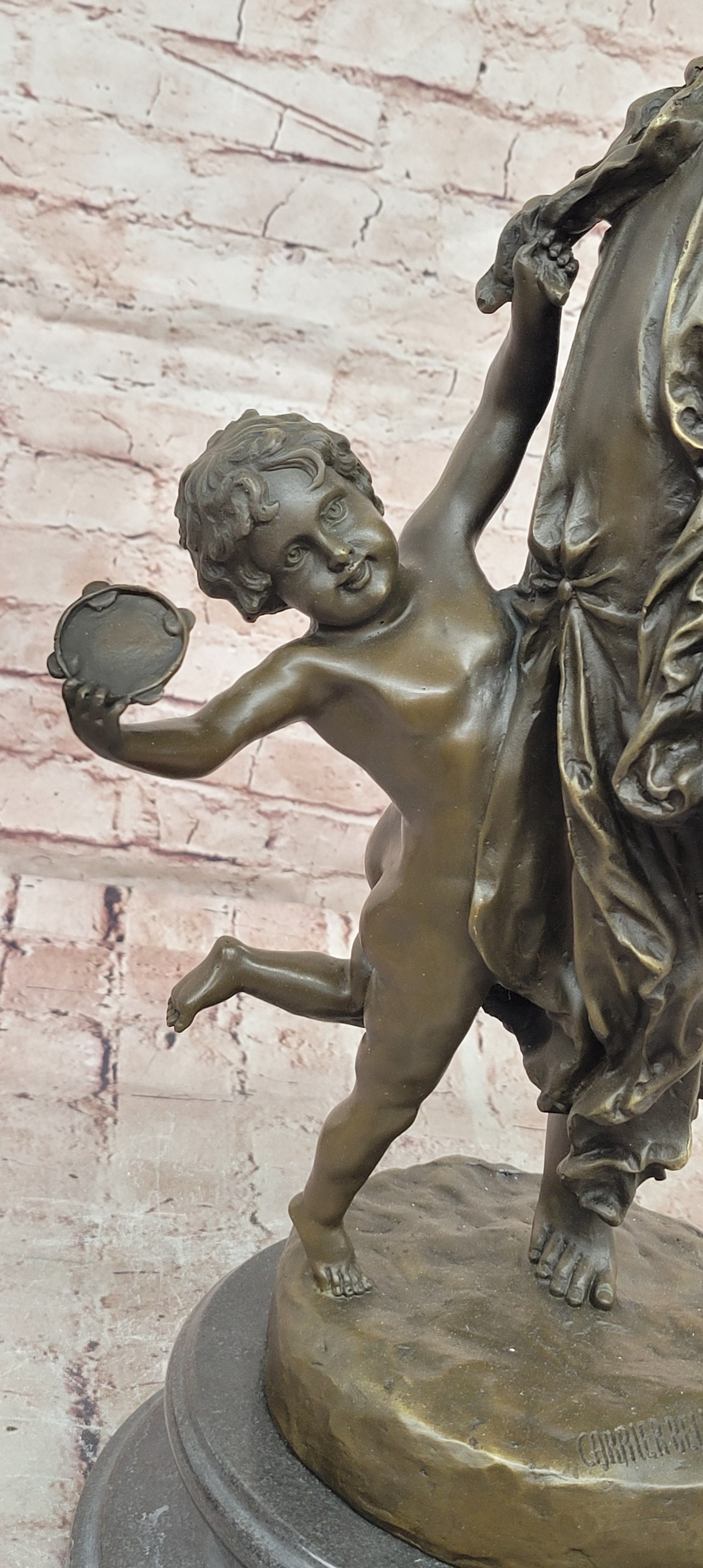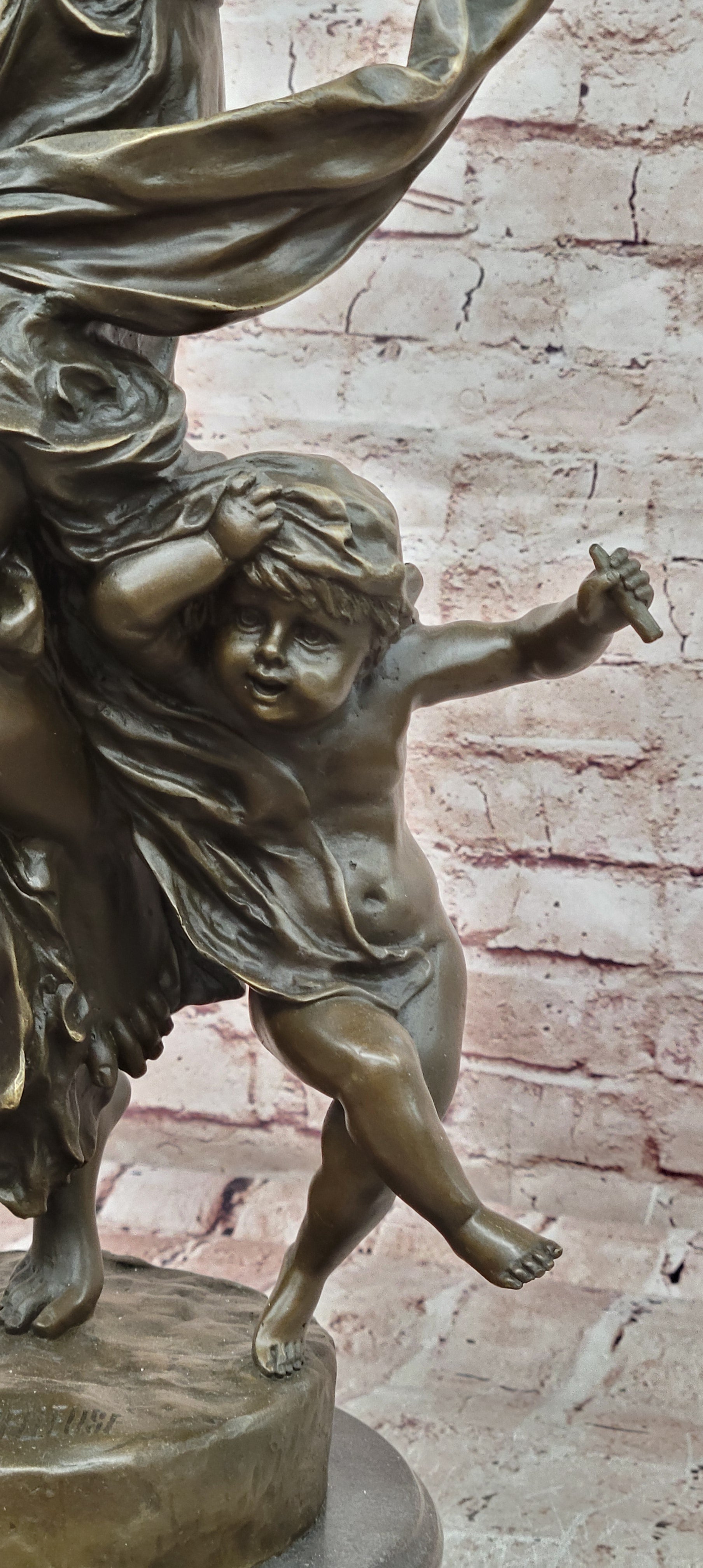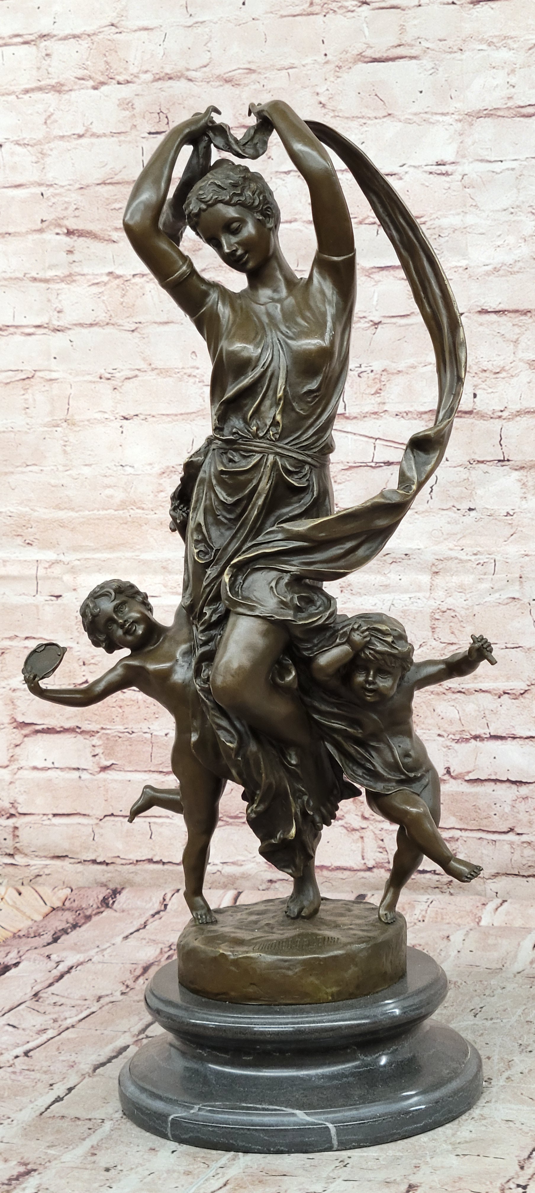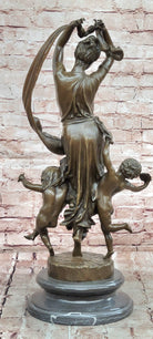 Allegorical Dance of Spring with Cherubs Bronze Sculpture on Marble Base
