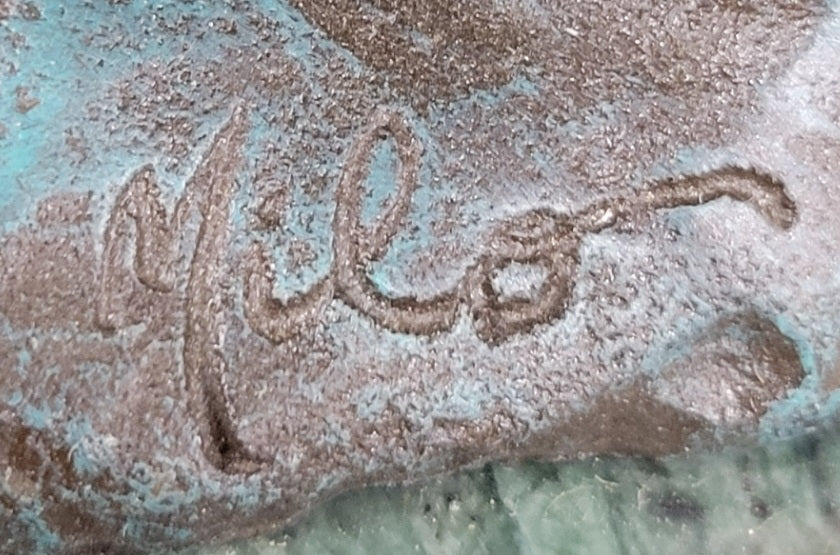 Crafted using the age-old method of lost-wax casting, this 100% bronze sculpture boasts intricate details and is stained with a brown patina finish, enhancing its depth and visual appeal. Mounted on a marble base, along with its detailed bronze plinth, the sculpture is a testament to the artist Milo's skill and vision. Milo's signature adds a final touch of authenticity to this masterpiece. The eagle, with its associations with success, prosperity, and wealth, stands as both a symbol of nature's majesty and a representation of cultural and spiritual significance.
