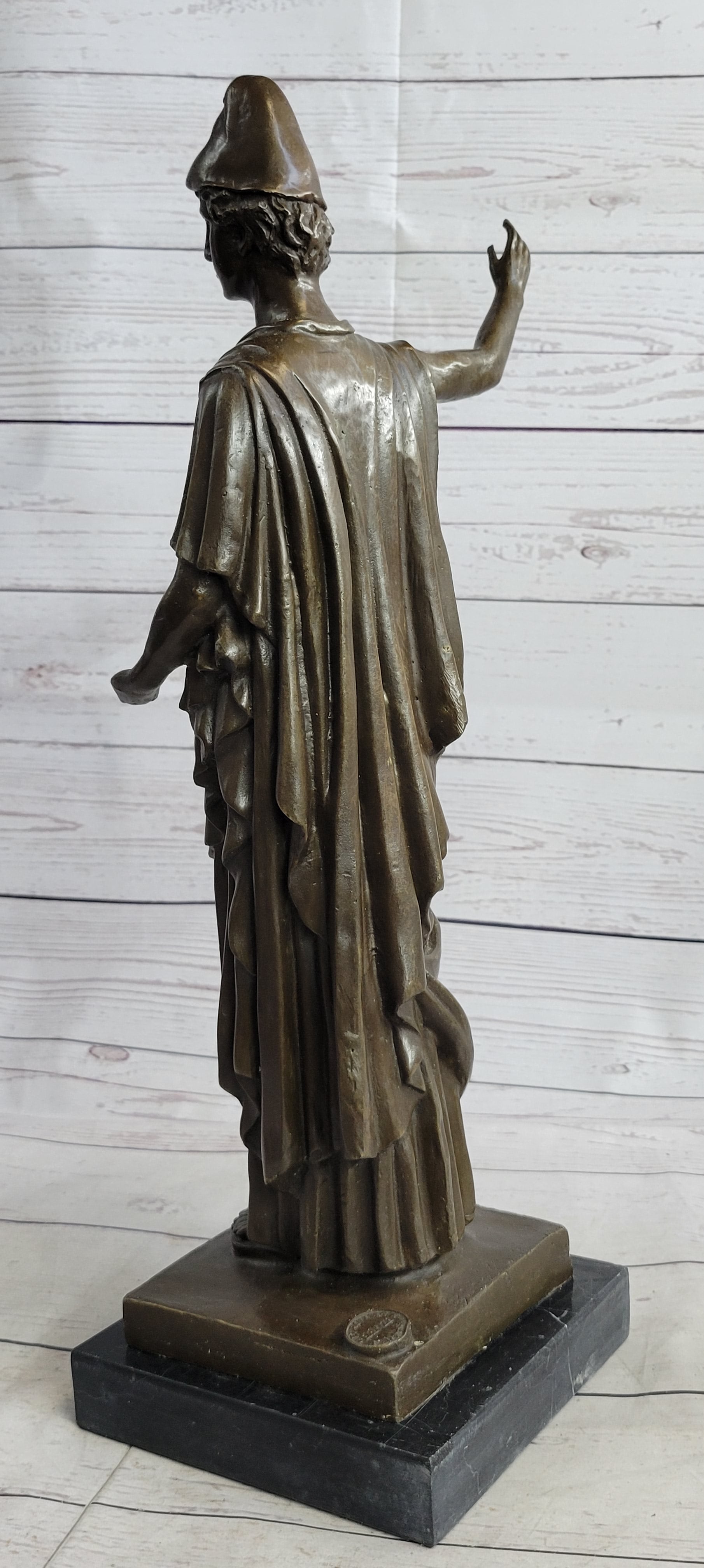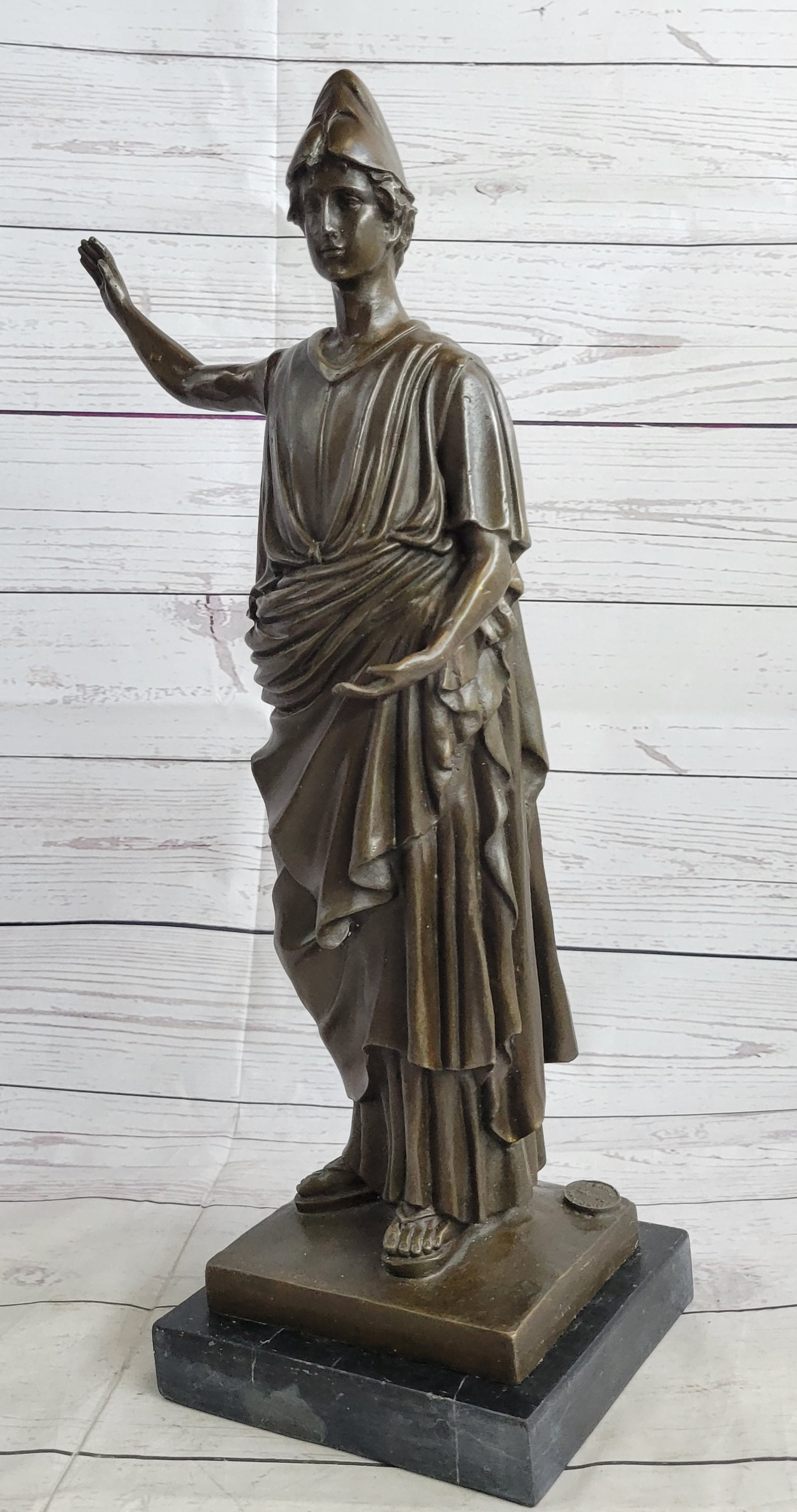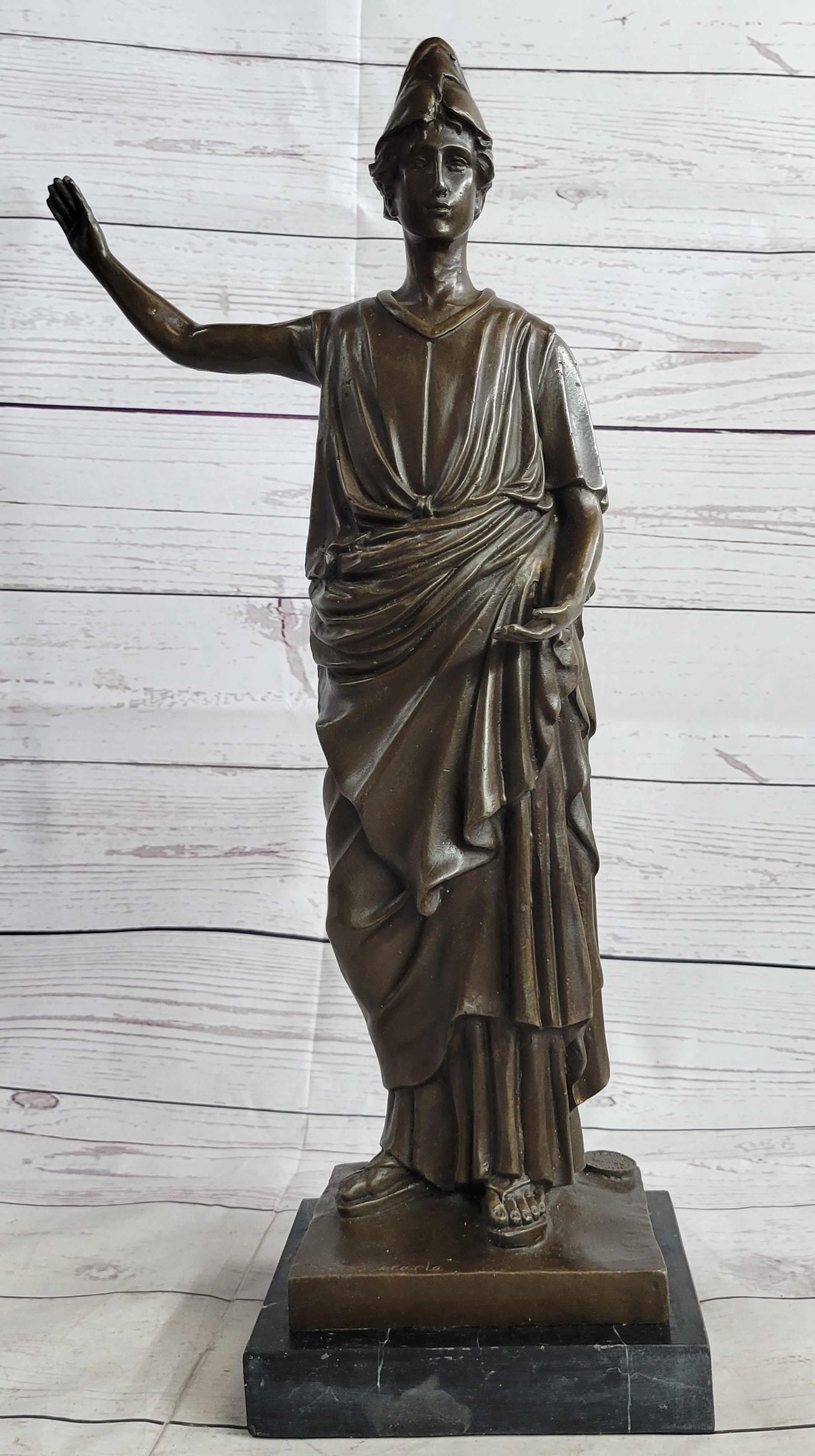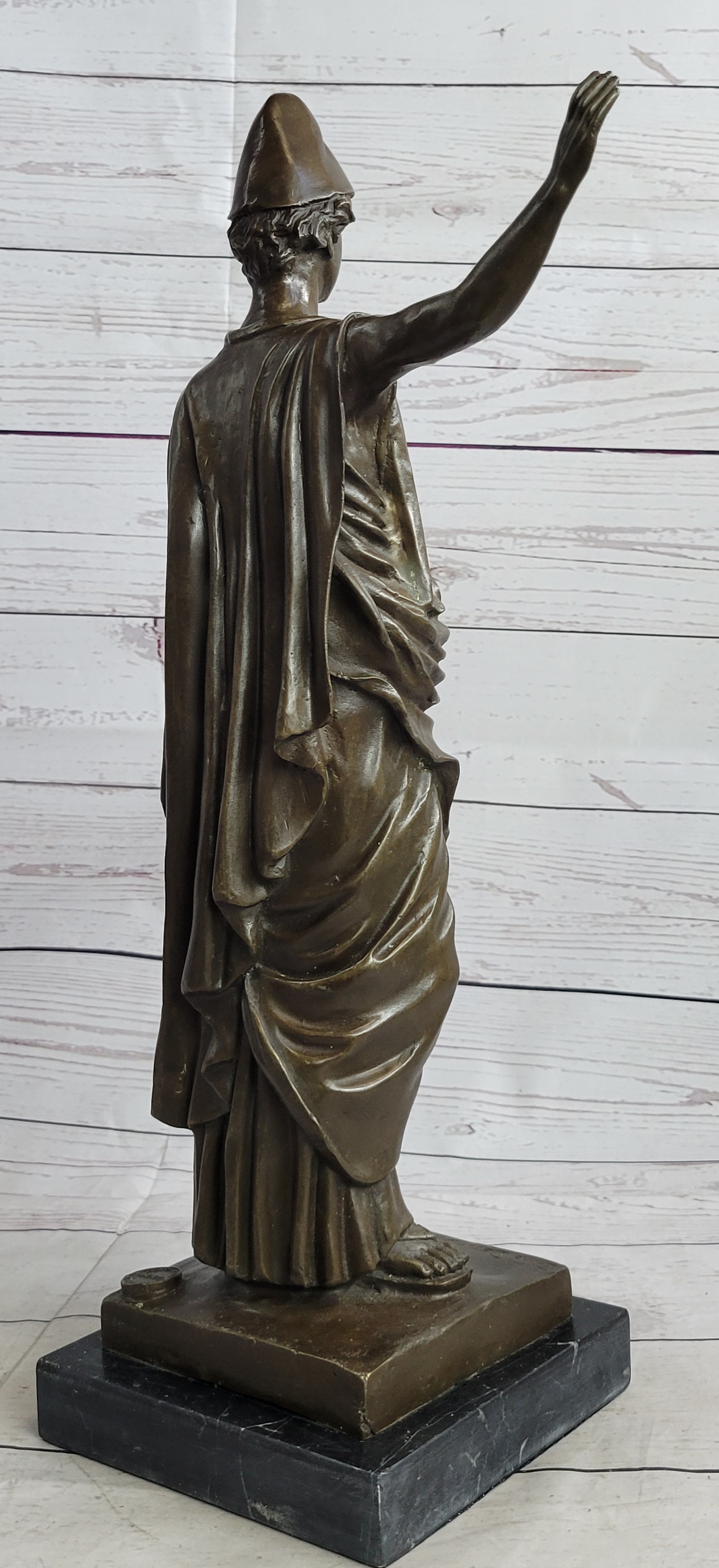 Ancient Politician Greek Roman European Man Bronze Statue Sculpture on Marble Base