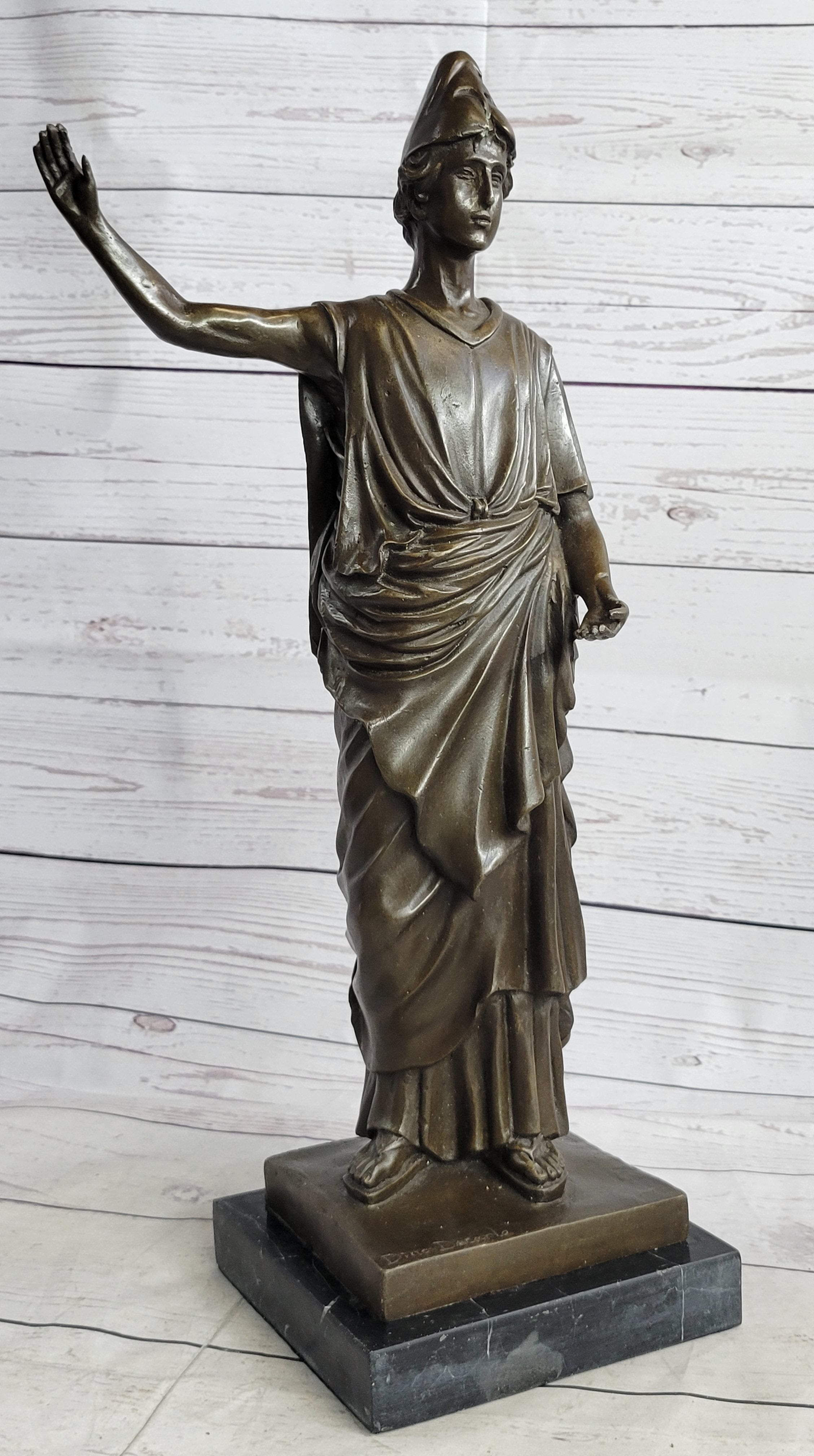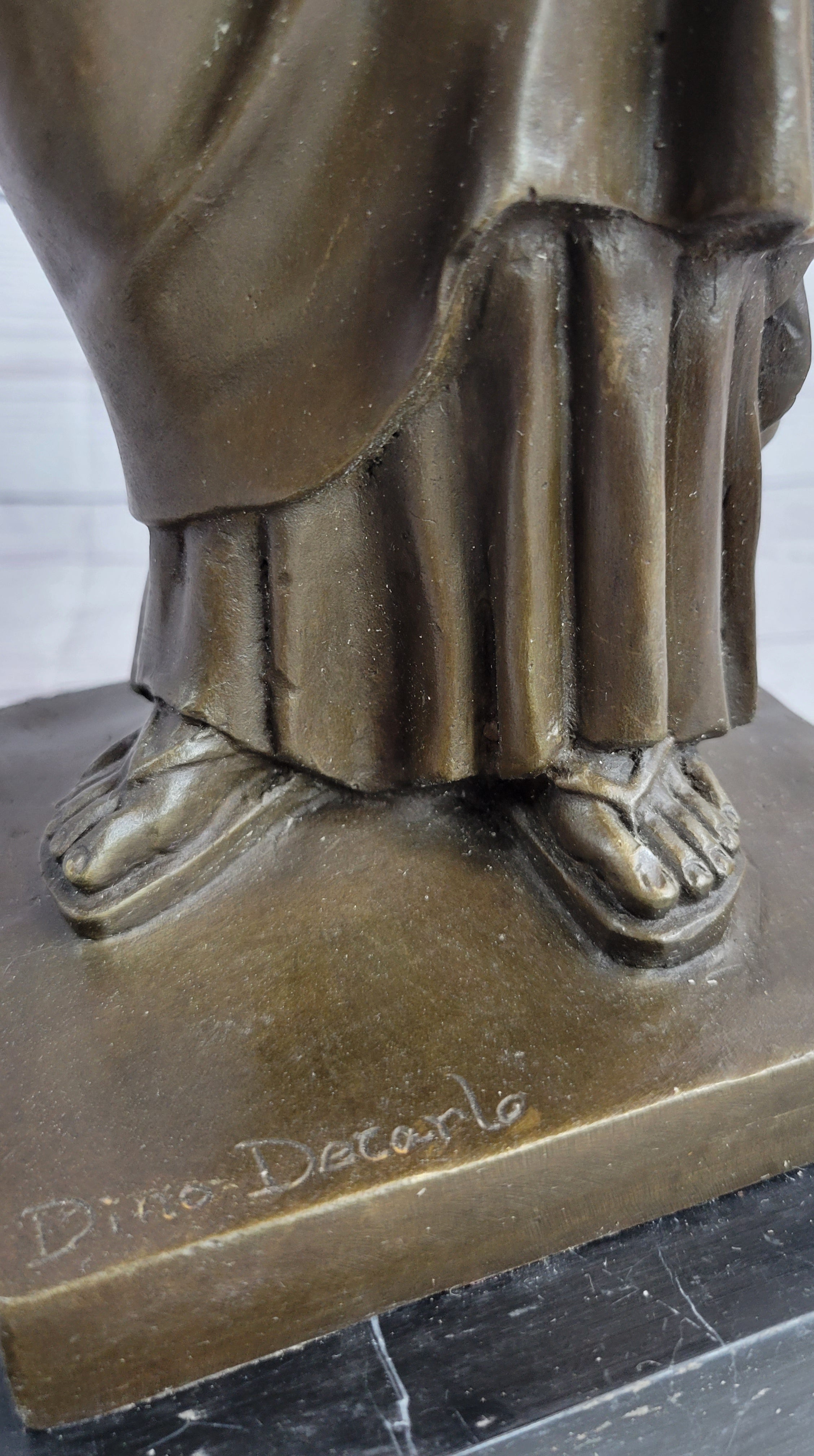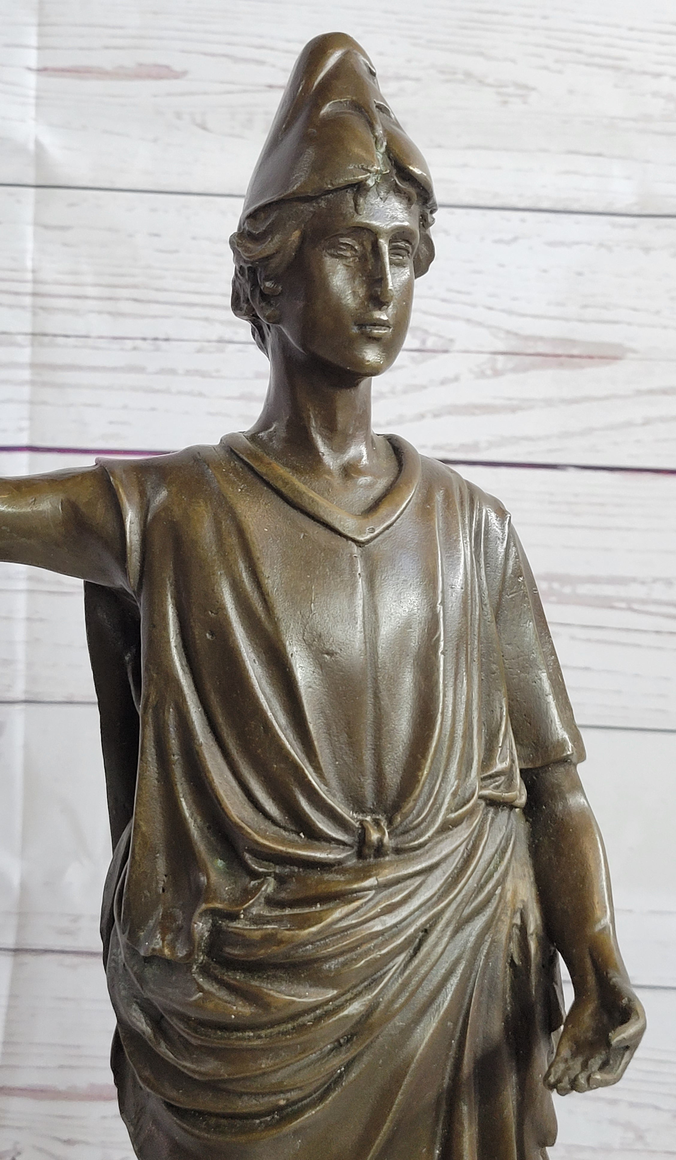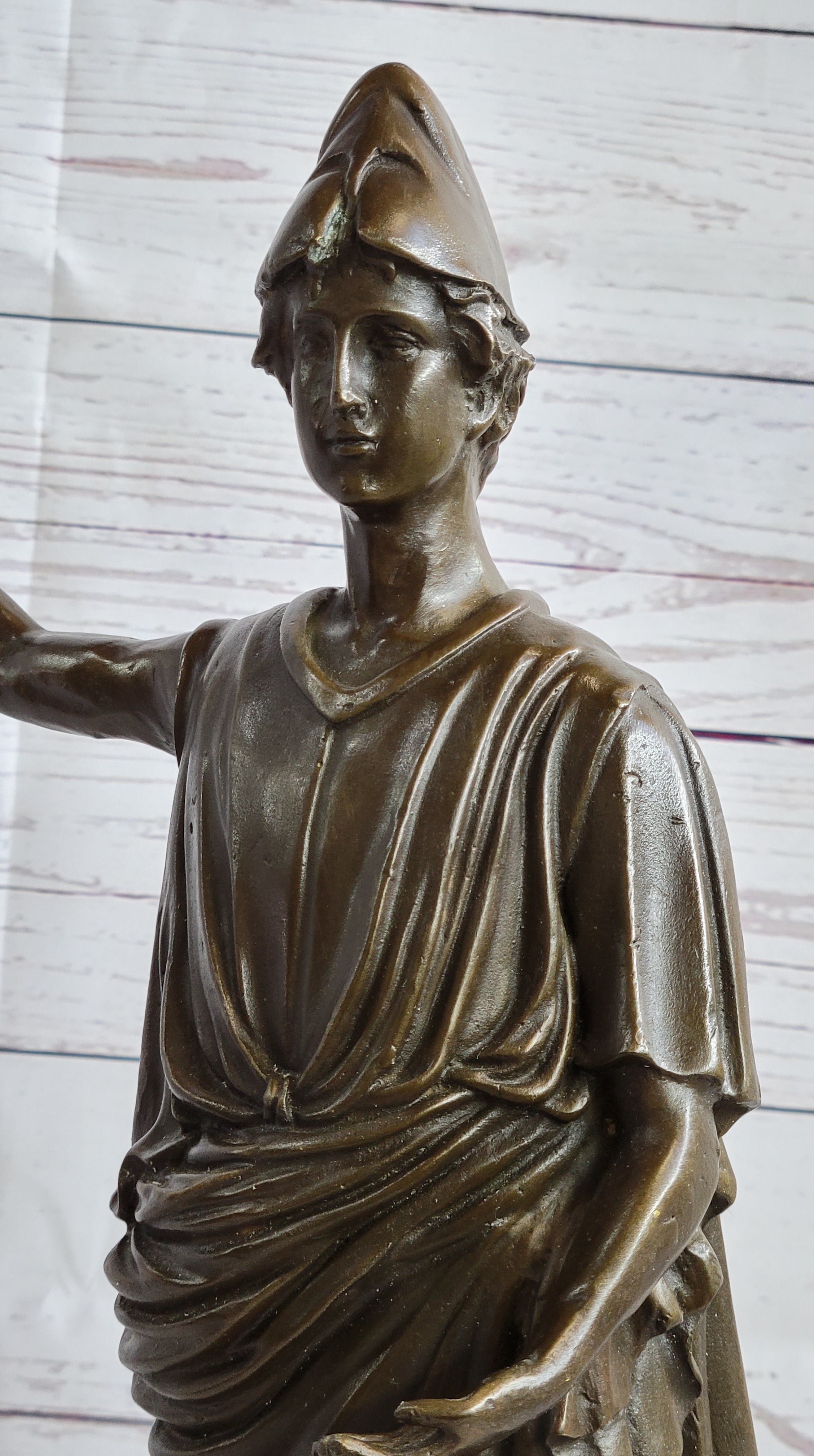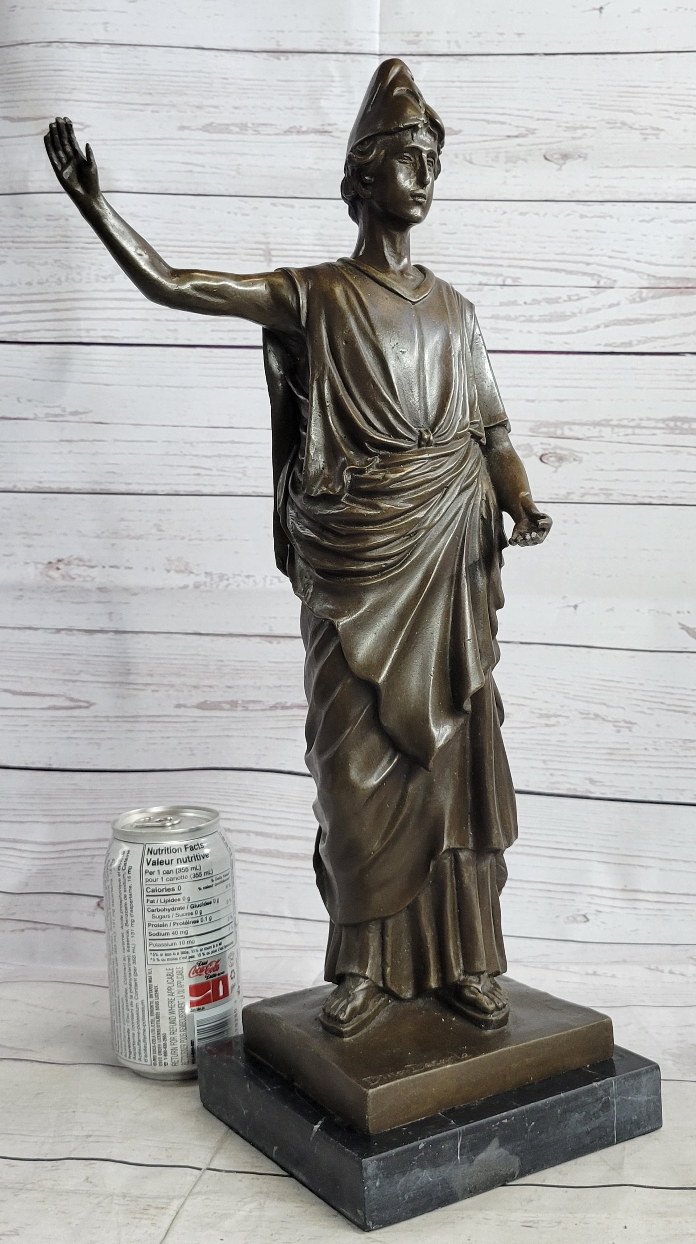 Ancient Politician Greek Roman European Man Bronze Statue Sculpture on Marble Base