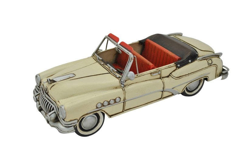 Decorate for any table, desk, or shelf in sporty fashion with Our  Rustic Buick Roadmaster Convertible car. Featuring a rustic iron frame, this charming vintage Classic Car includes  a fine detail's. The red metal seat  are finished in natural colors. For more than 20 years, European Finery has been providing high quality sculpture, accessories, and decor for any room for its customers' homes. Based in New York area, We grown to become one of the largest importers and wholesalers of home decor and hand made sculptures in the country. Whether you're looking for accent Sculpture, wall decor, vintage Toys, or just about any outdoor lifestyle sculpture , We Became a proven and trustworthy name that has become synonymous with superiority.2. Overall measurement (approx. H X W) :4 x 11 Inches