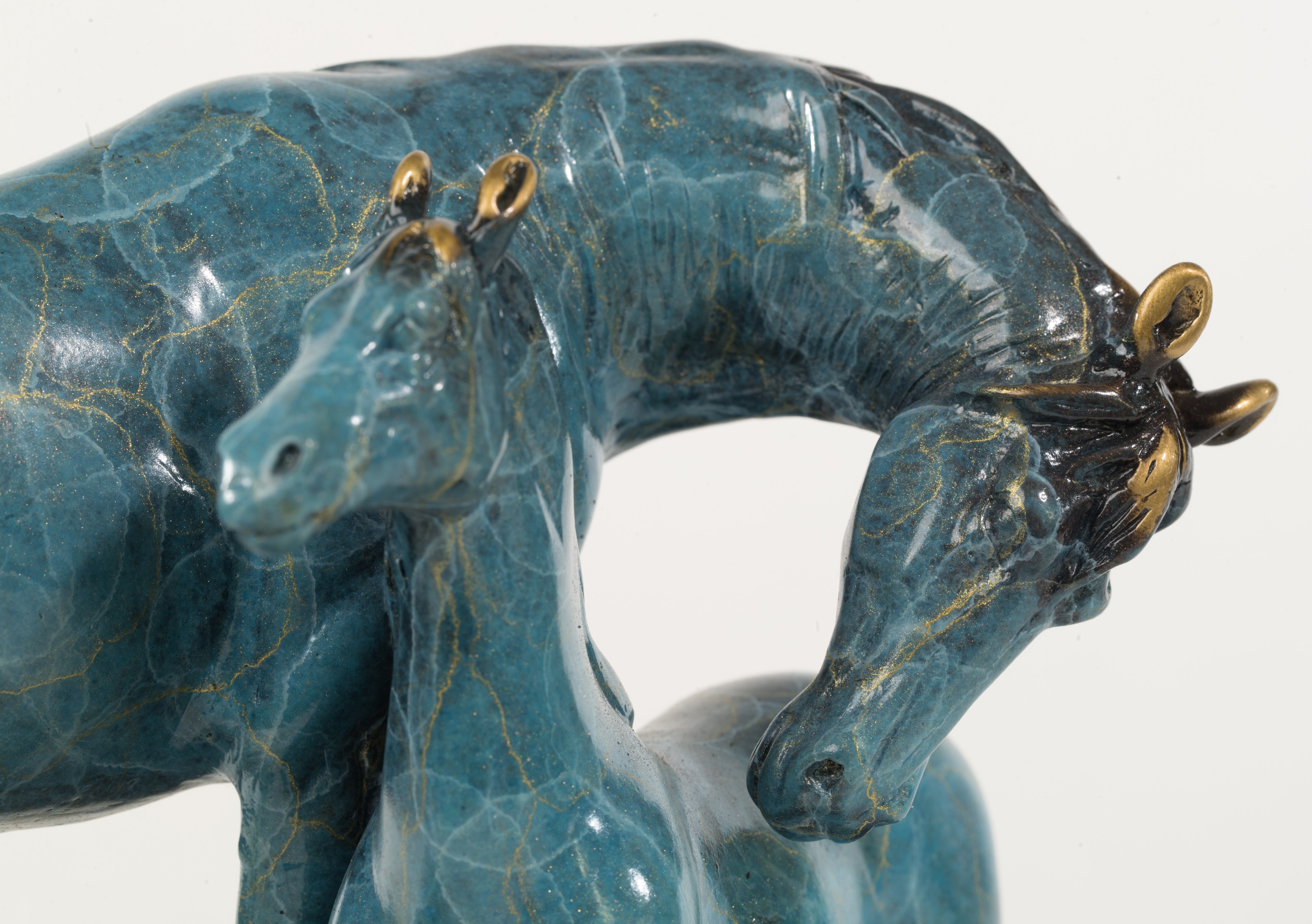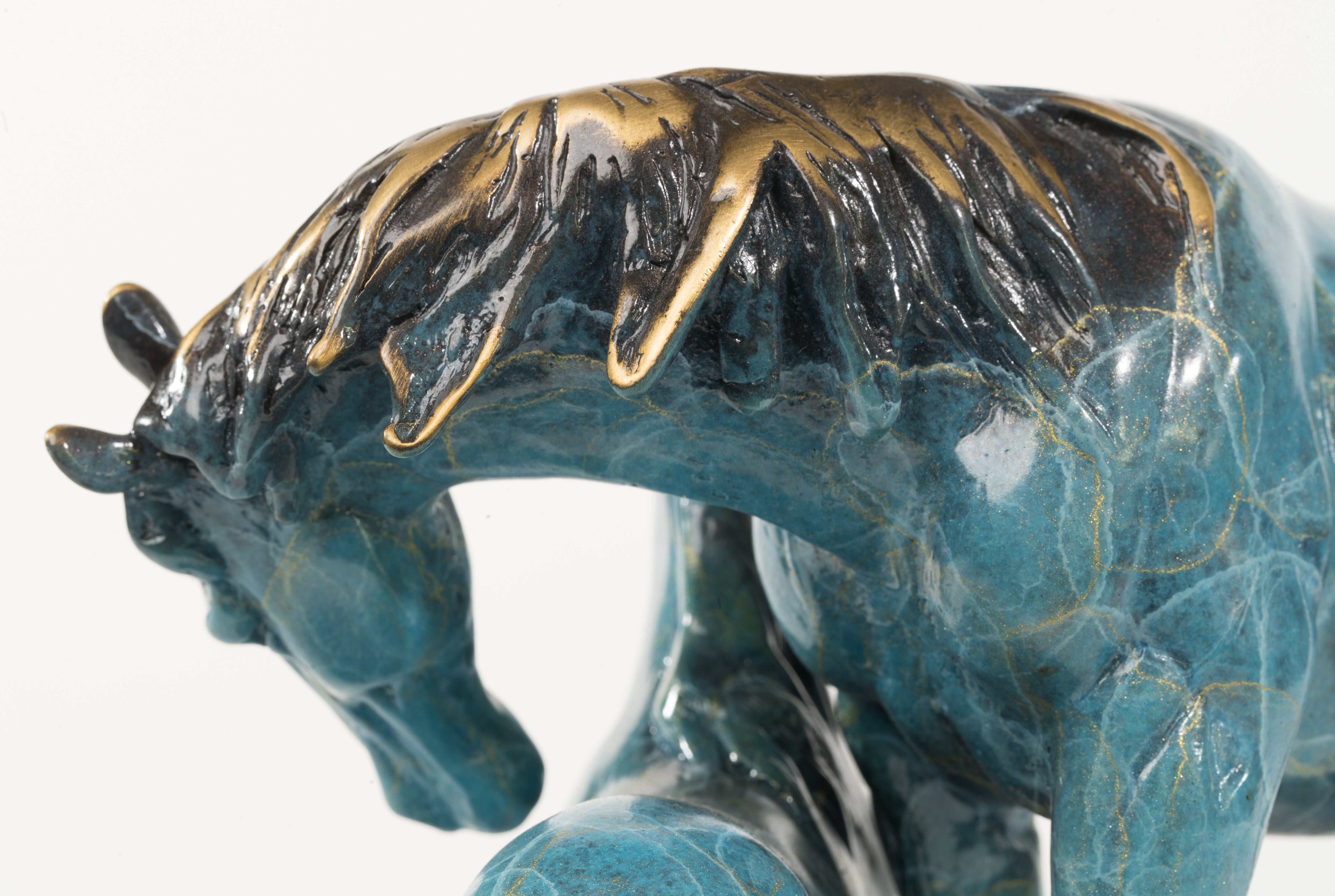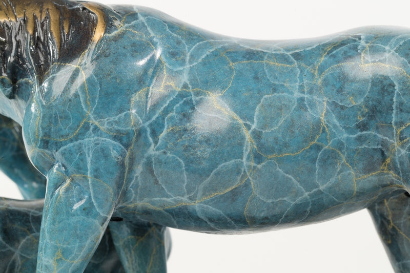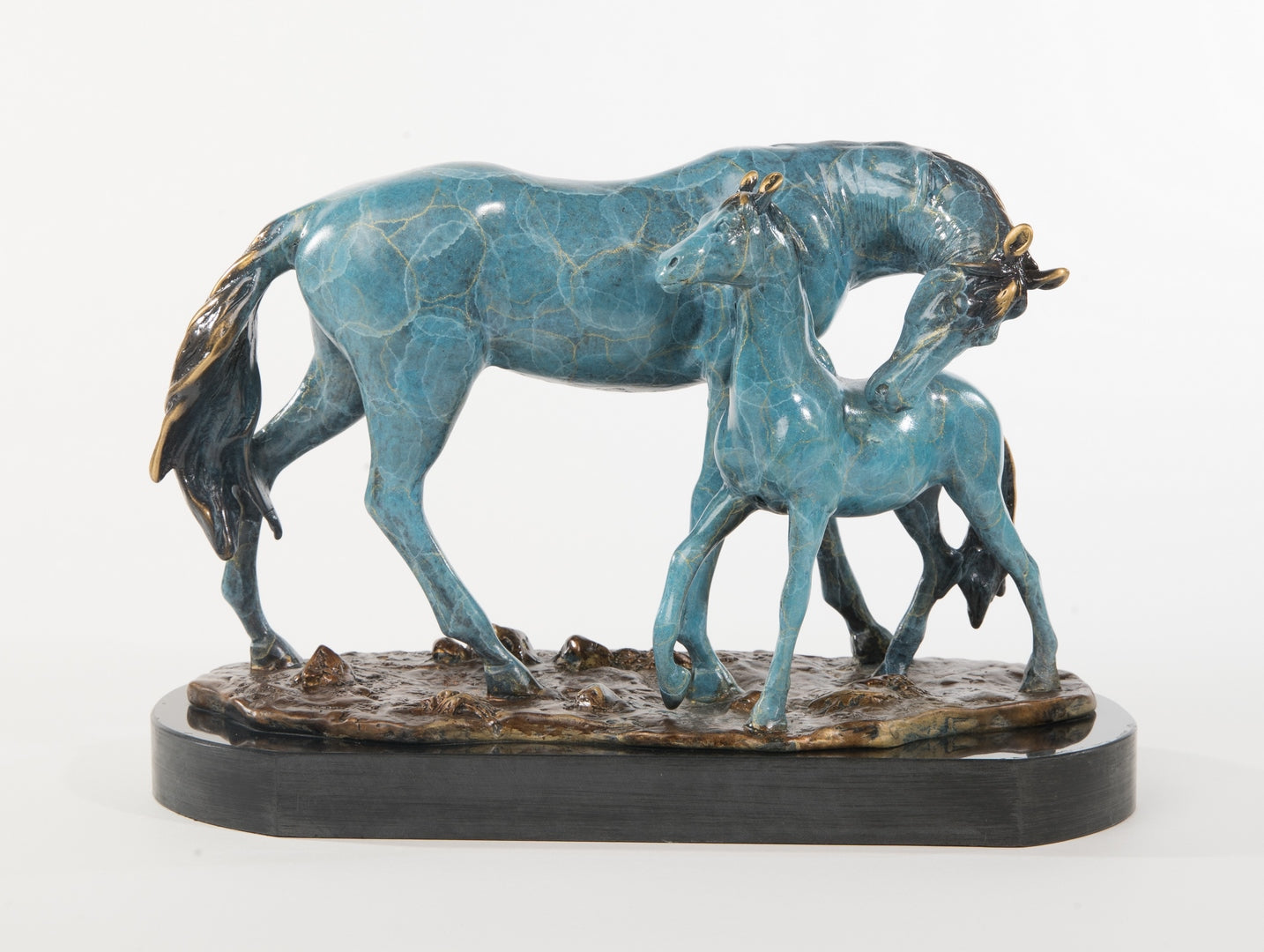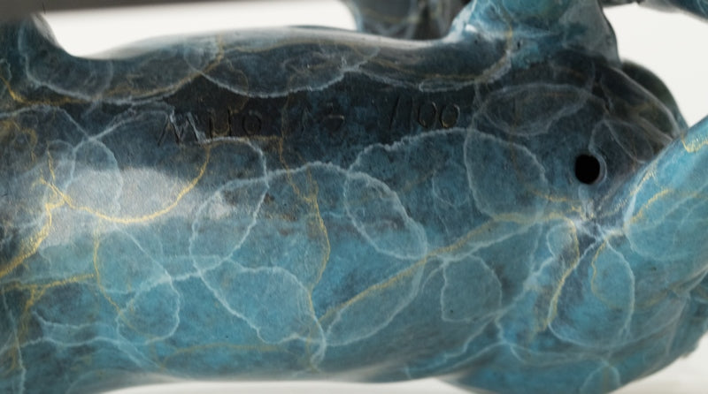 The artists and craftsmen of the European Finery gallery are proud to present this beautiful Limited Edition piece of artwork signed and numbered by artist Milo. It is sculpted and cast in our own foundries in Europe, each piece is meticulously hand finished by our own patina artists. Using the hot patina technique, the same method used in works found in the finest art museums, our patina artists first apply a cold chemical patina to the lost wax cast sculpture. Artists then use blow torches to heat the solid bronze sculpture upwards of 250 degrees. While the metal is hot, proprietary formulations of chemicals are applied using various techniques section by section, one layer at a time. Many layers and several hours later, the piece is allowed to cool, and several layers of special wax are applied. The result is a spectacular, deep and transparent finish with complex subtleties that no other finishing method can achieve. Because every piece is finished individually by hand, no two pieces are ever exactly alike. Each unique piece of art is signed, hallmarked and mounted on a marble base. The finished signed and numbered sculptures are truly a handmade heirloom to be cherished for generations and admired by all.Bronze Dimensions with Marble Base:Height 9.5" x Width 13"