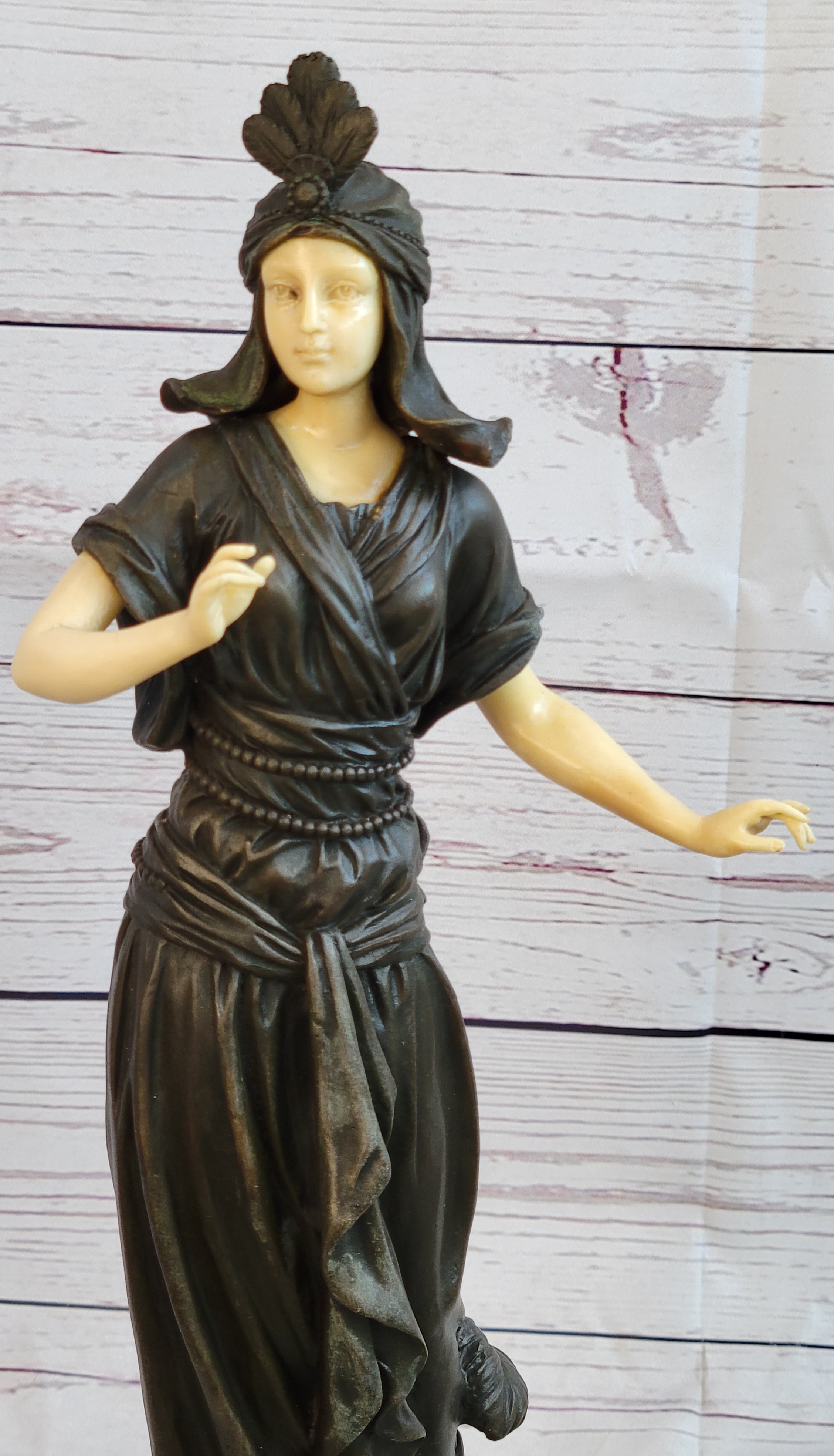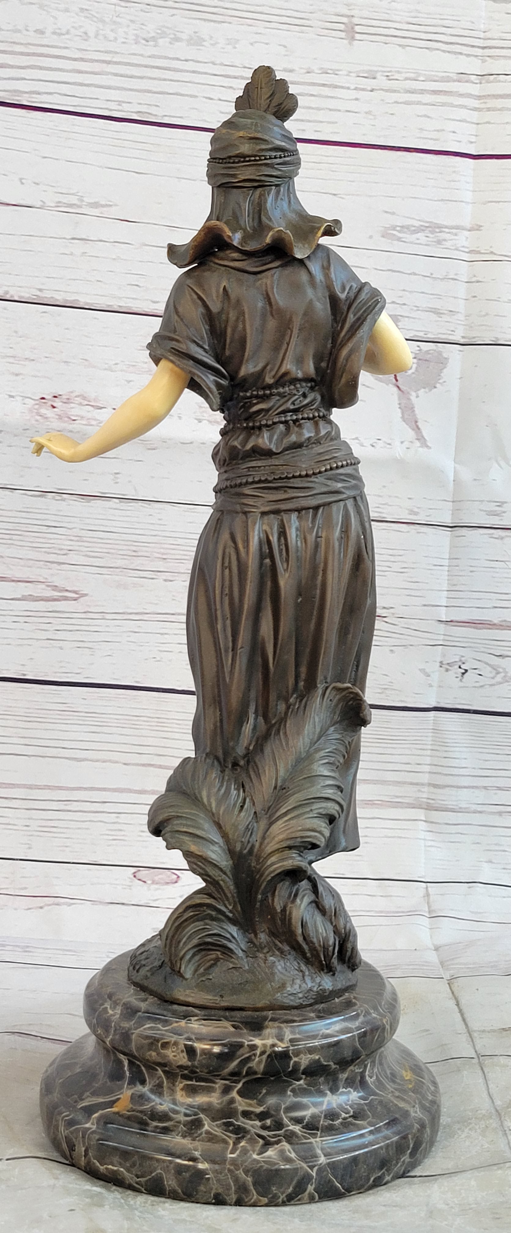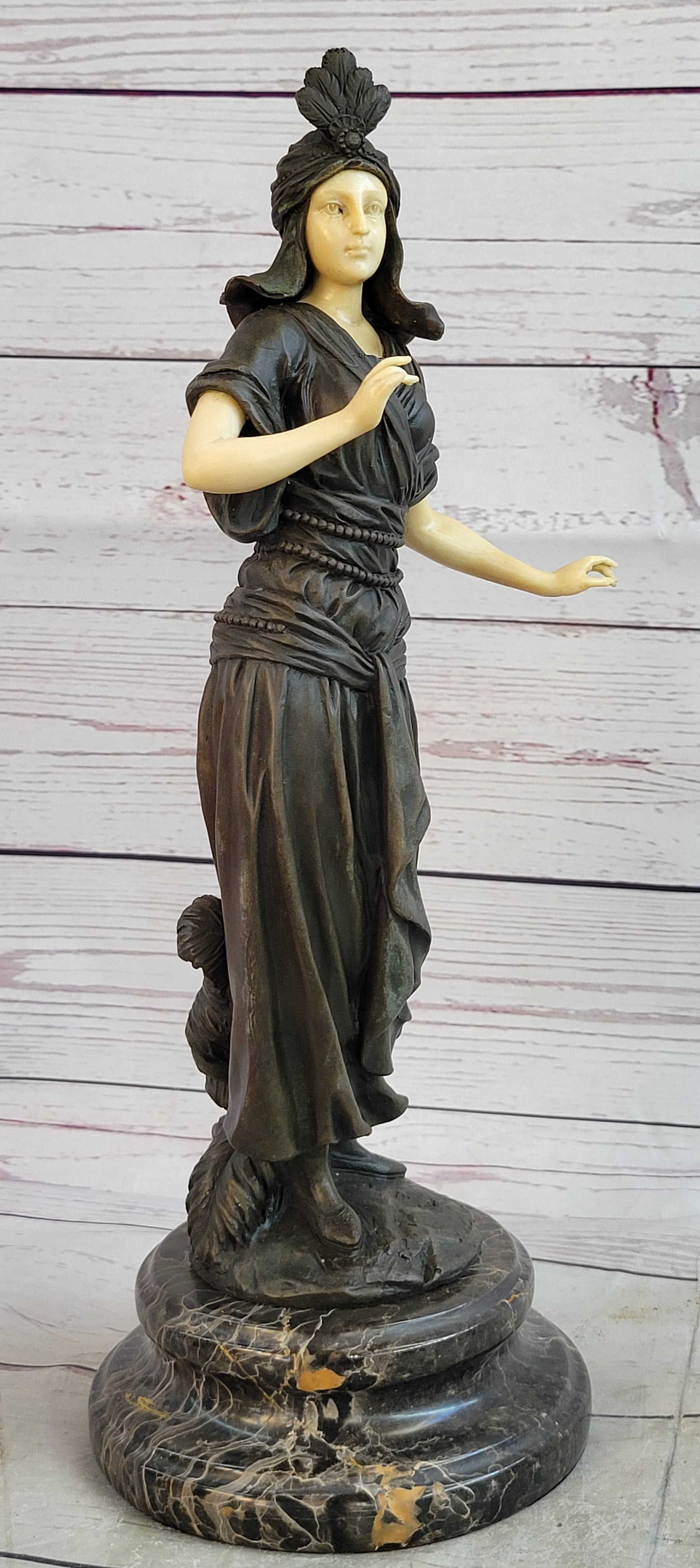 Art Deco Bronze and Faux Bone Turkish Princess Sculpture Brown Marble Base Decor