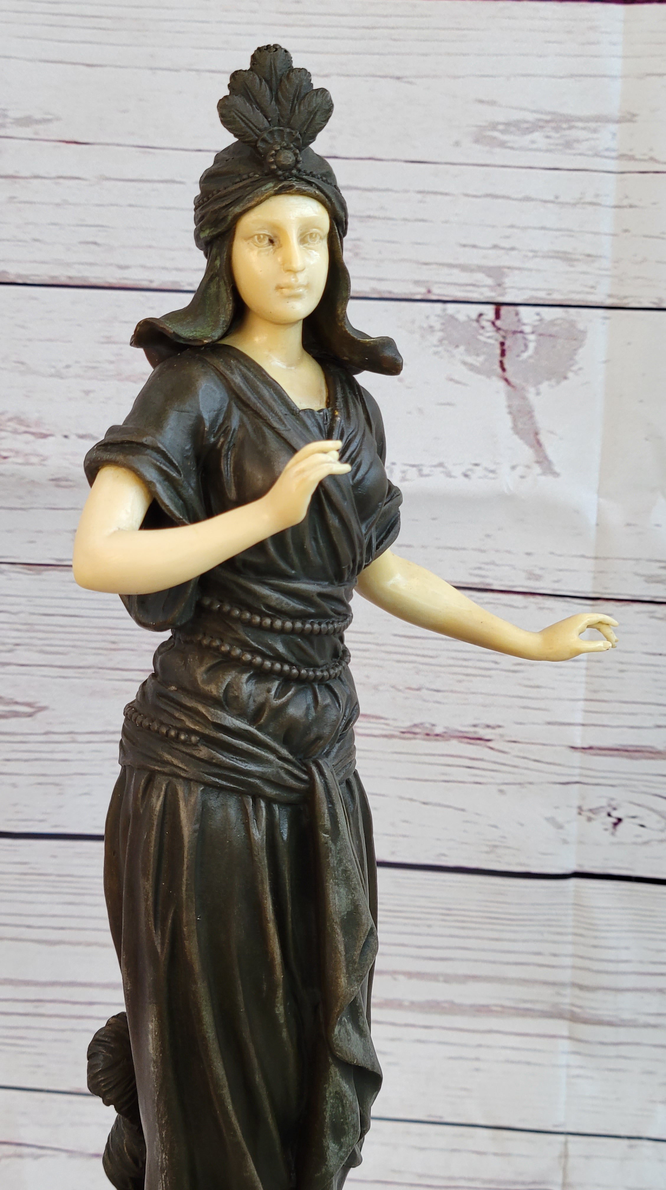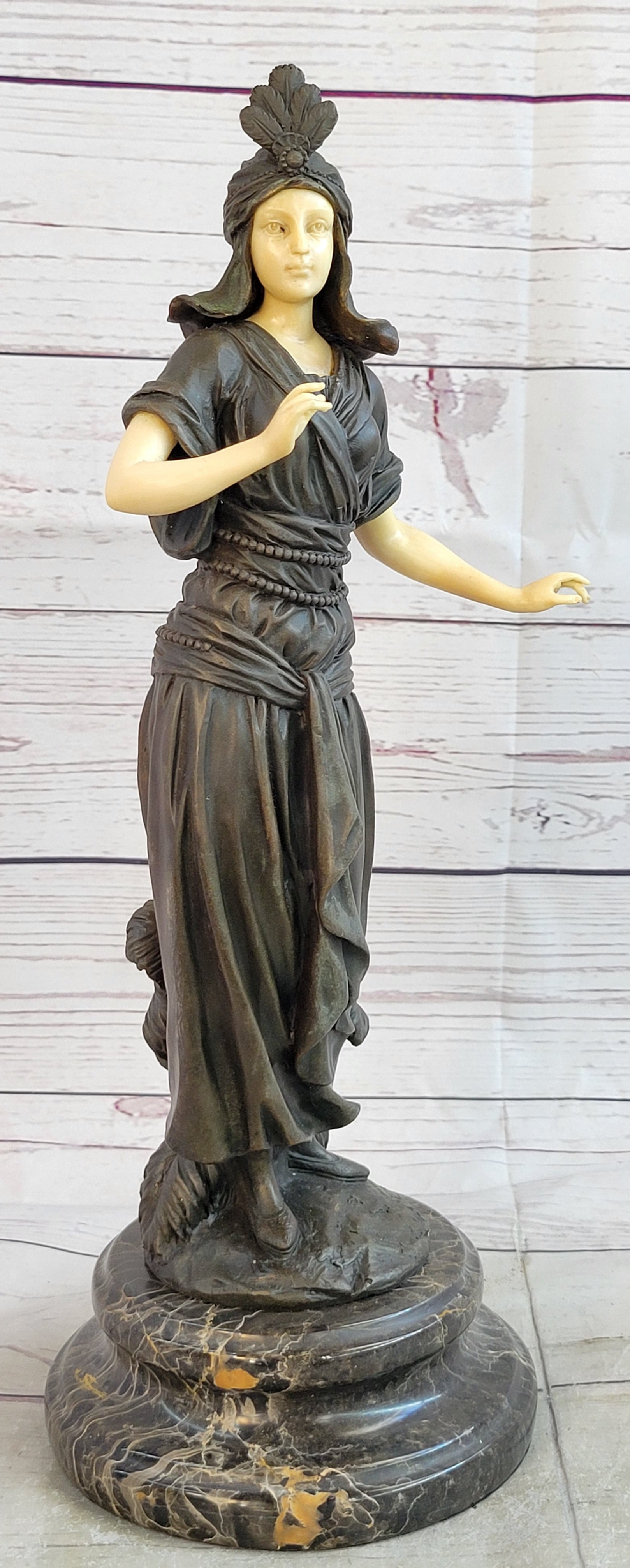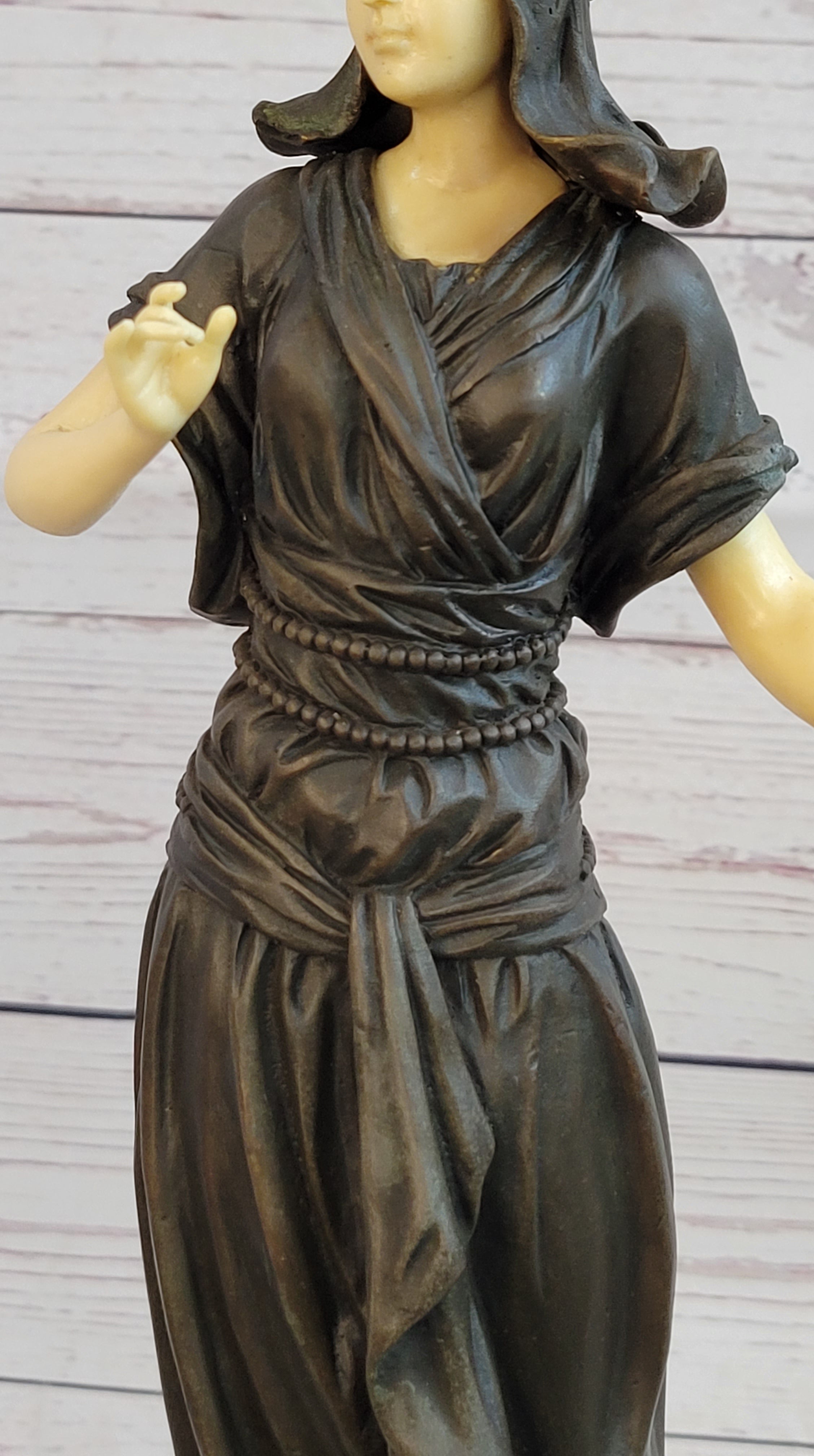 Art Deco Bronze and Faux Bone Turkish Princess Sculpture Brown Marble Base Decor