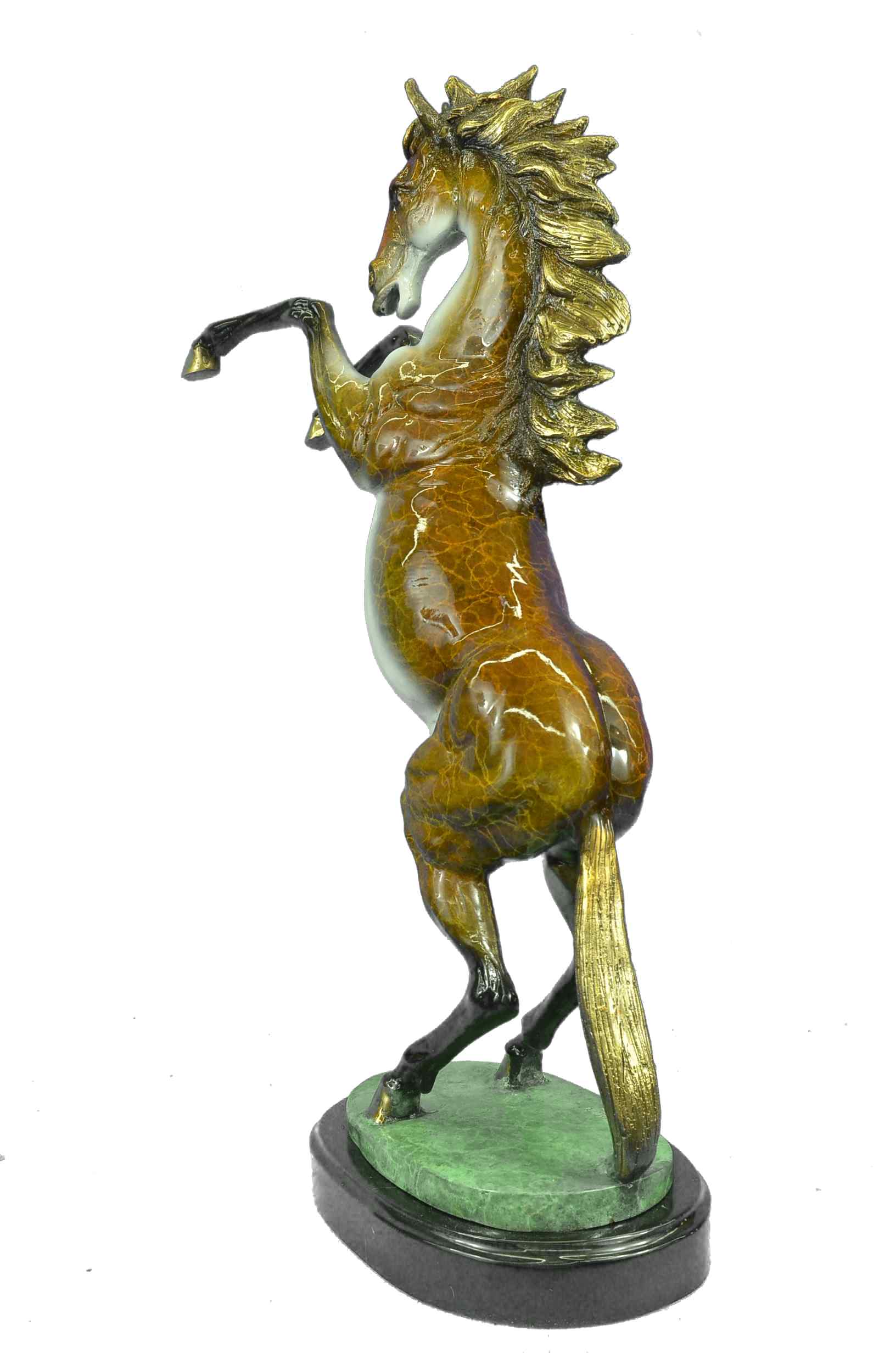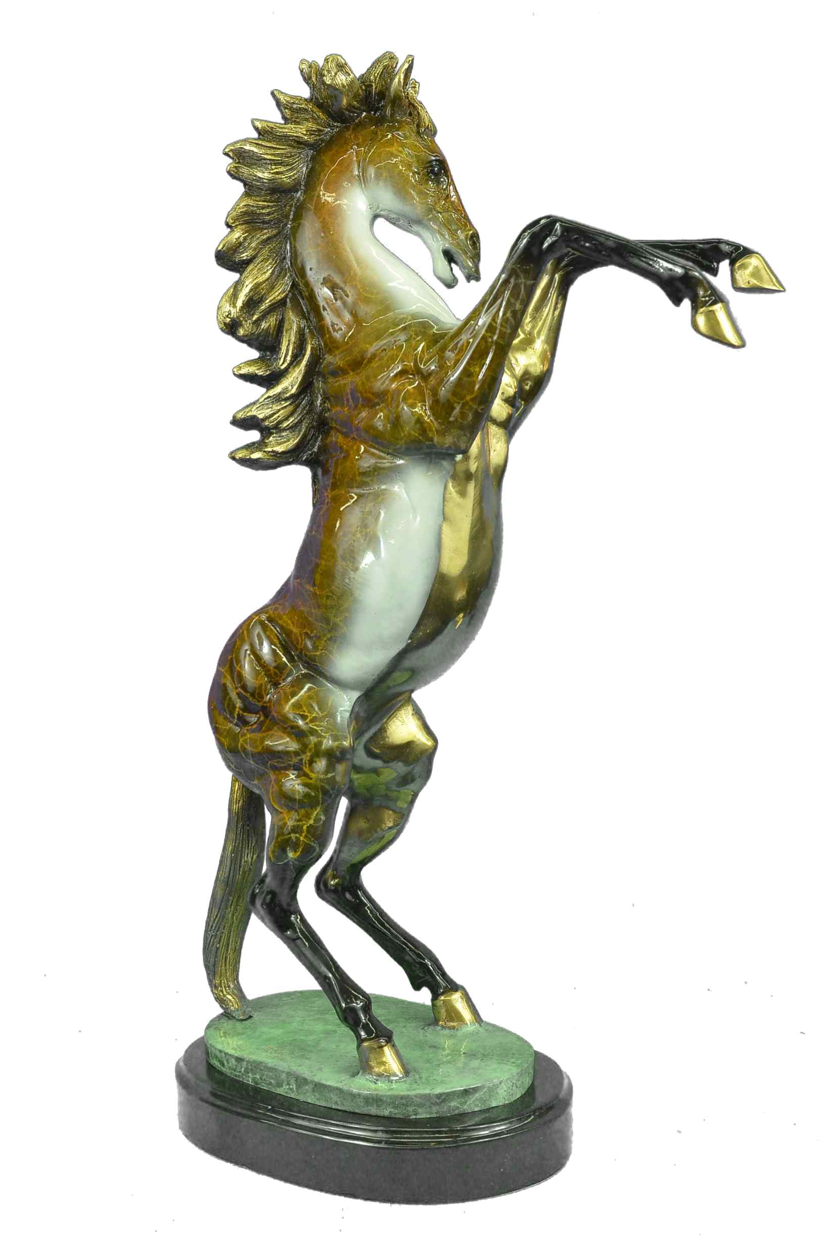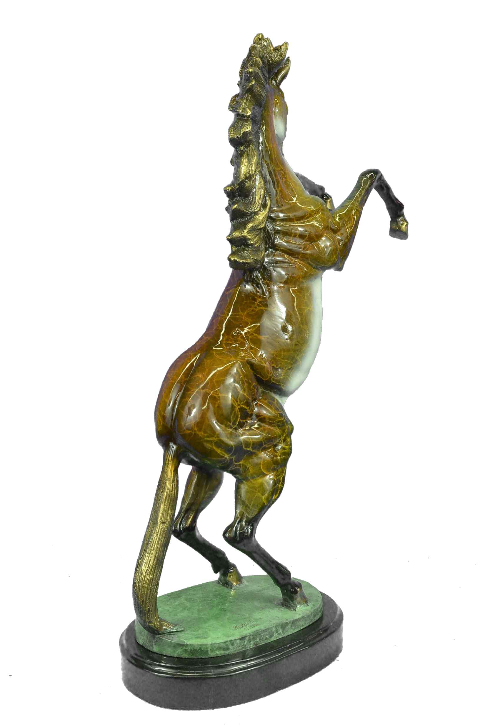 This Piece, Which Has Been Crafted With Exquisite Detail, Features A Rambunctious Horse In A Standing Pose. Due To Its Natural Companionship With Man In Both Work And Art, The Horse Has Always Held A Special Places In History, Ranking High Marks Of Honor, Reverence And Symbolism. Serving Man In War, Mobility, Productivity, Agriculture, Development Of All Kinds, The Horse Is By Far One Of The Largest Contributors To The Enhancement Of Civilization. With Such Recognition And Accomplishments, A Vast And Diverse Trail Of Symbolic Meanings Follows The Horse’S Rich History With Humankind. This Is An Excellent Piece Featuring The Lost Wax Method Of Casting And Is Signed By Artist Marius Founded Thousands Of Years Ago Ensuring An Exquisitely Detailed Sculpture That Will Add Grace And Beauty To Your Business Or . Get One For The Animal Loverin Your Life. This Bronze Sculpture Was Cast Using The “Lost Wax Method” And Has A Multi Color Patina. It Is Mounted On A Marble Base And Is Handmade. This Limited Edition Sculpture Is Signed And Numbered By Artist Marius.Original or Reproduction: Original