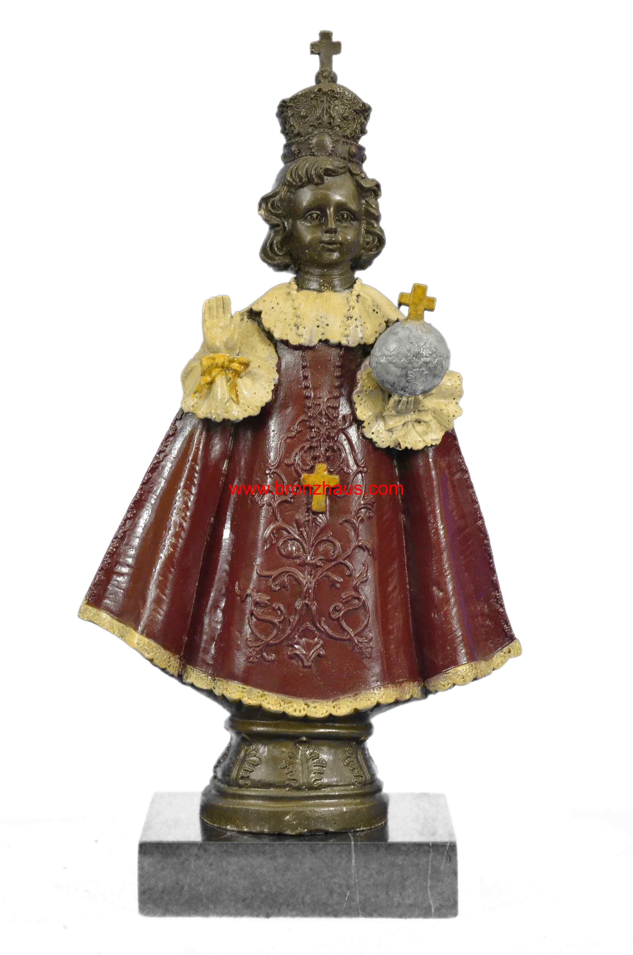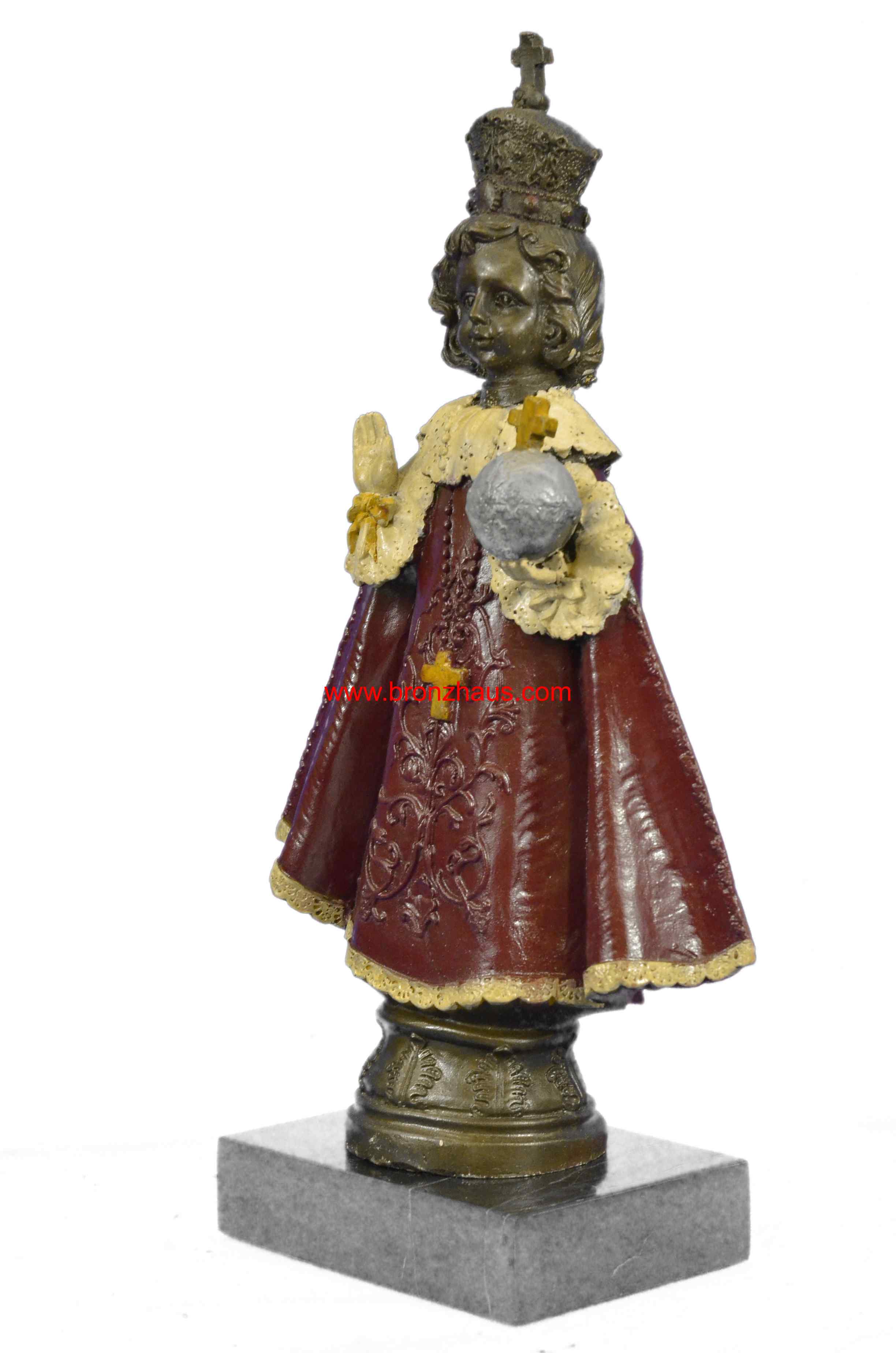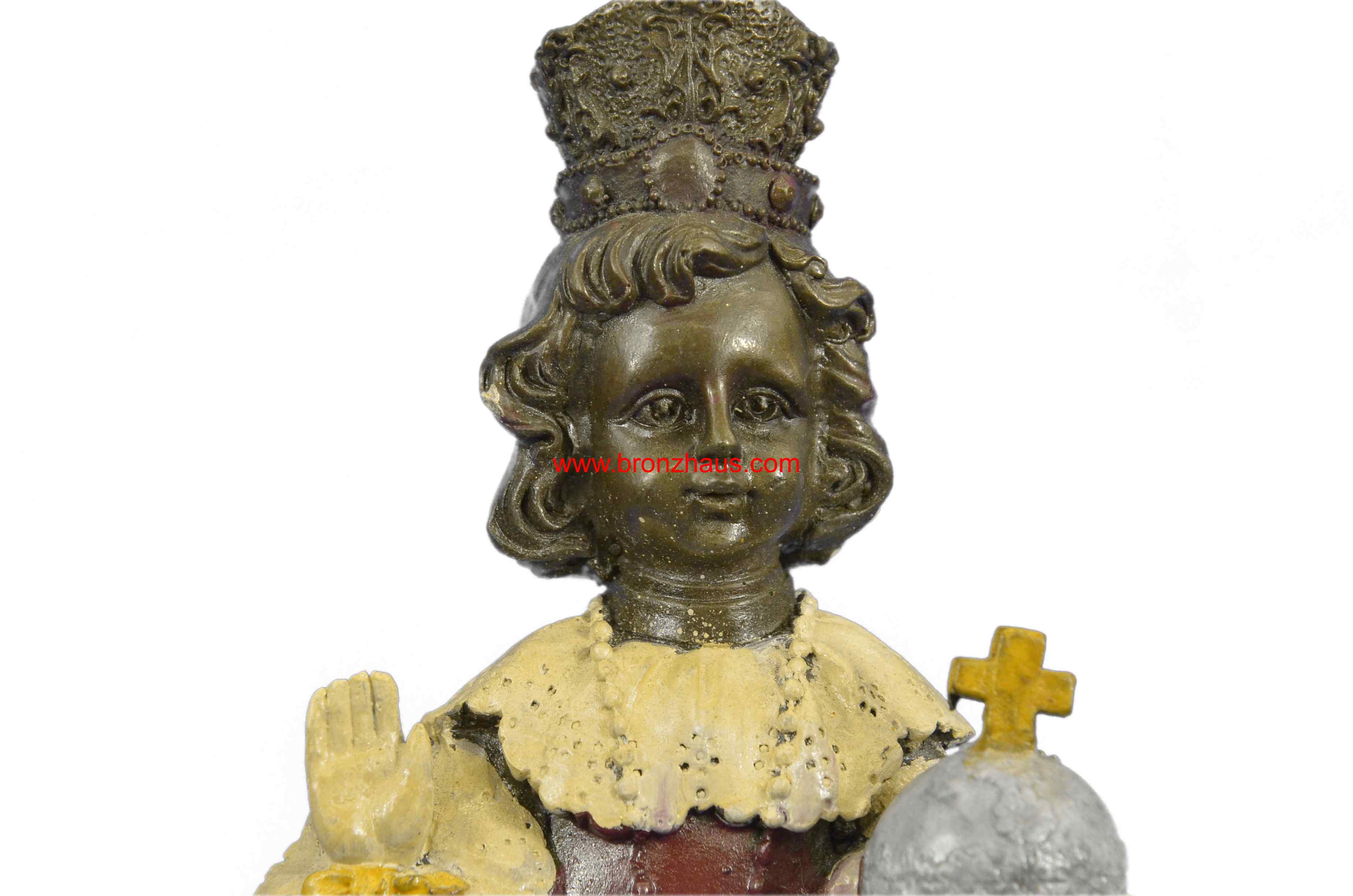 Art Deco Infant Jesus of Prague Bronze Sculpture Figure Lost Wax Method Figurine