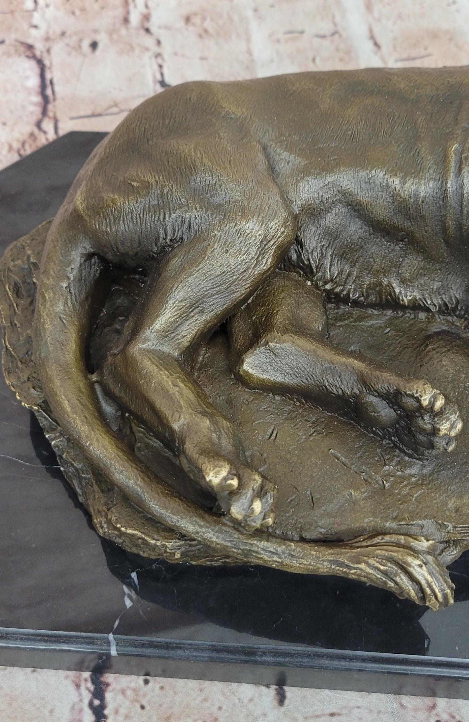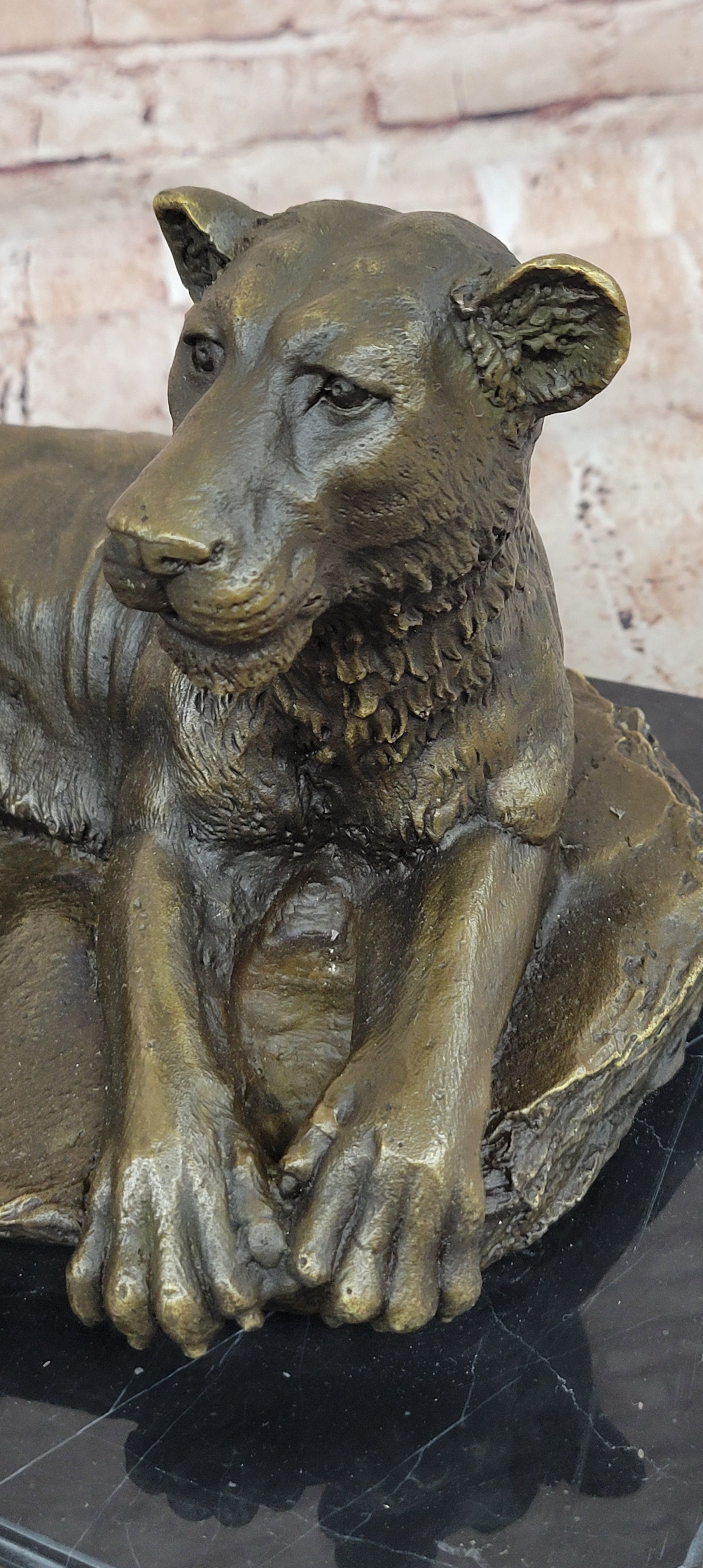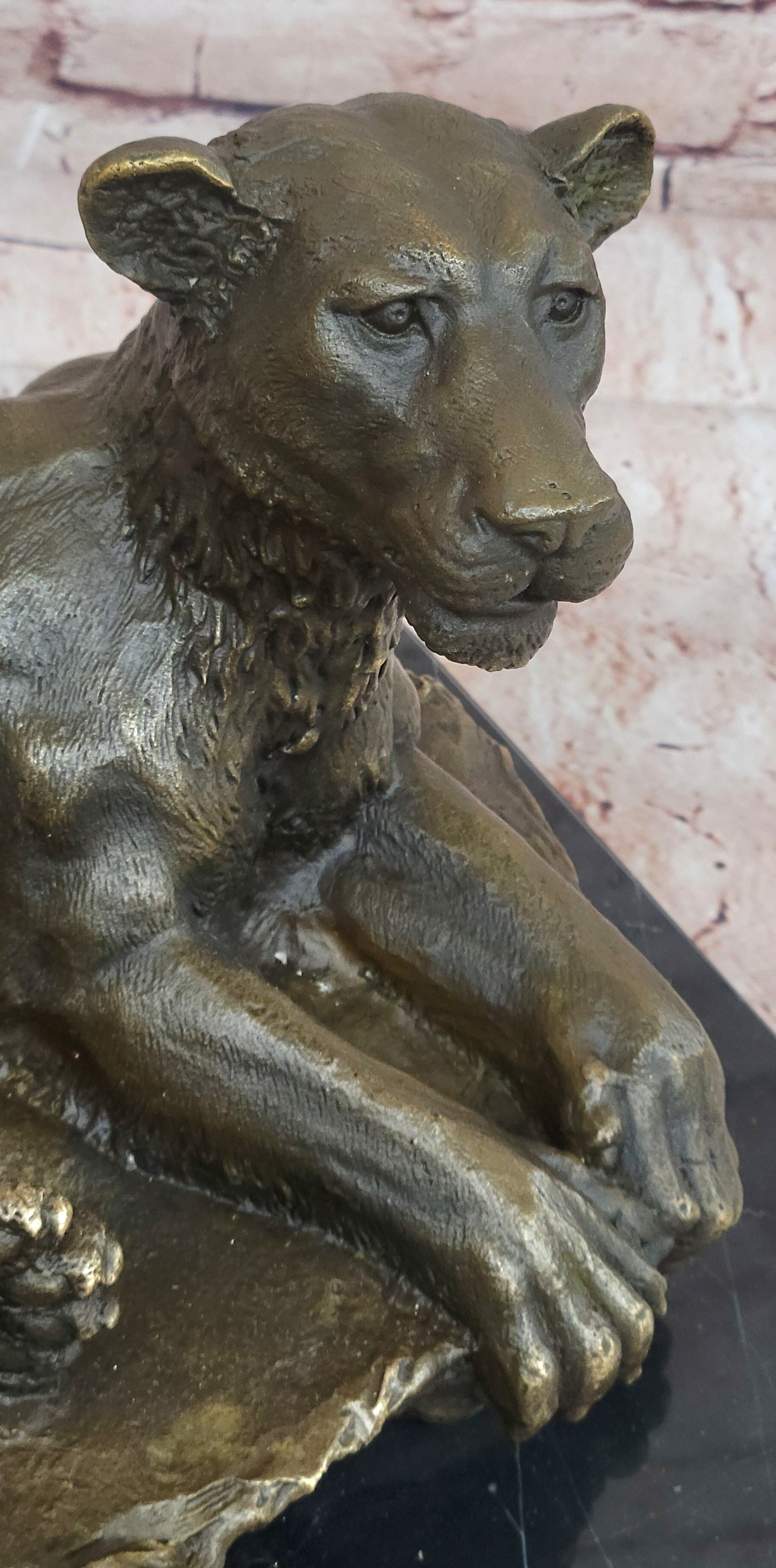 Art Deco Large Female African Wildlife Lion Bronze Sculpture Marble Statue Decor