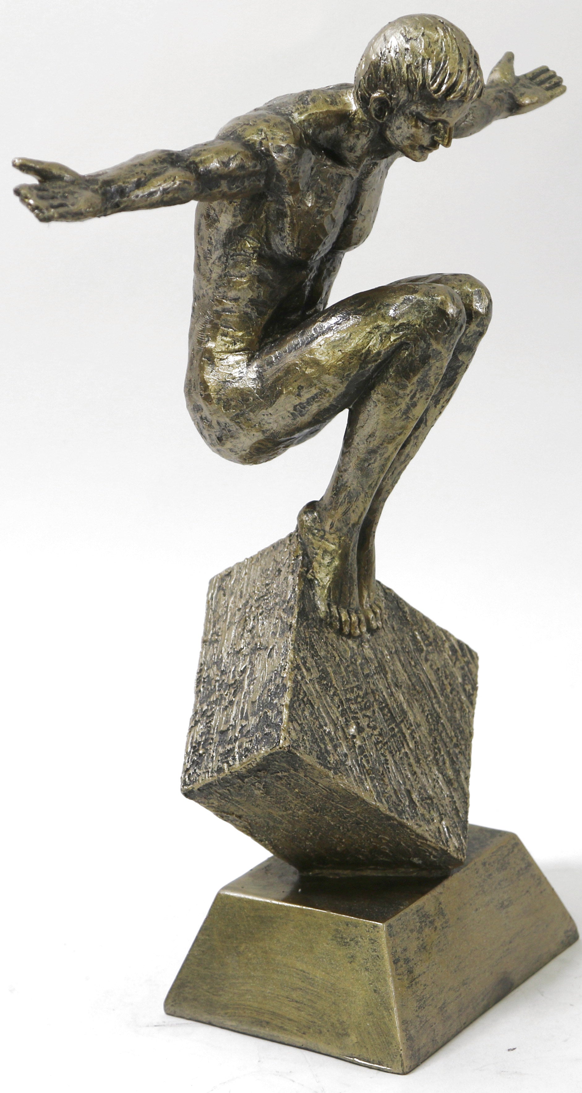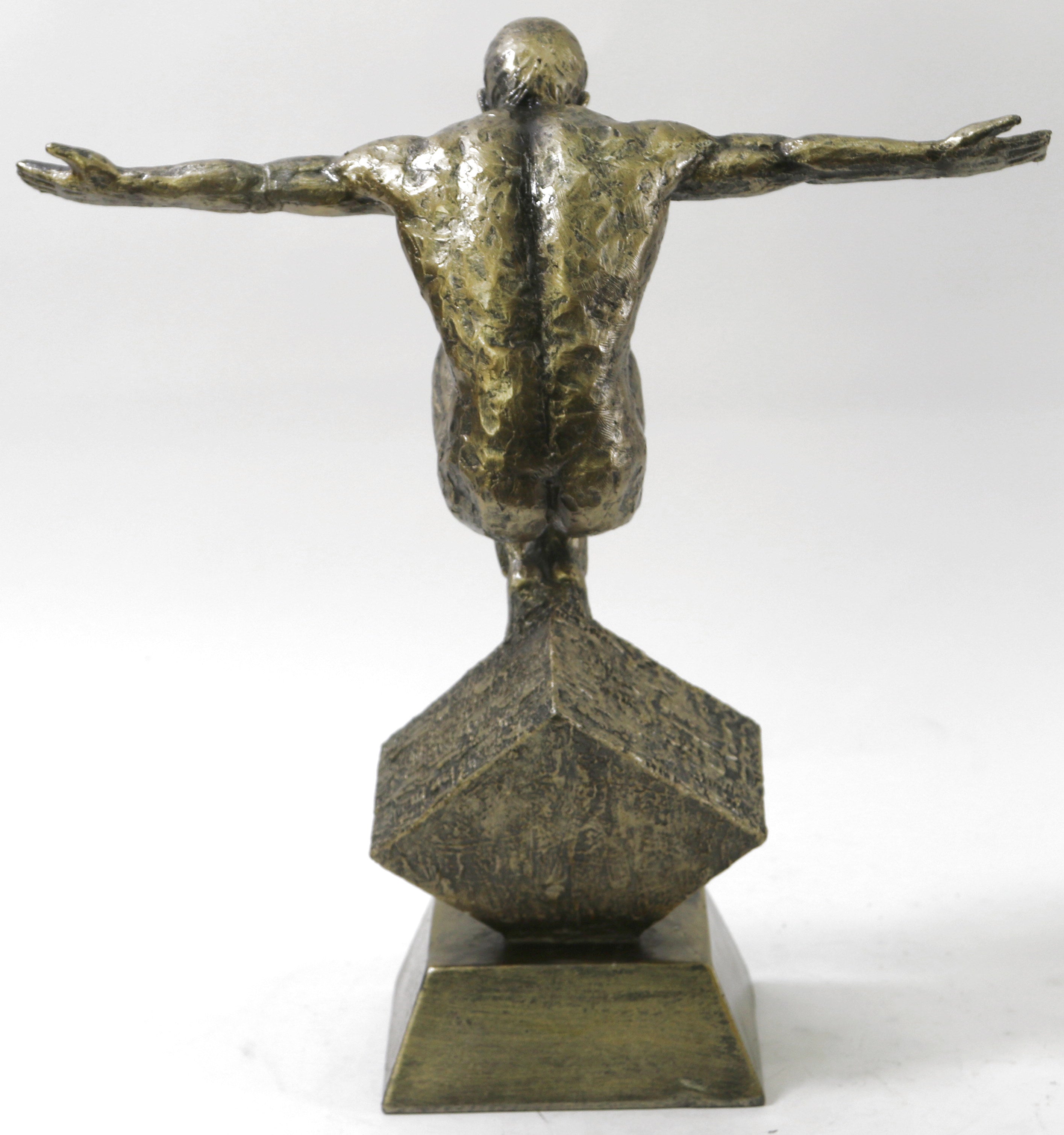 Art Deco Large Nude Male Diver Sitting on A Block Sculpture Figurine Statue DEAL