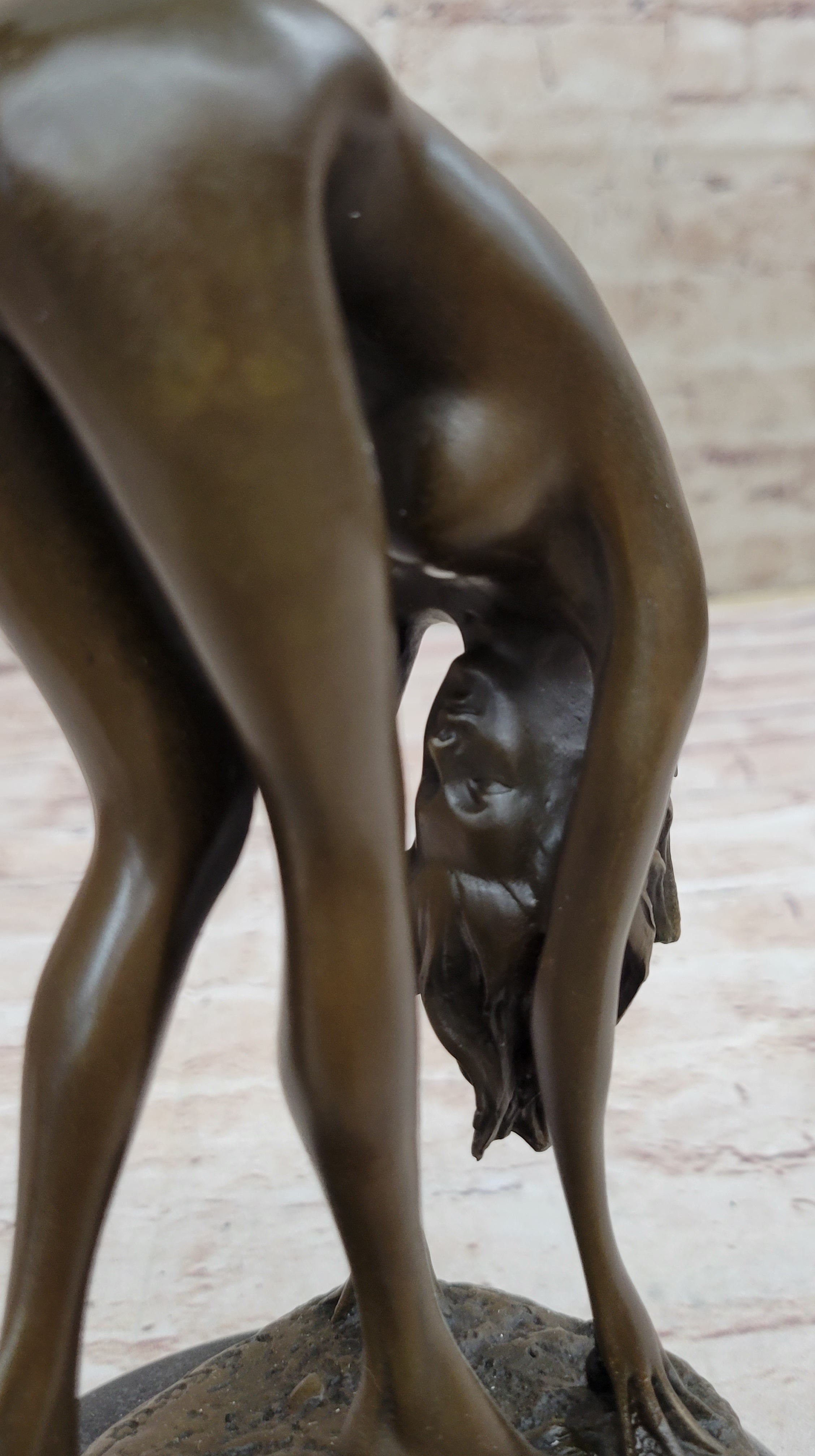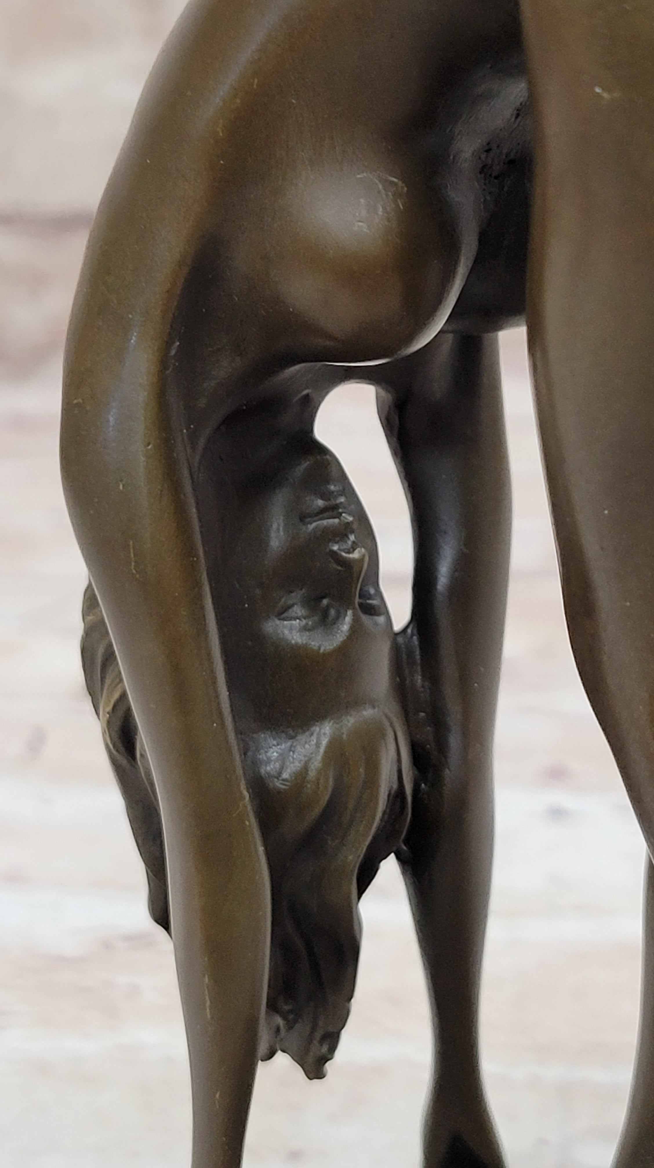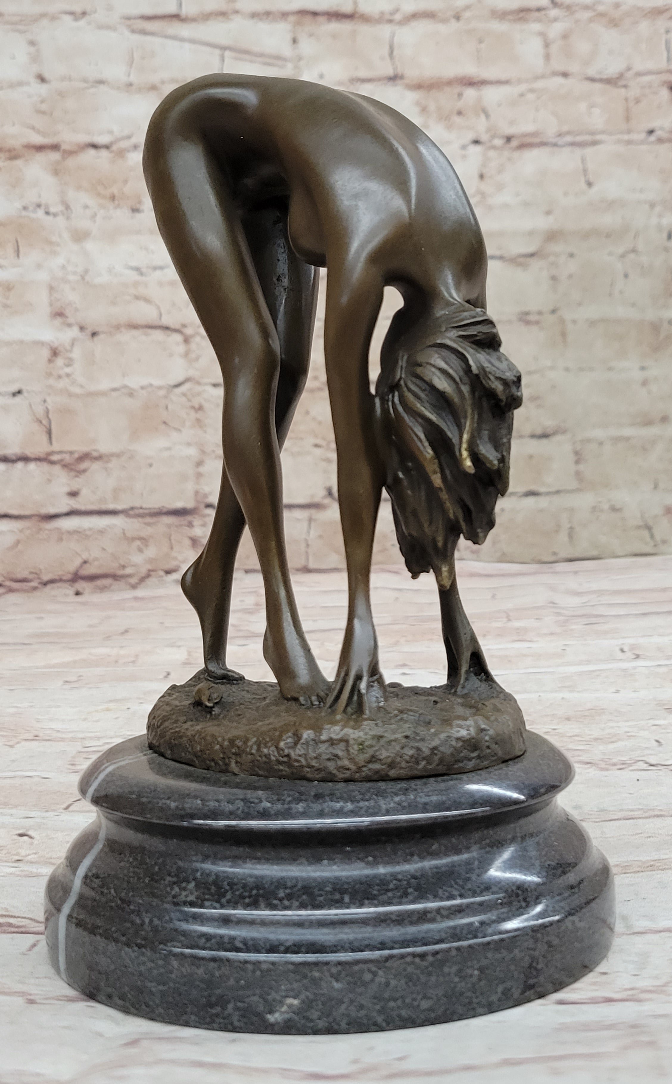 Whether displayed in a private collection or as a statement piece in a public space, this bronze sculpture invites viewers to explore the captivating realm of sensuality and desire. It is a testament to the enduring appeal of the female form and the artist's ability to convey complex emotions through the medium of bronze sculpture.Bronze Dimensions with Marble Base: Height 8" X Width 5"