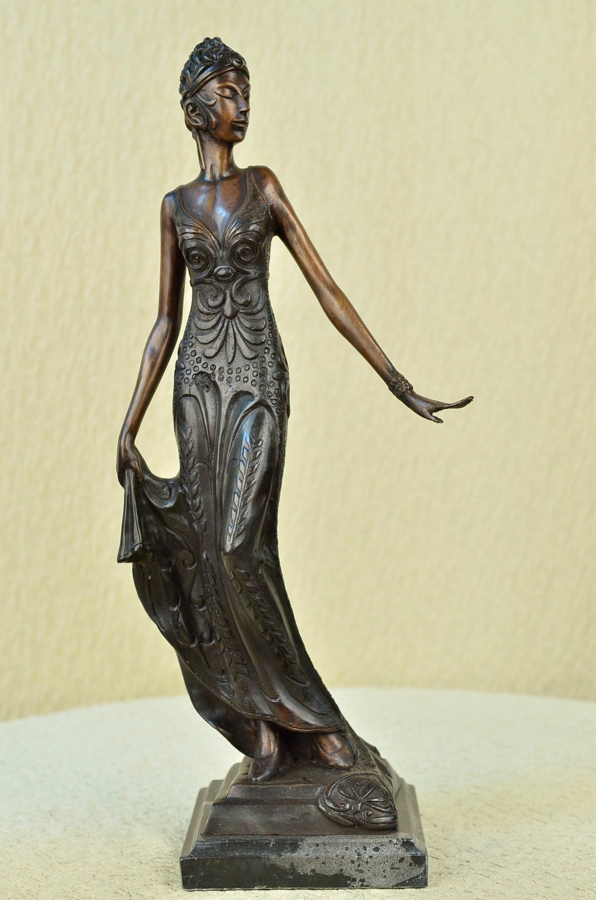 Art Deco/Nouveau Sexy Model Actress Genuine Bronze Sculpture Lost Wax Method