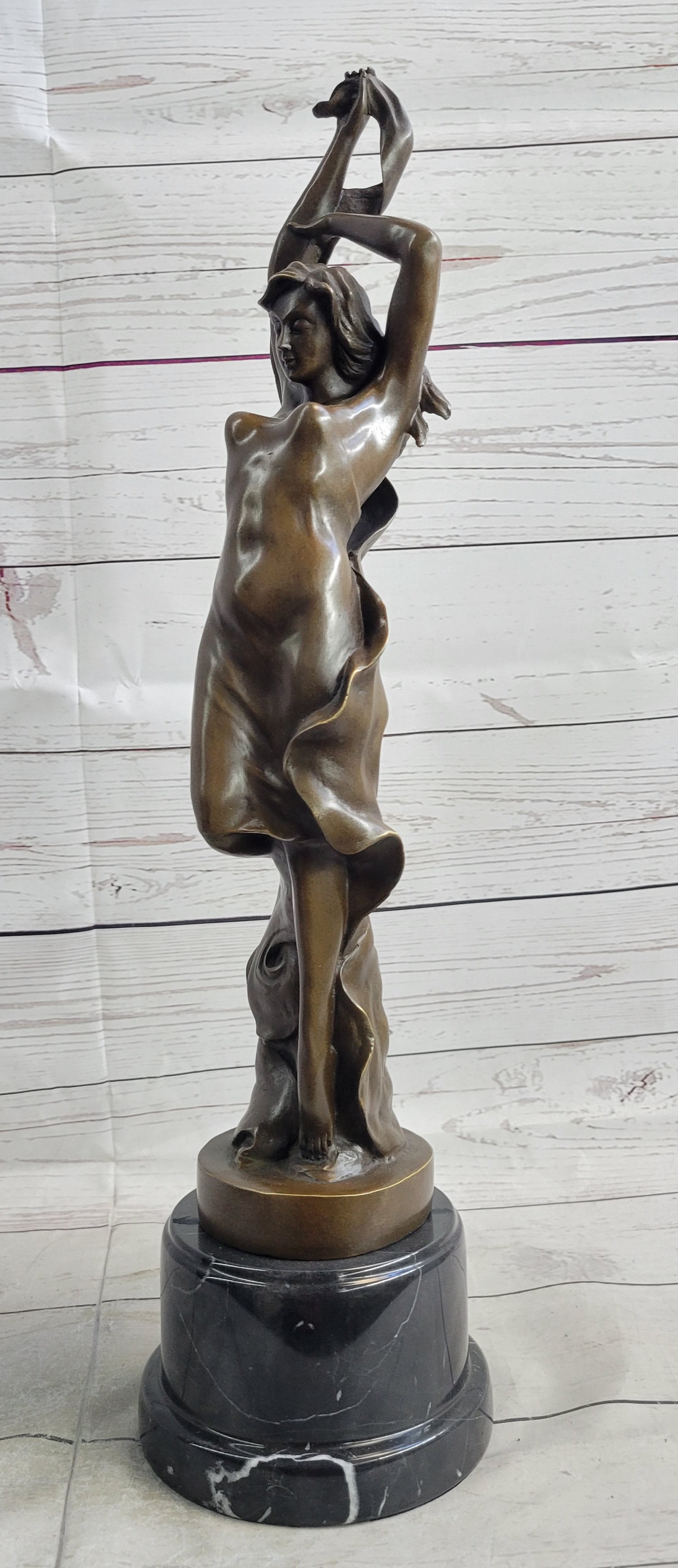 Art Nouveau Bronze Female Figure Reaching Upwards Sculpture Statue on Marble Base