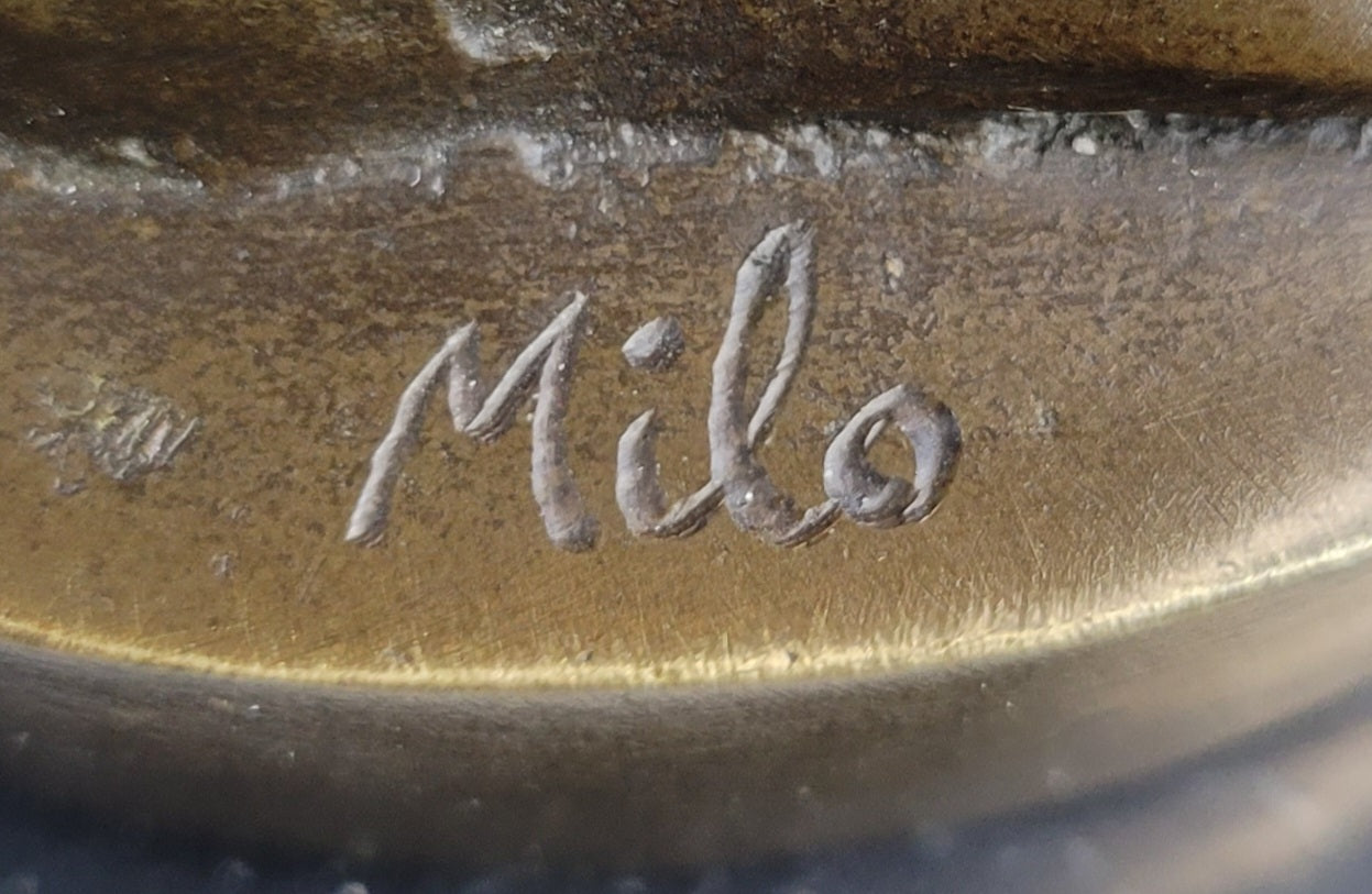 Each handmade bronze sculpture in our collection is created using the ancient lost-wax casting method, a technique that ensures the longevity and preservation of these stunning pieces. The sculptures are stained with a brown patina finish, highlighting their intricate details and enhancing their durability. Mounted on a sleek black marble base and signed by the artist Milo, these artworks are designed to be cherished for generations.Bronze Dimensions with Marble Base: Height 21" X Width 5"