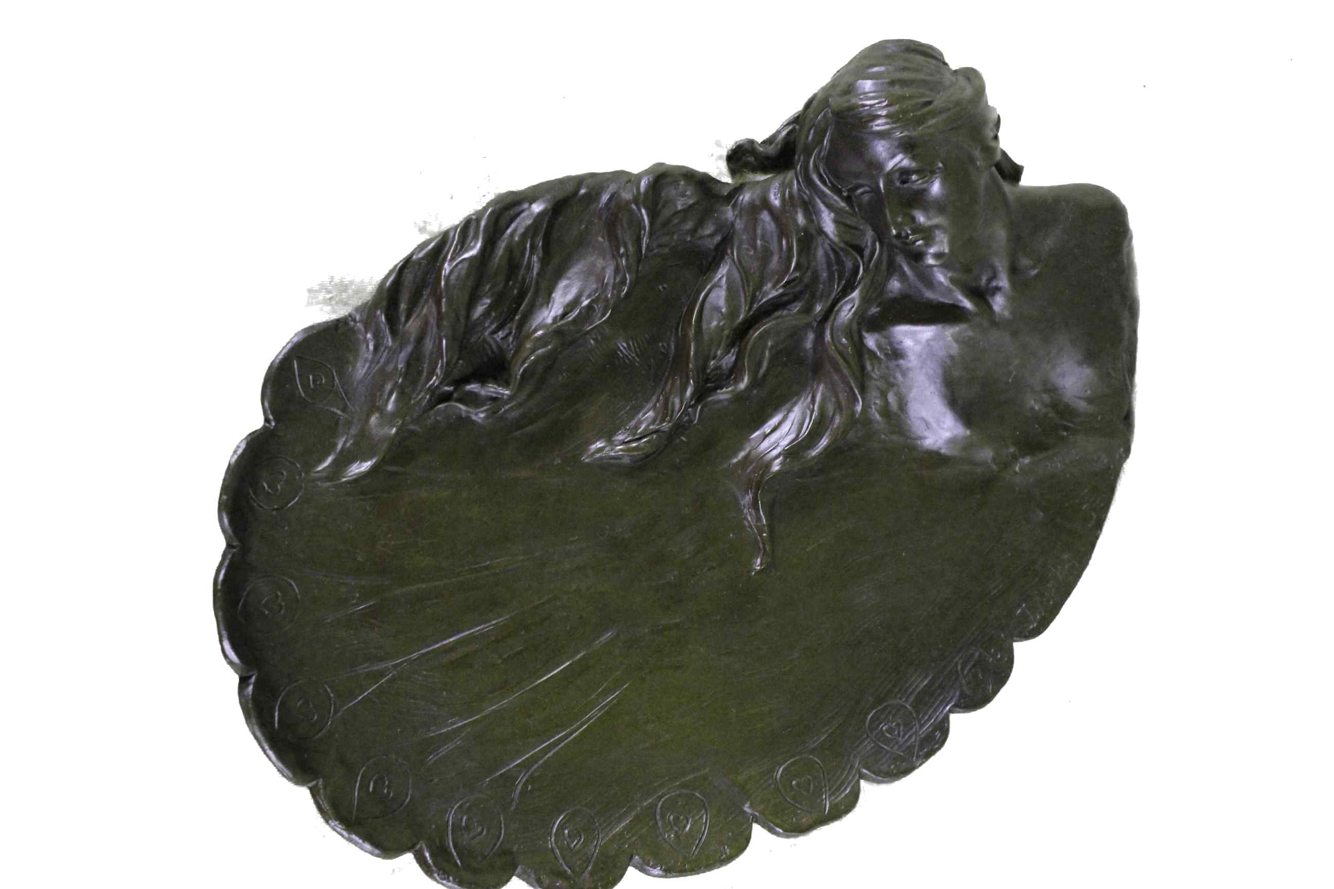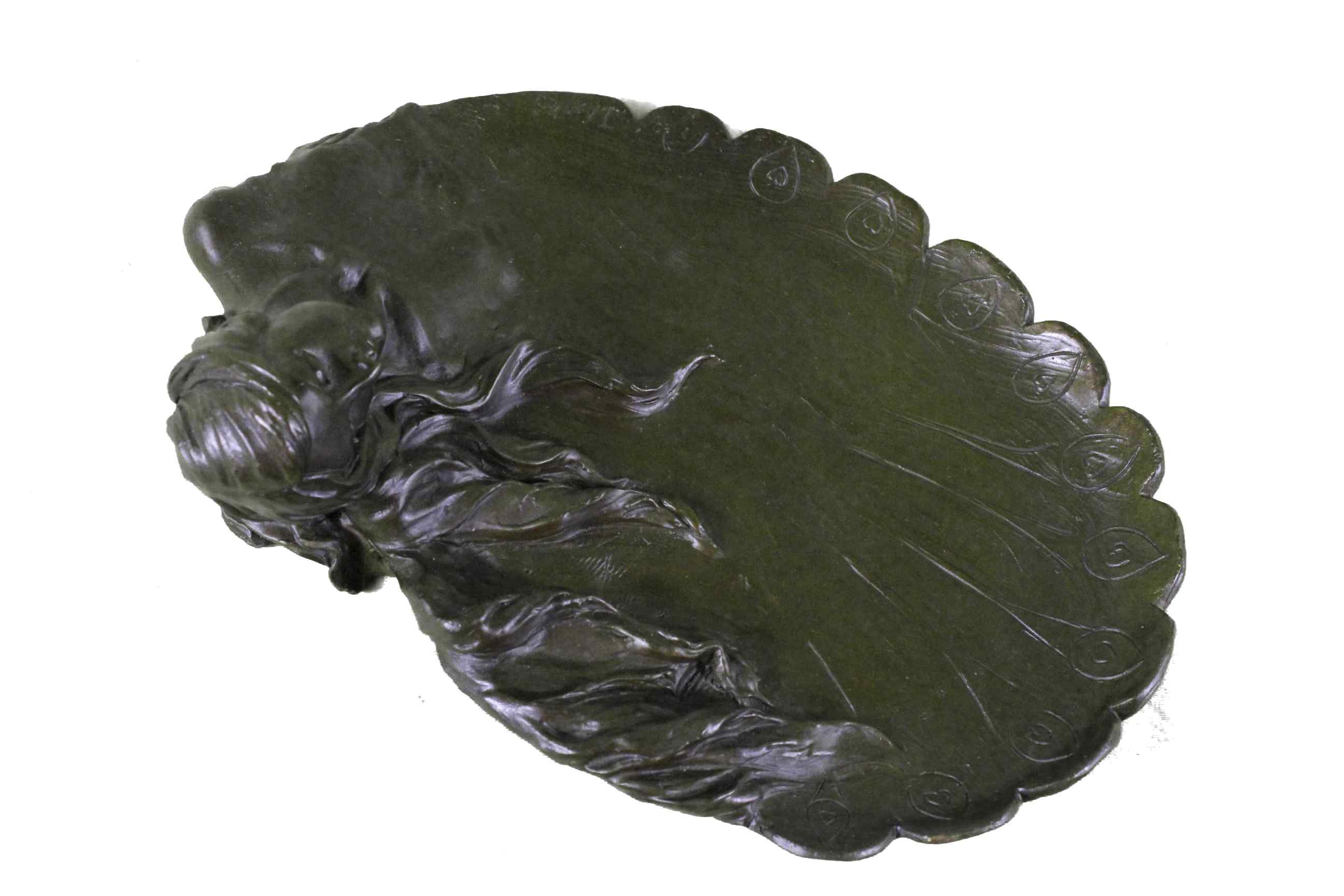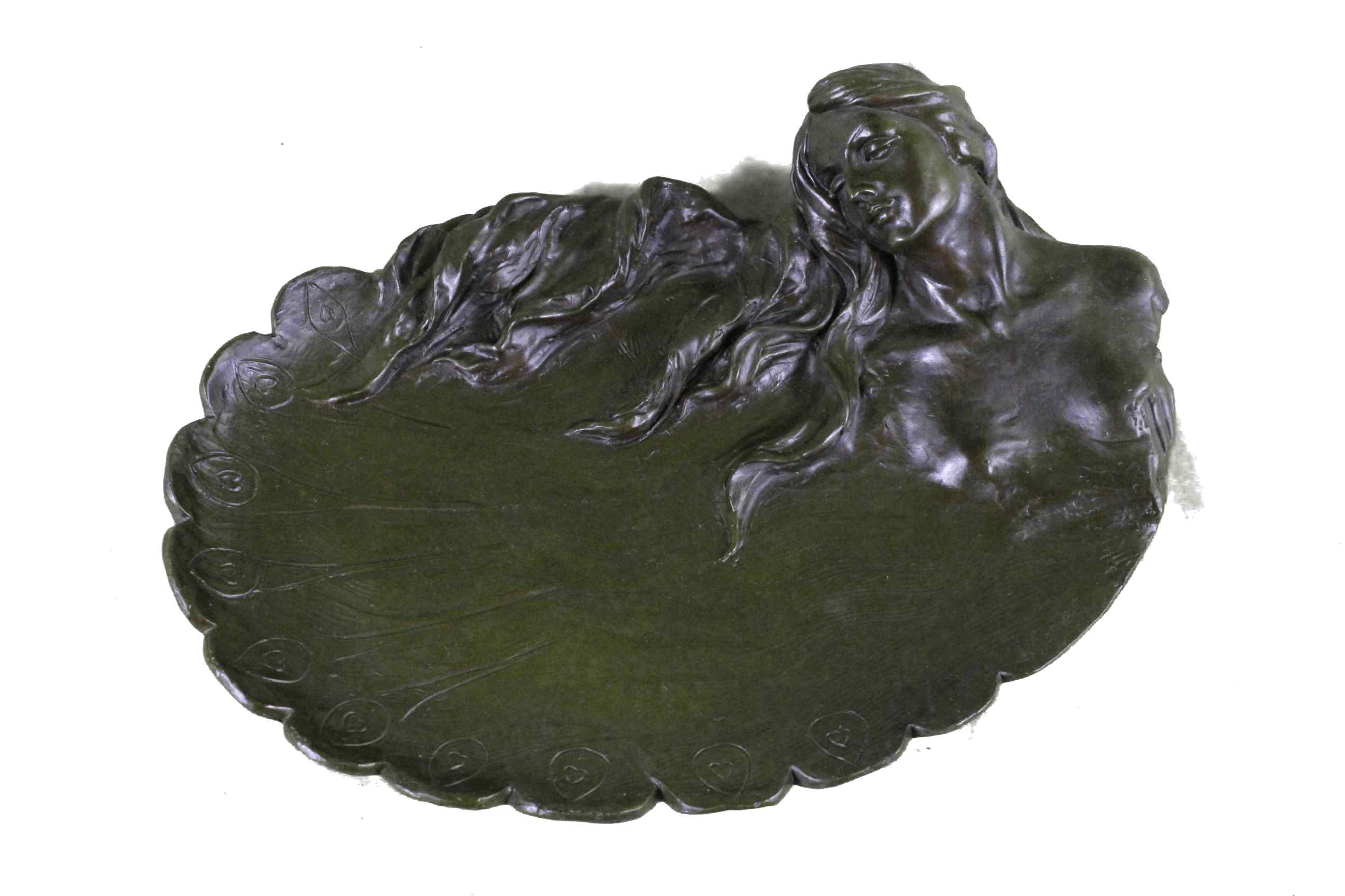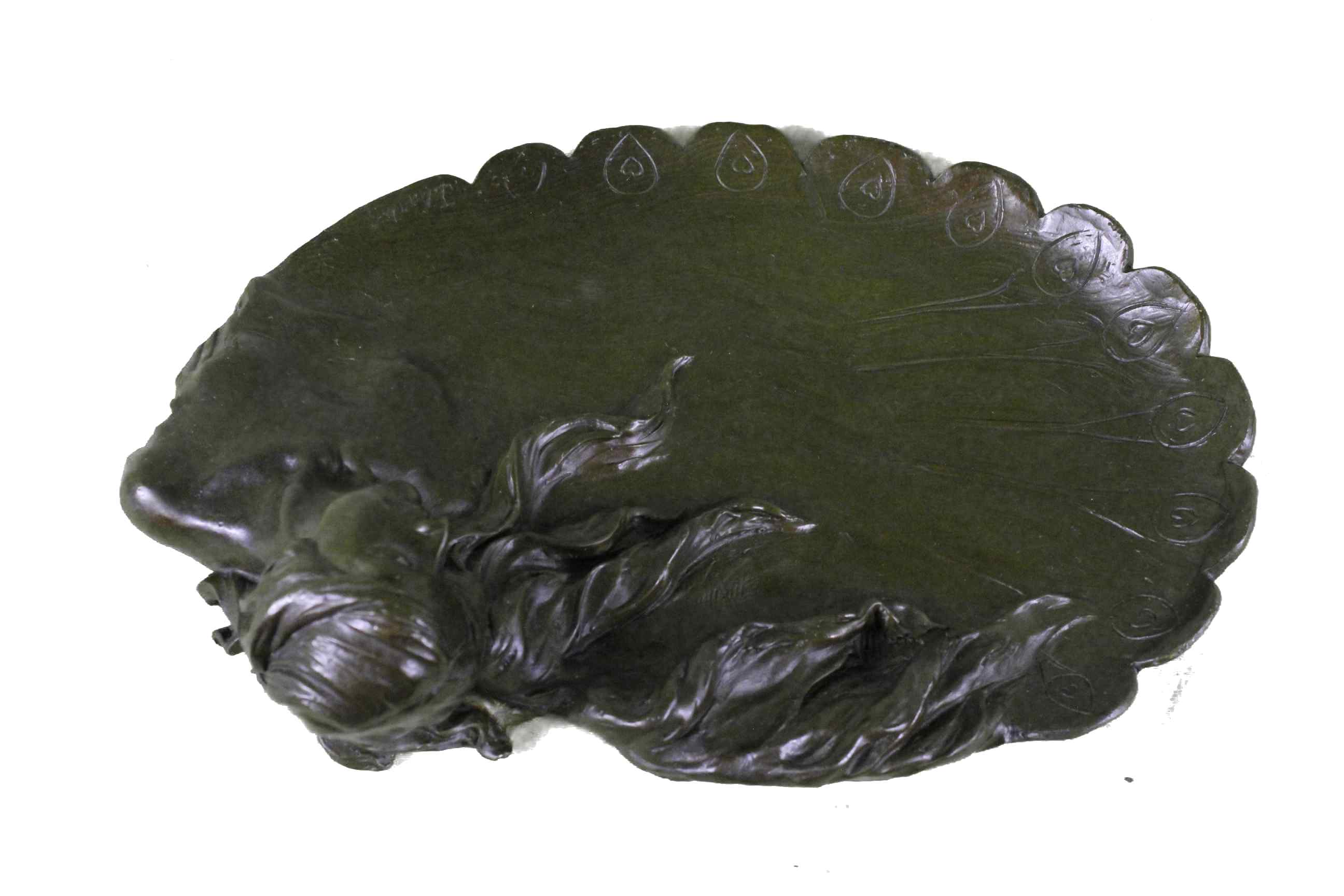 Art Nouveau Dish Metal by Angles Jewelry Tray Bronze Figurine Sculpture Figure