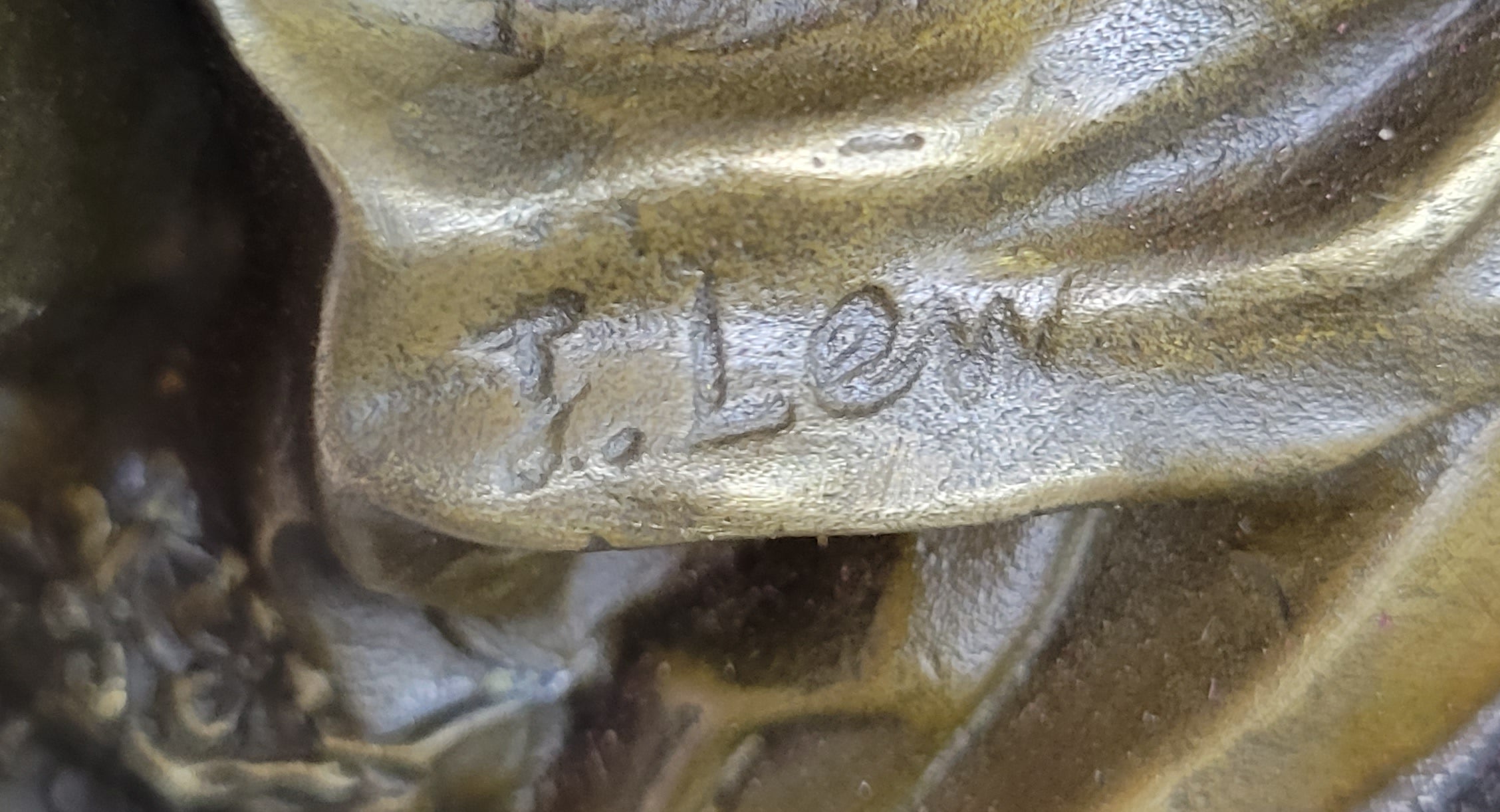 Mounted securely on a polished black marble plinth, the artwork bears the signature of the renowned artist J. Levy, reflecting the dedication and artistry invested in this stunning masterpiece. This statue stands as a testament to the artist's skill and passion, offering a poignant reminder of the beauty and grace that can be captured in bronze. The combination of classical elegance, detailed craftsmanship, and emotional depth makes this piece a captivating addition to any collection.Bronze Dimensions with Marble Base: Height 18" X Width 8"