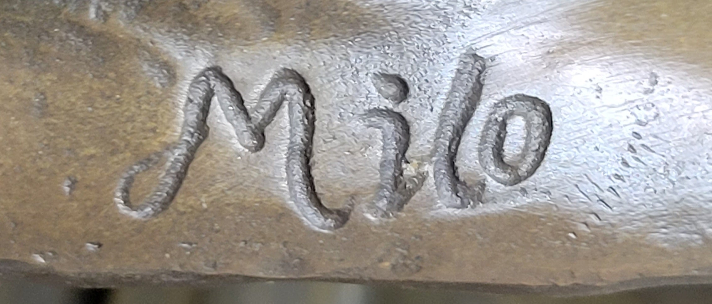 As a testament to its authenticity and craftsmanship, this exceptional bronze sculpture is signed by the renowned artist Milo. It is a true masterpiece that captures the essence of Beethoven's spirit and invites you to embark on a journey through the captivating world of classical music.Bronze Dimensions with Marble Base: Height 12" X Width 8"