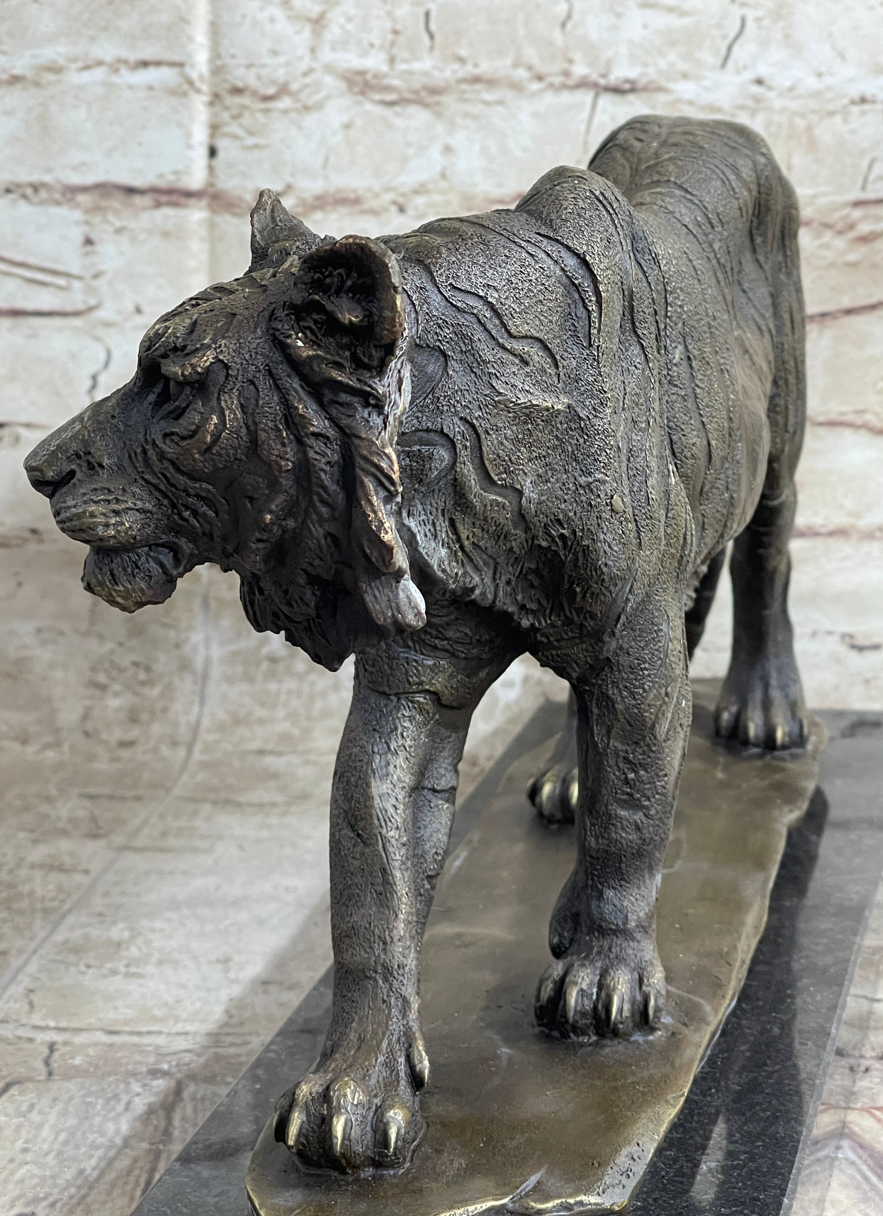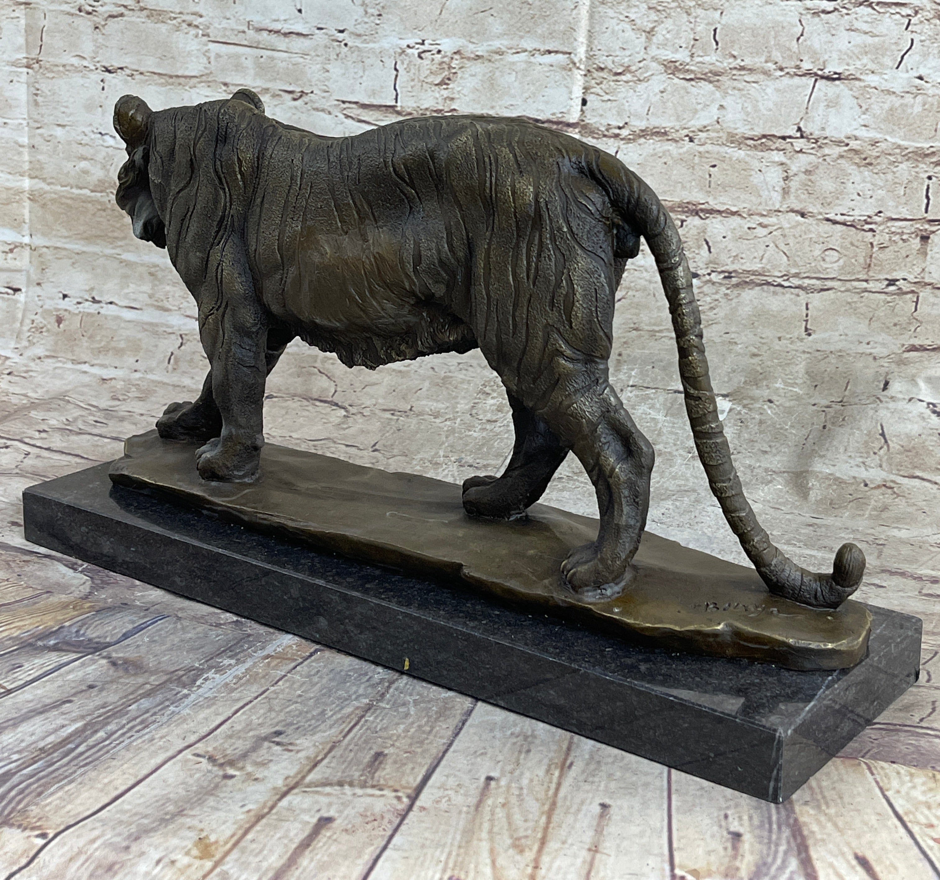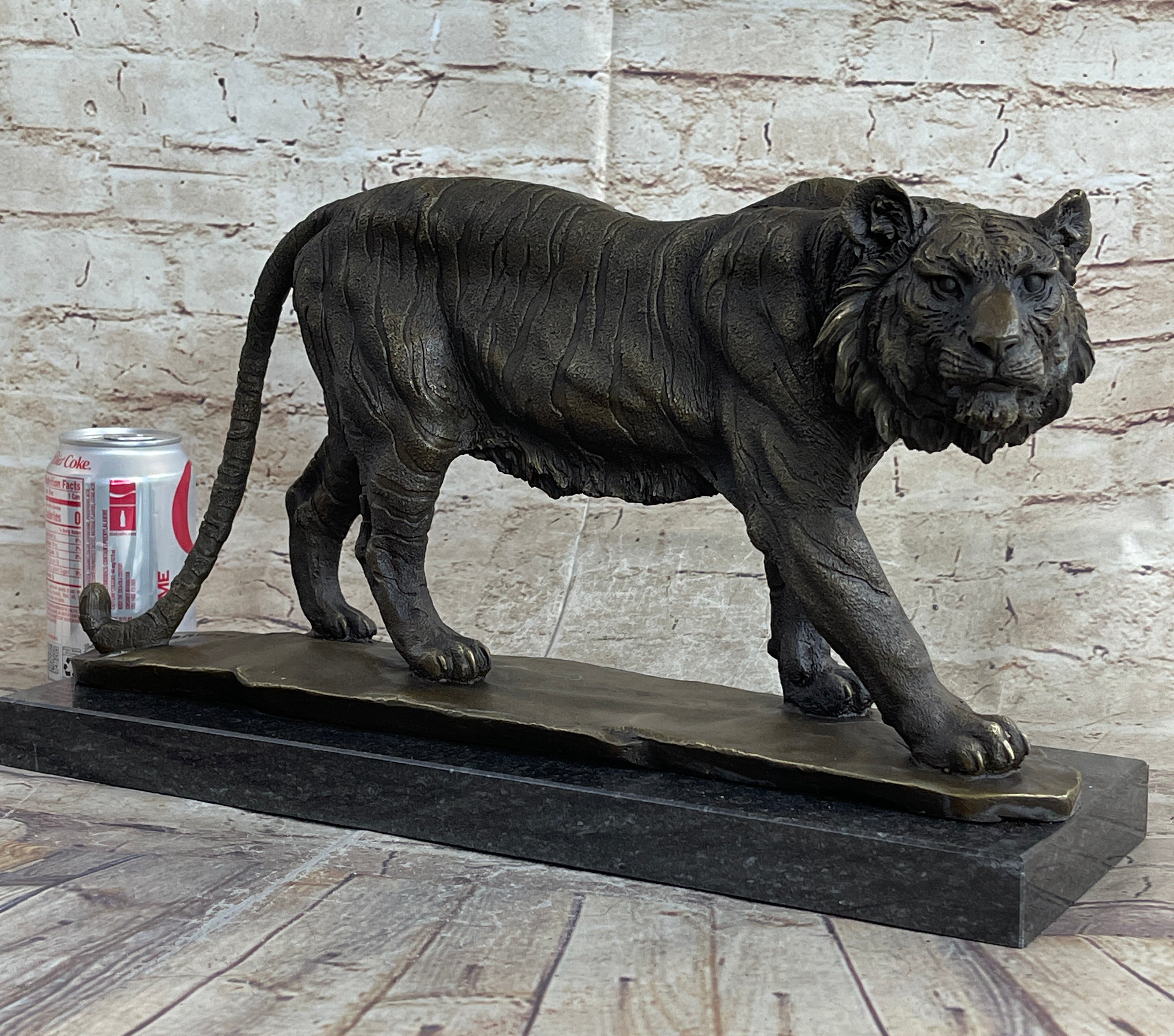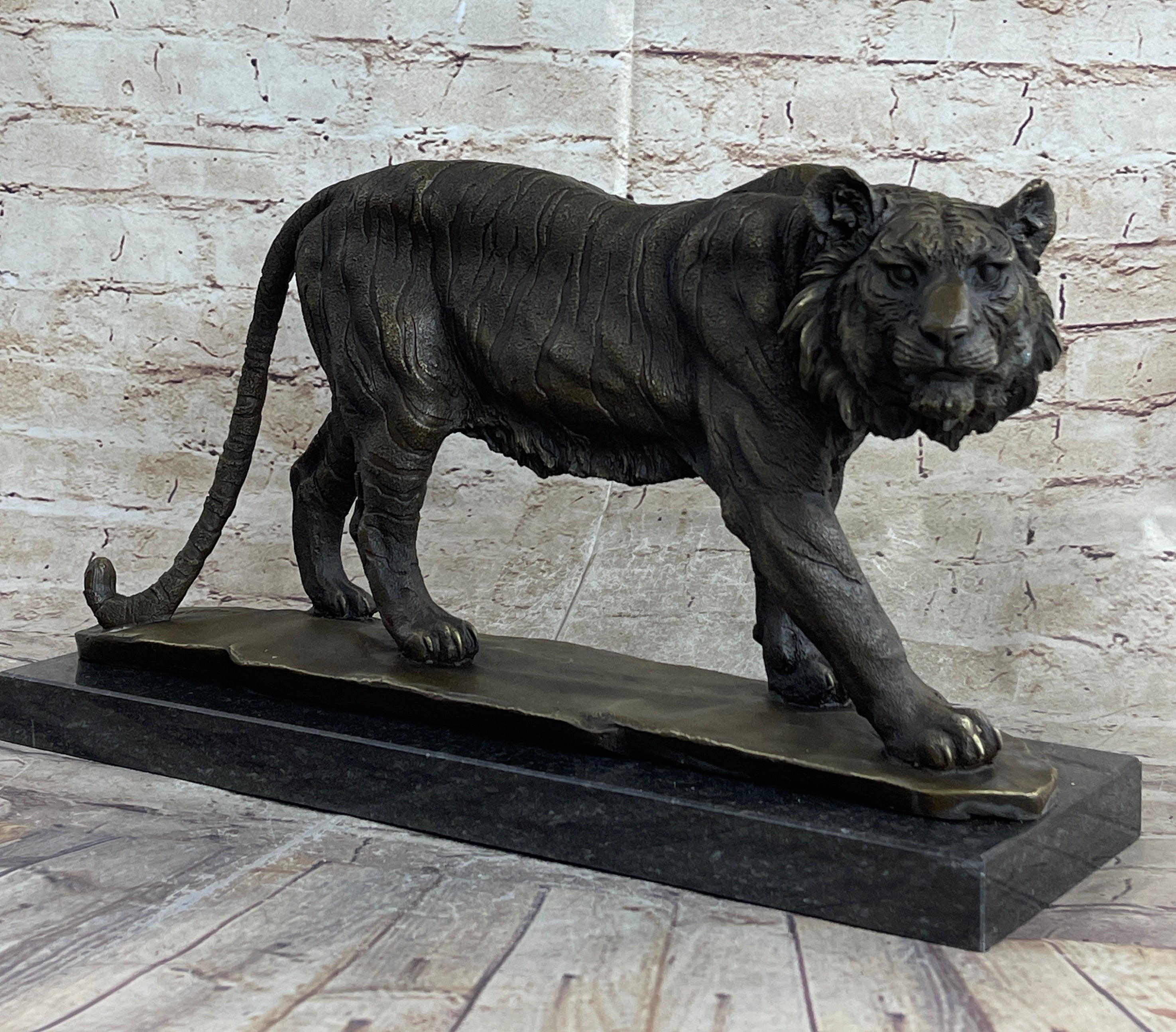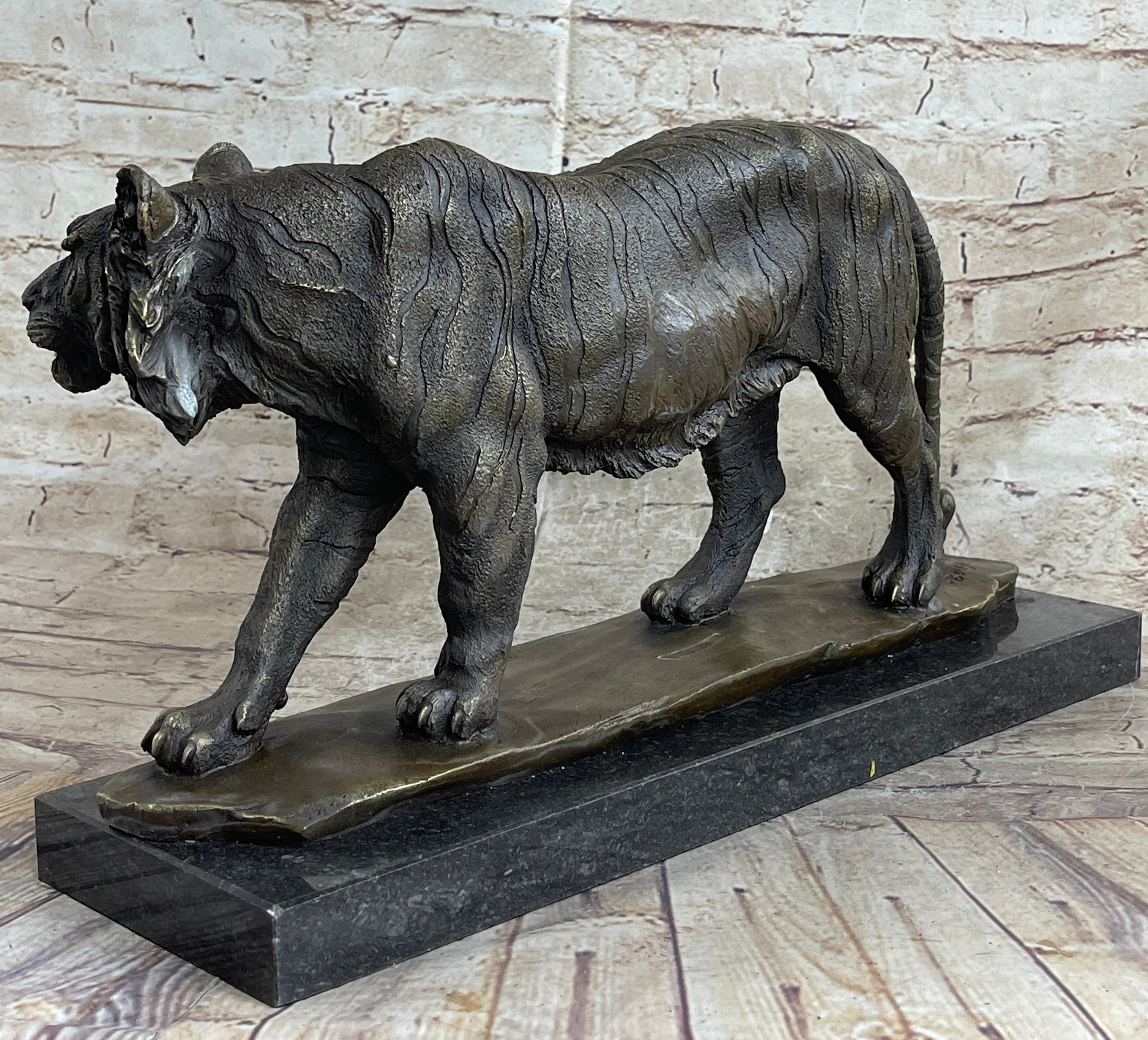 Bengal Siberian Tiger Bronze Statue Sculpture Figure on Marble Base Signed Art