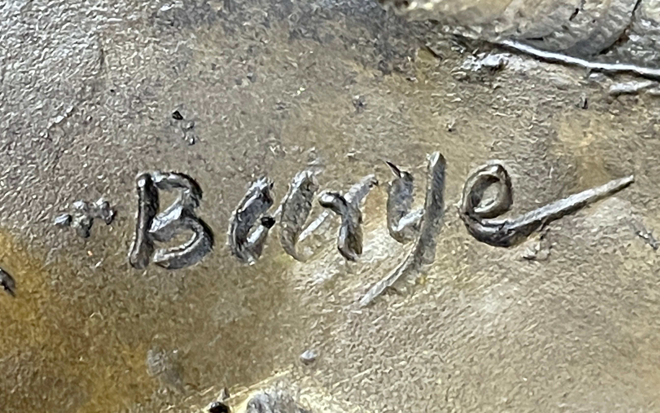 Signed by the acclaimed artist Barye, this sculpture is a true masterpiece that celebrates the extraordinary beauty of one of nature's most captivating creatures. Adorn your space with this remarkable work of art and let the majestic presence of the Bengal Tiger inspire a sense of awe, admiration, and reverence for the magnificence of the natural world.Bronze Dimensions with Marble Base: Height 9.5" X Width 17"