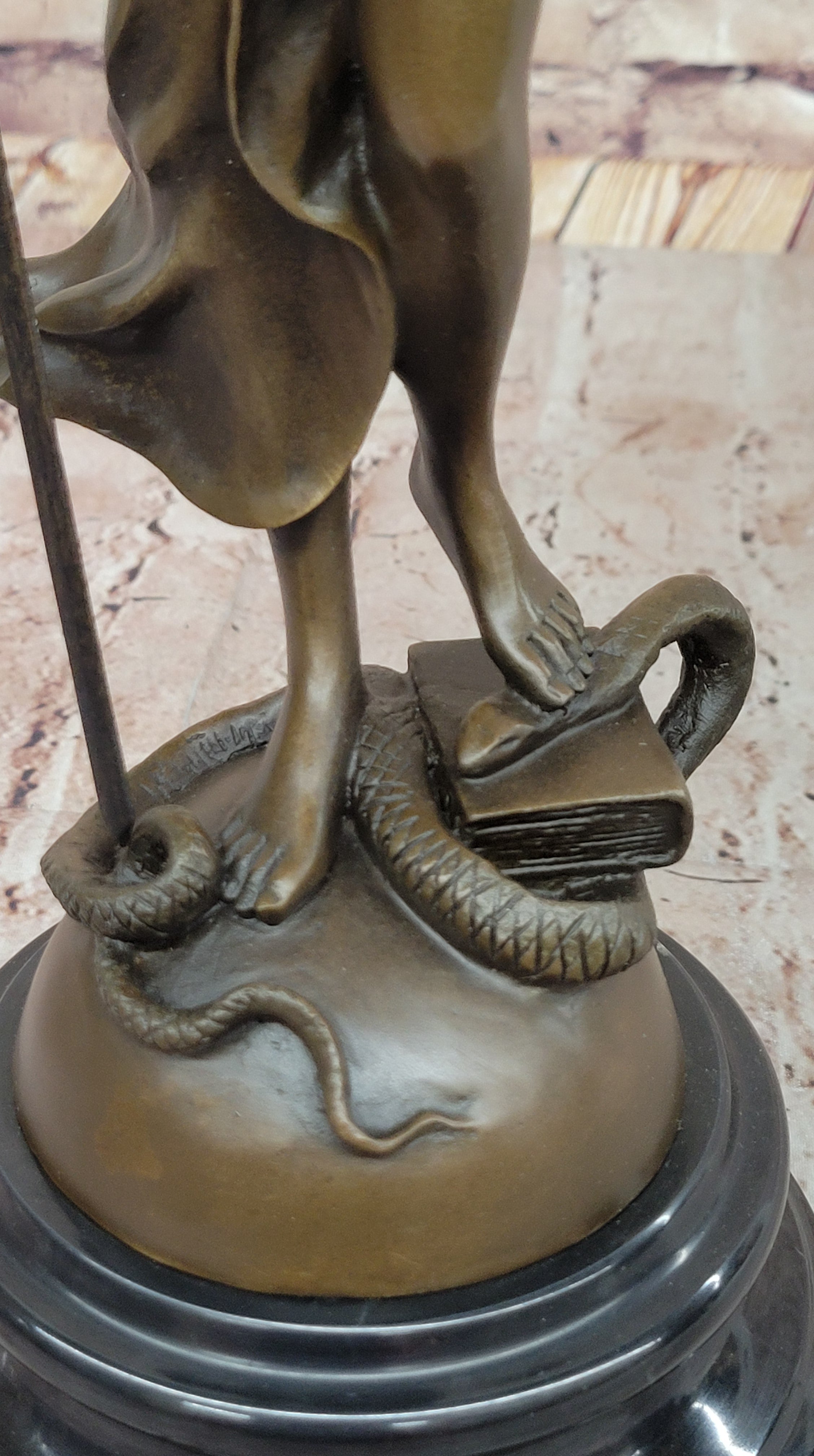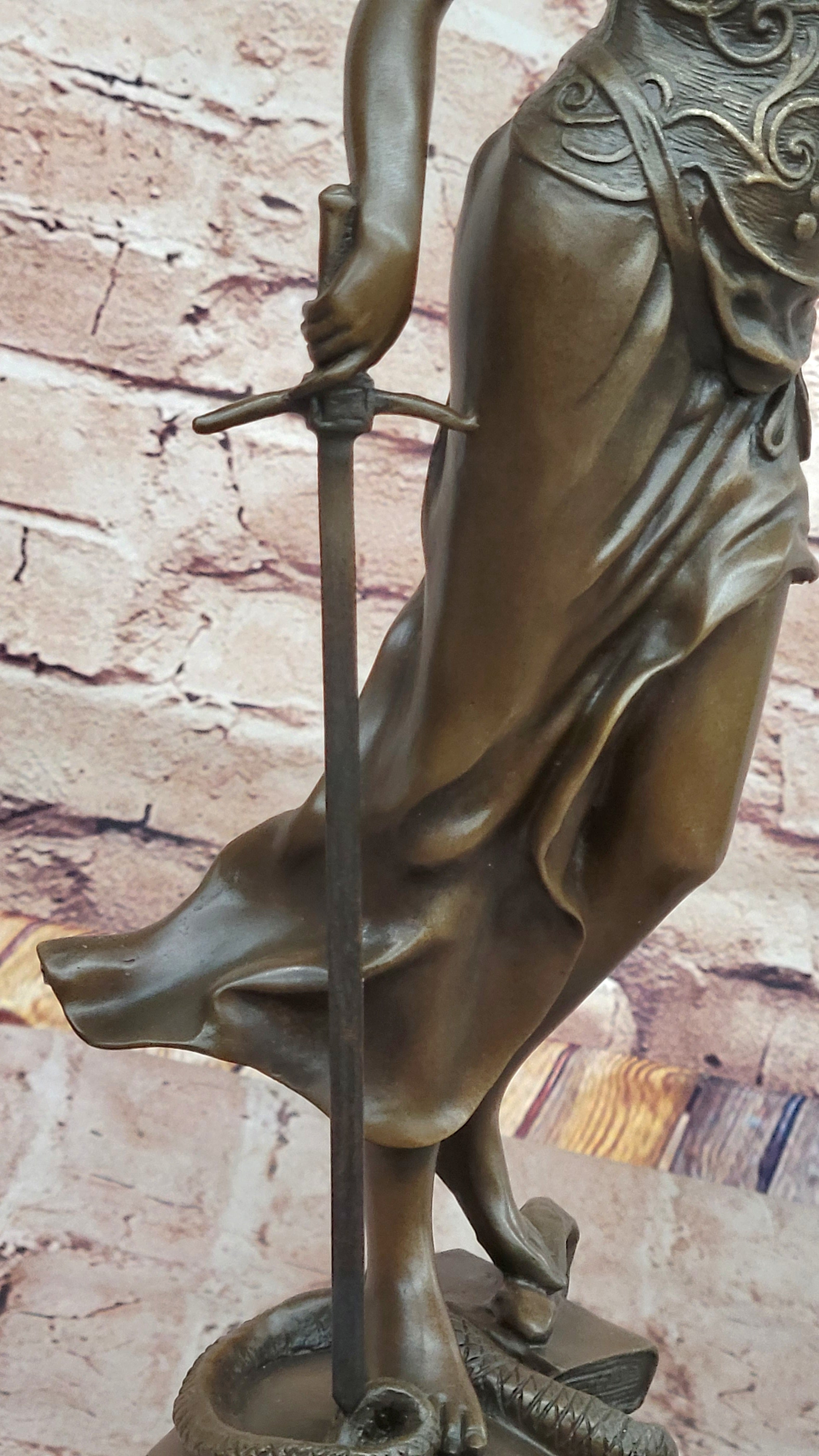 For those seeking a distinctive and meaningful piece of art that embodies the essence of justice, "La Justica" offers a unique opportunity. With its impressive detailing, classical beauty, and the symbolic weight it carries, this sculpture is not only an artistic masterpiece but also a profound representation of the principles that guide legal endeavors. Don't miss the chance to own this extraordinary piece at a great price — a timeless addition to any collection.Bronze Dimensions with Marble Base: Height 18" X Width 7"