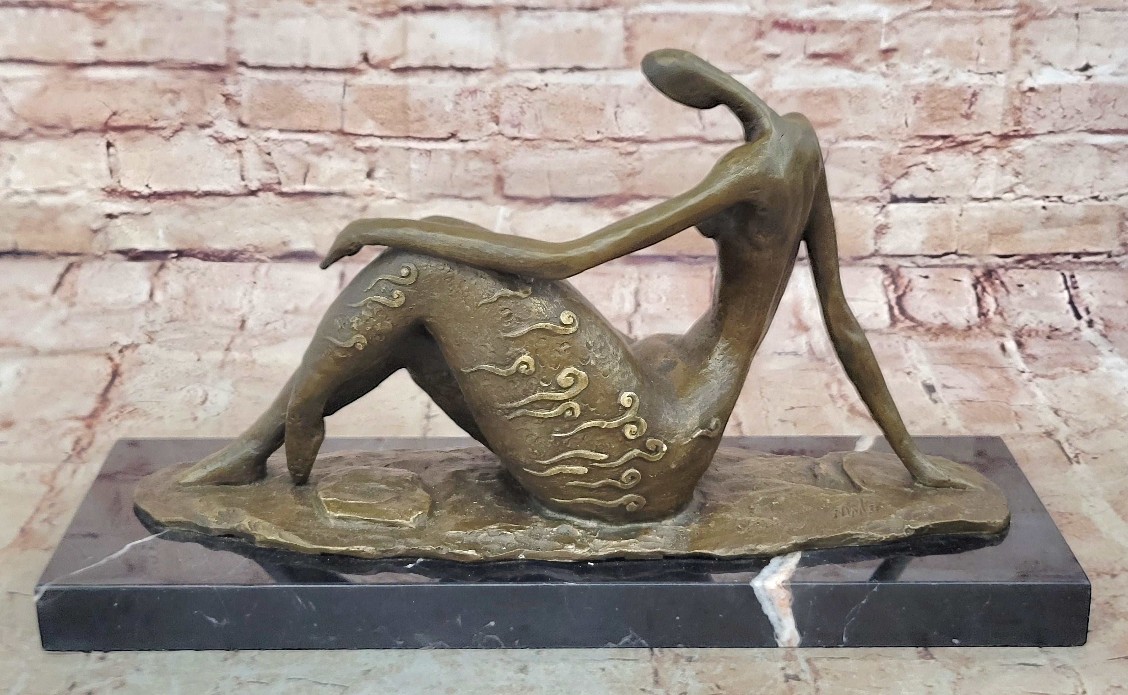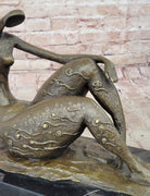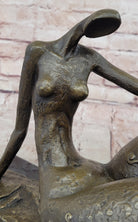 Bronze Abstract Reclining Female Nude Sculpture on Marble Base