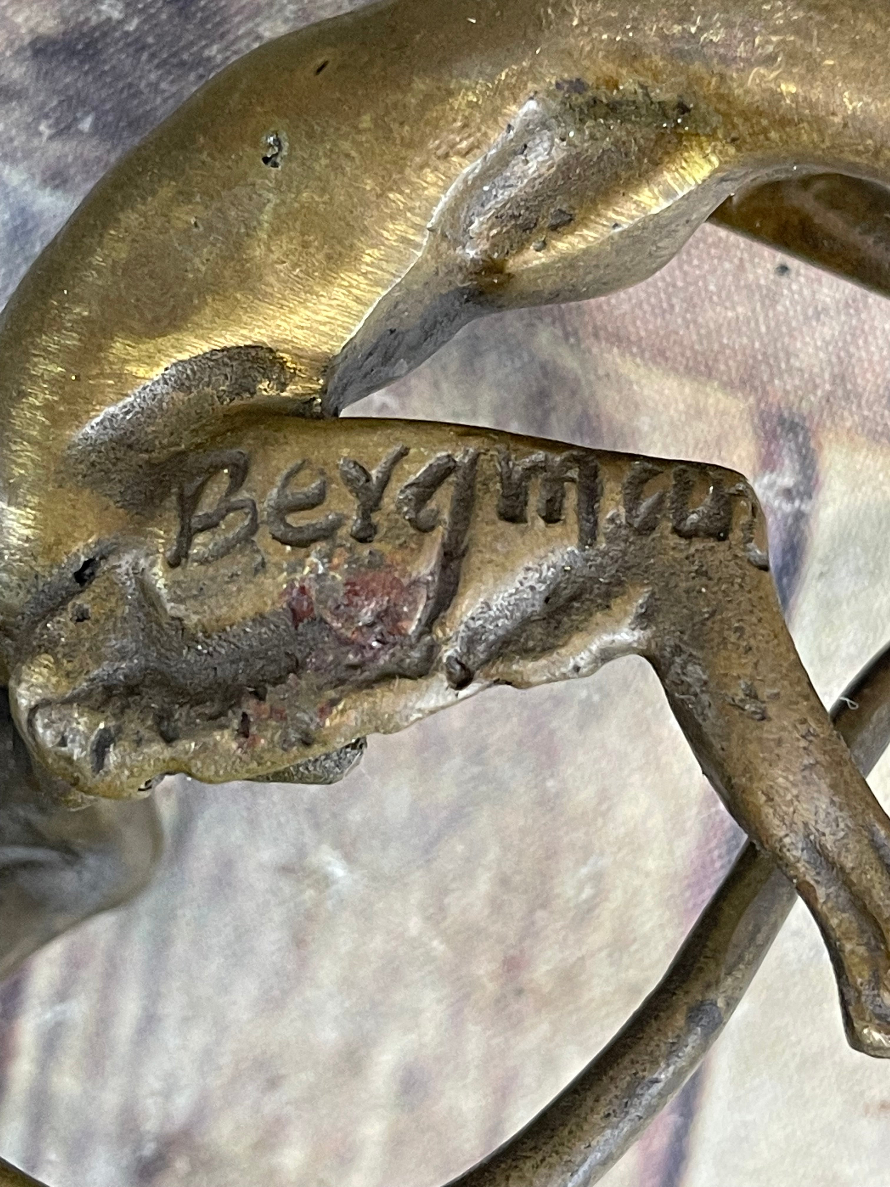 Created from high-quality bronze, this sculpture is a faithful reproduction of the original work by Bergmann. The artist's signature graces the underside of the sculpture, attesting to its authenticity and artistic value. Each curve, contour, and texture has been carefully sculpted to showcase the skill and craftsmanship that went into its creation.