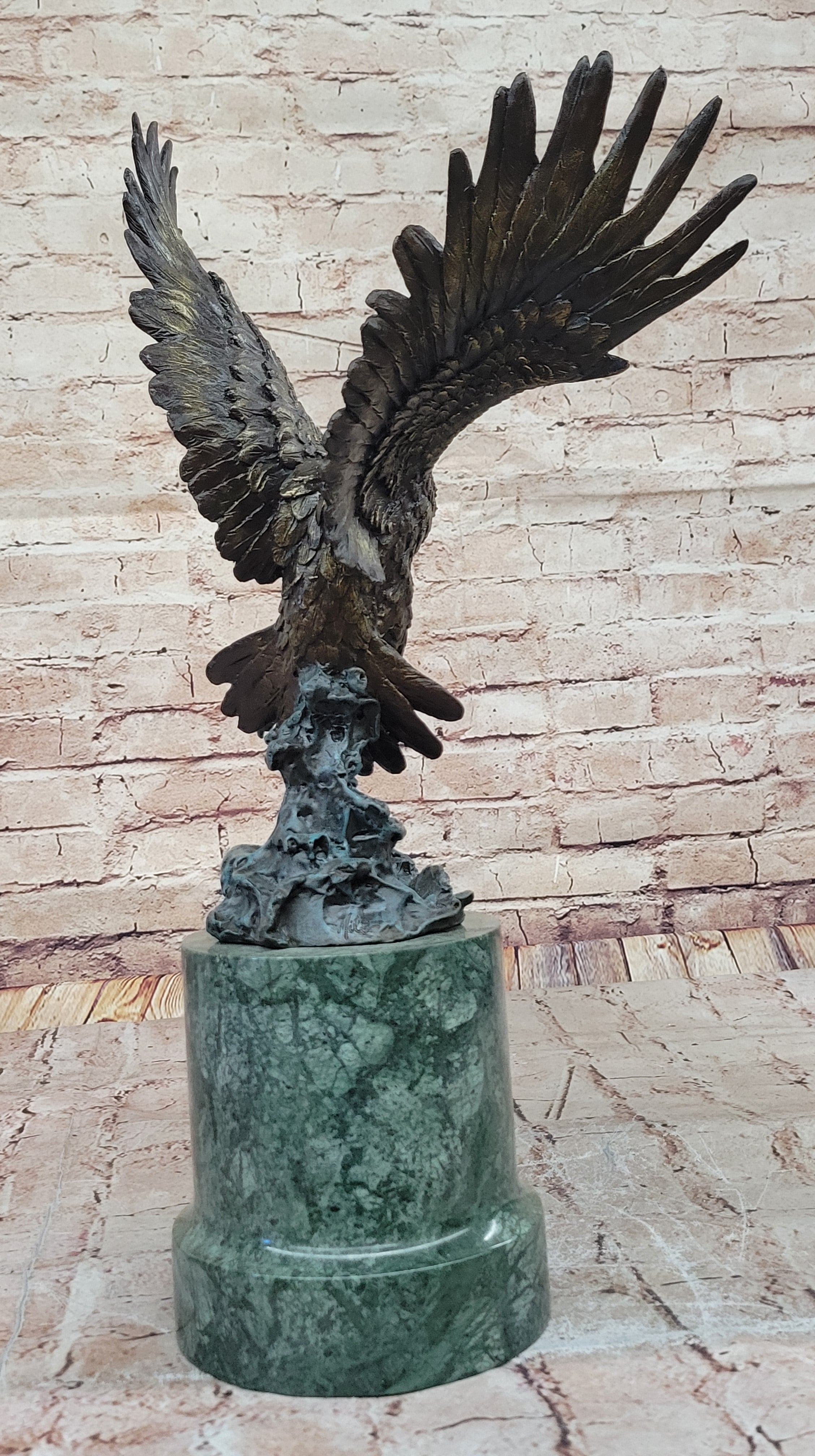 Bronze Bald Eagle Sculpture with Outstretched Wings on Green Marble Base by Milo