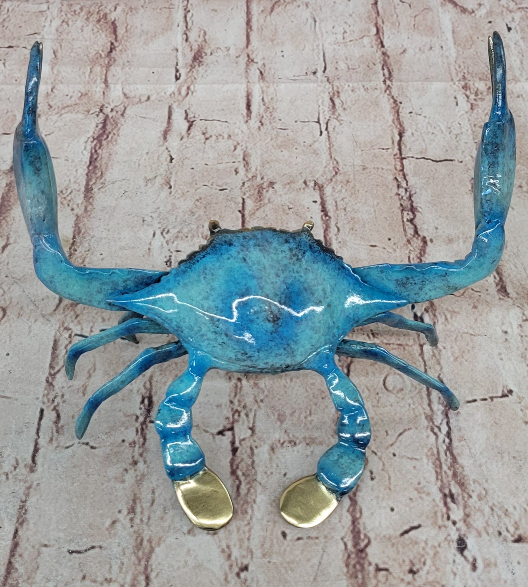 Bronze Blue Crab Sculpture Figure Figurine Original Art Glazed Colorful Patina 4" x 8"