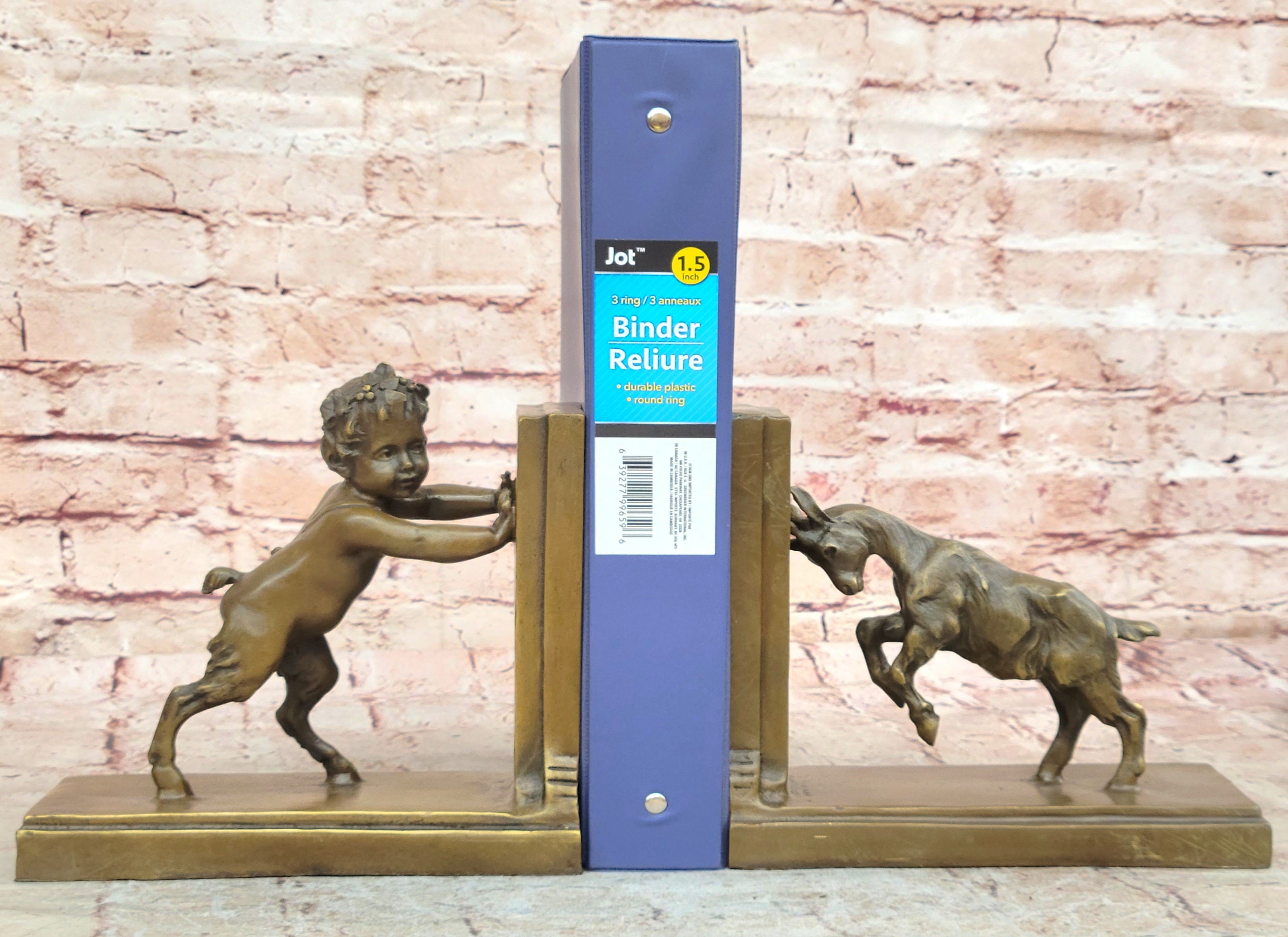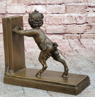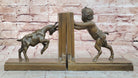 Bronze Bookends – Satyr and Goat Figurine Pair Mythological Sculpture