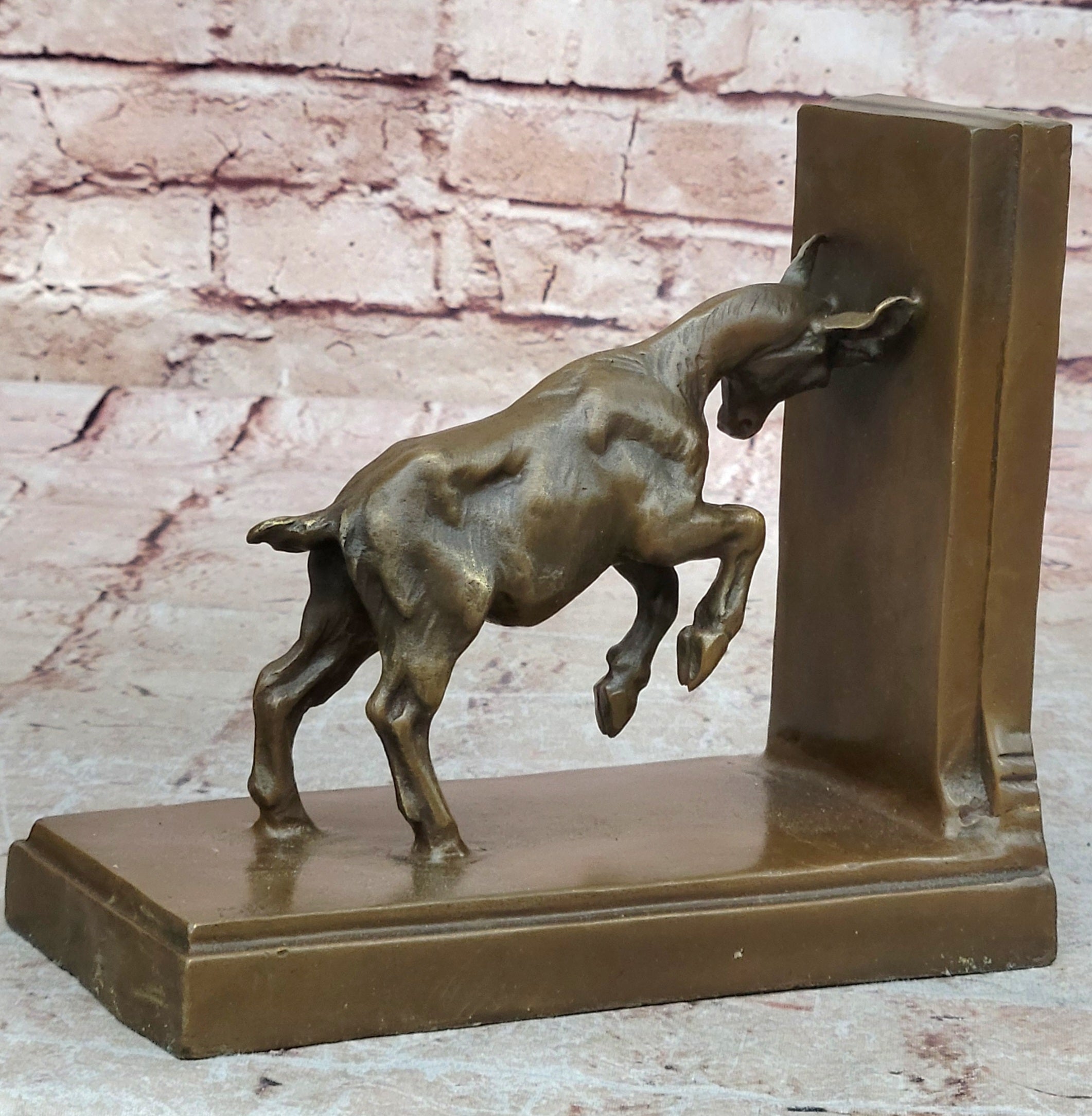 Each bookend has been handmade using the ancient lost wax method, a technique that ensures every fine detail of the satyr’s form and the goat’s features is rendered with precision. The rich brown patina further enhances the depth and texture of the bronze, giving the set a timeless aesthetic and warm character.