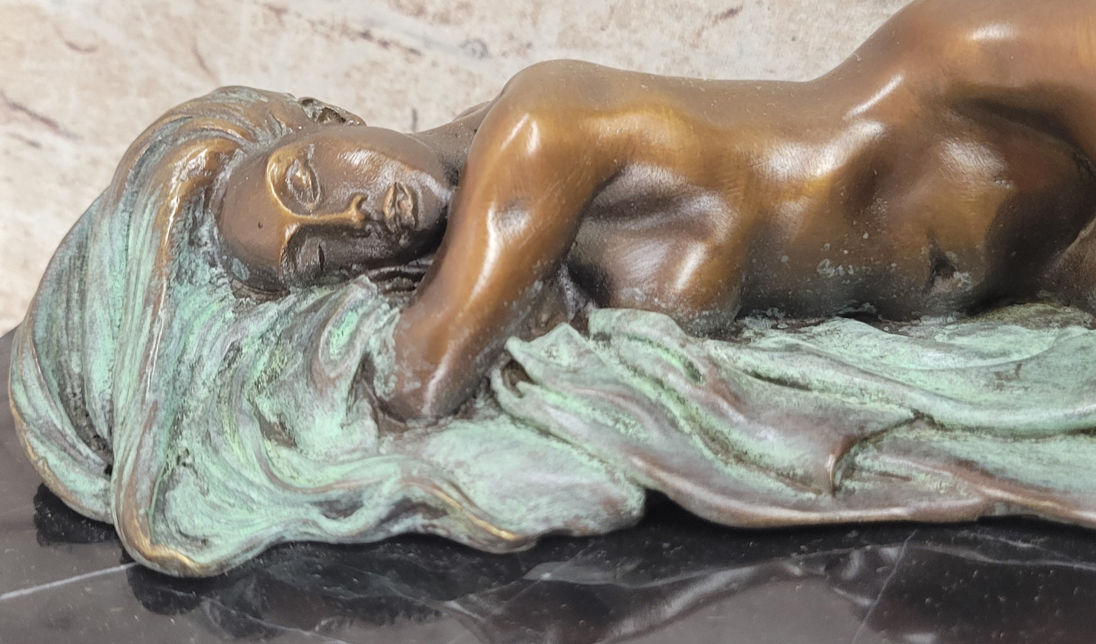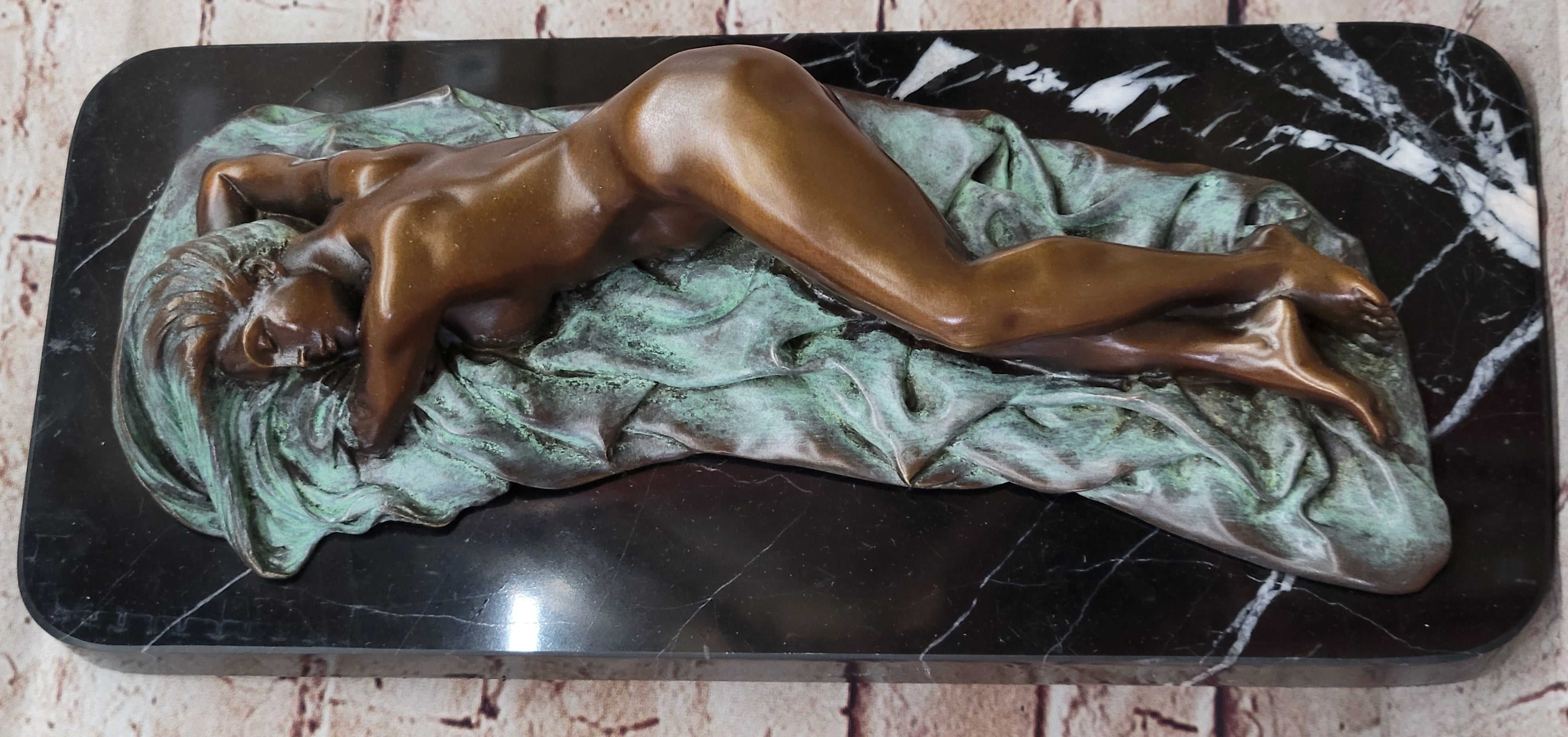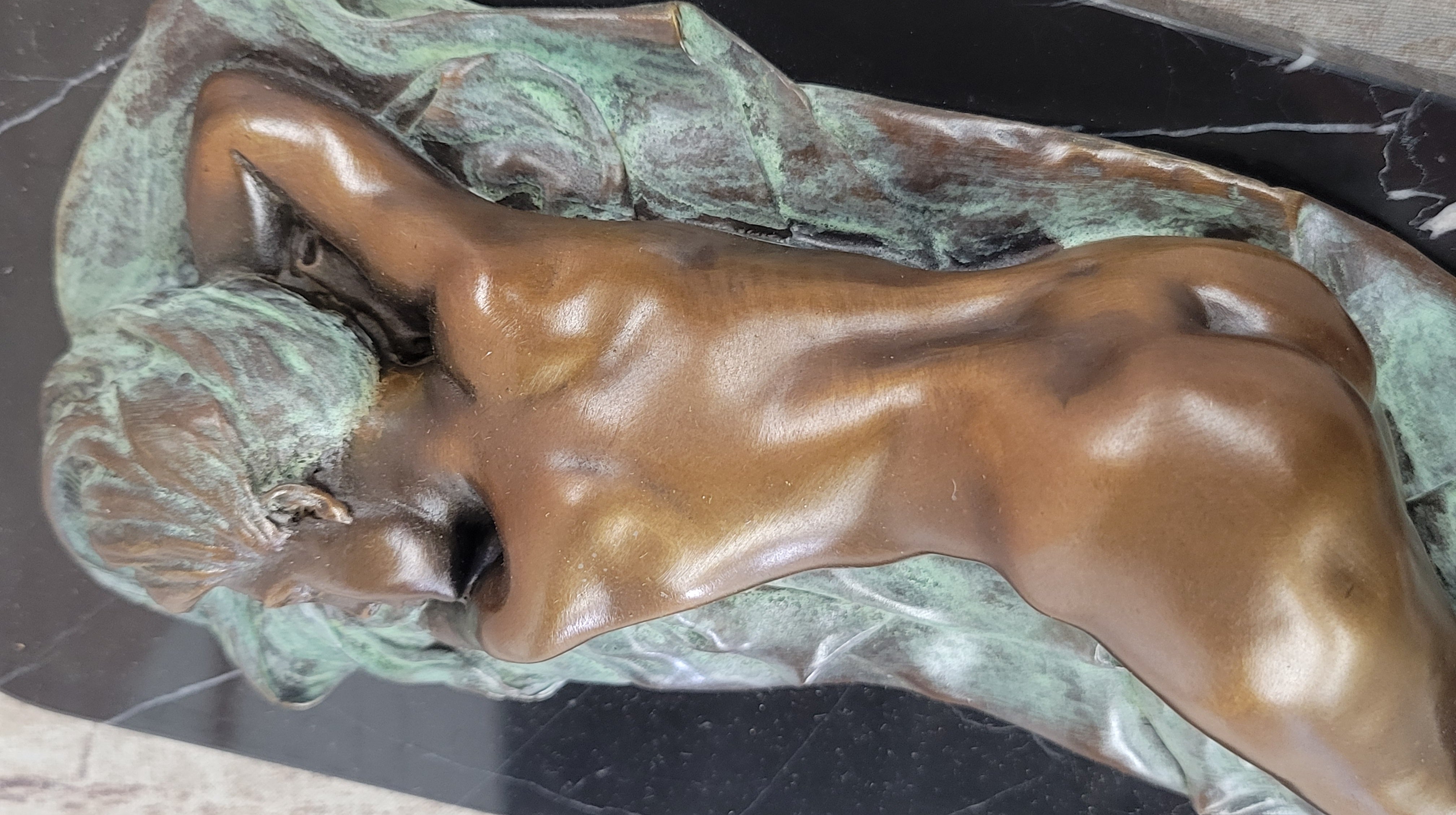 Bronze Fully Nude Girl Laying Down Sleeping on Marble Base Original Art