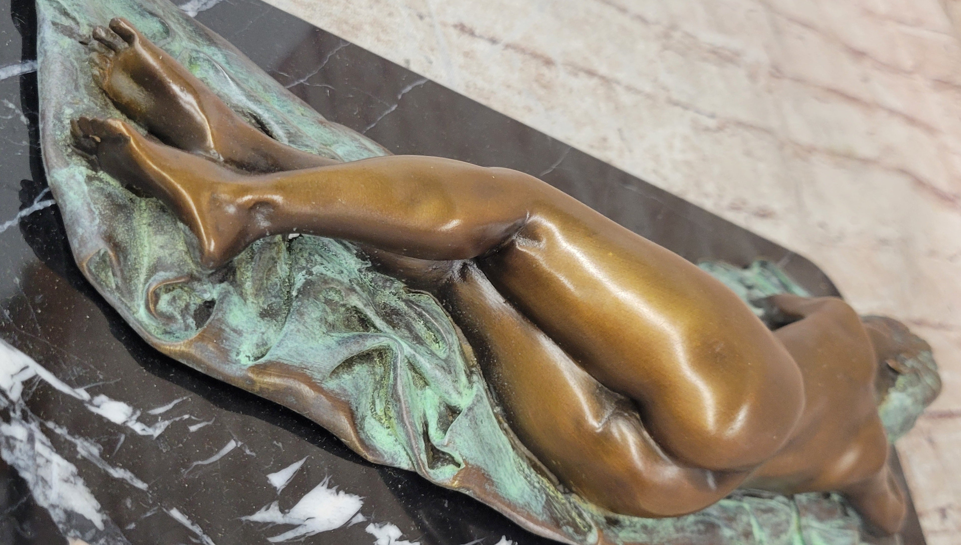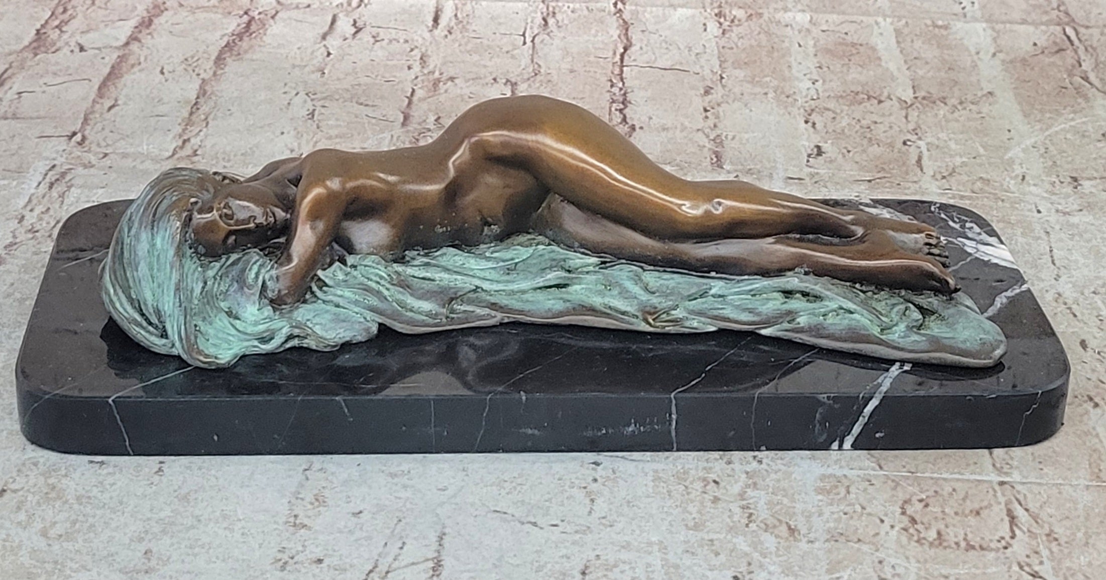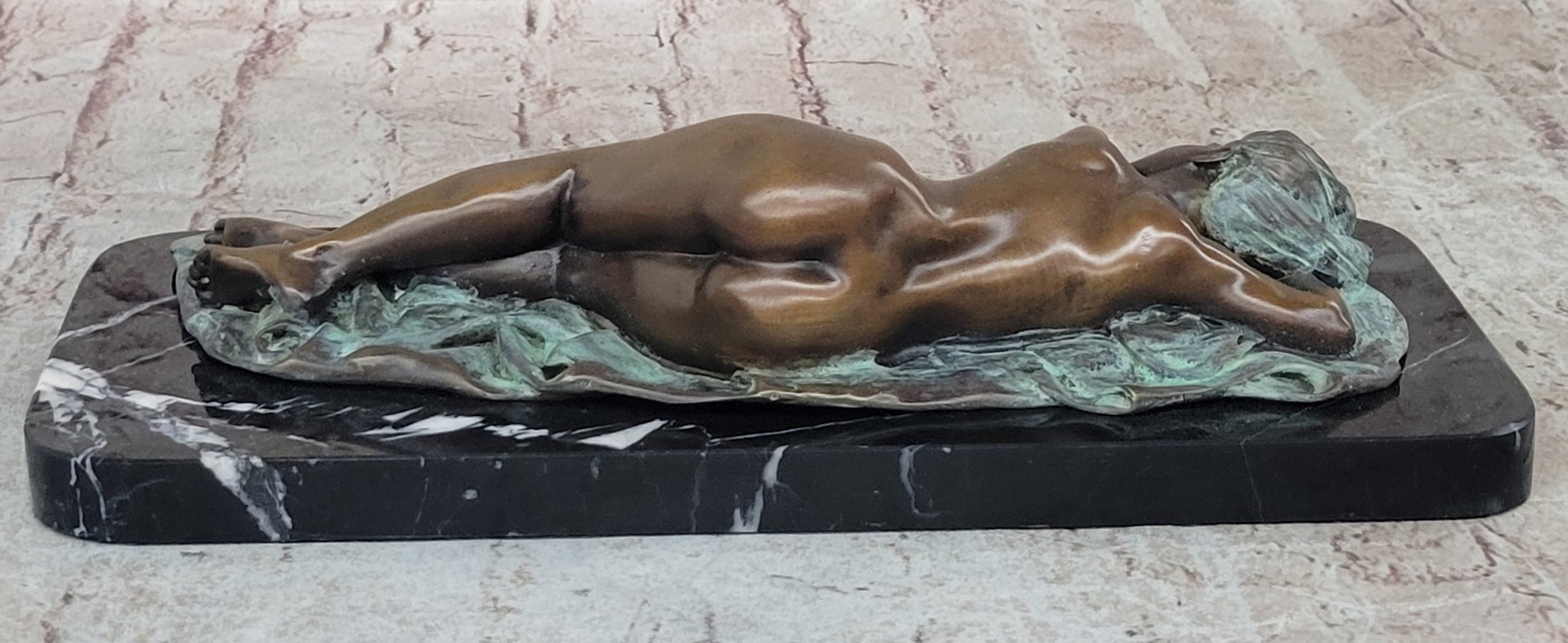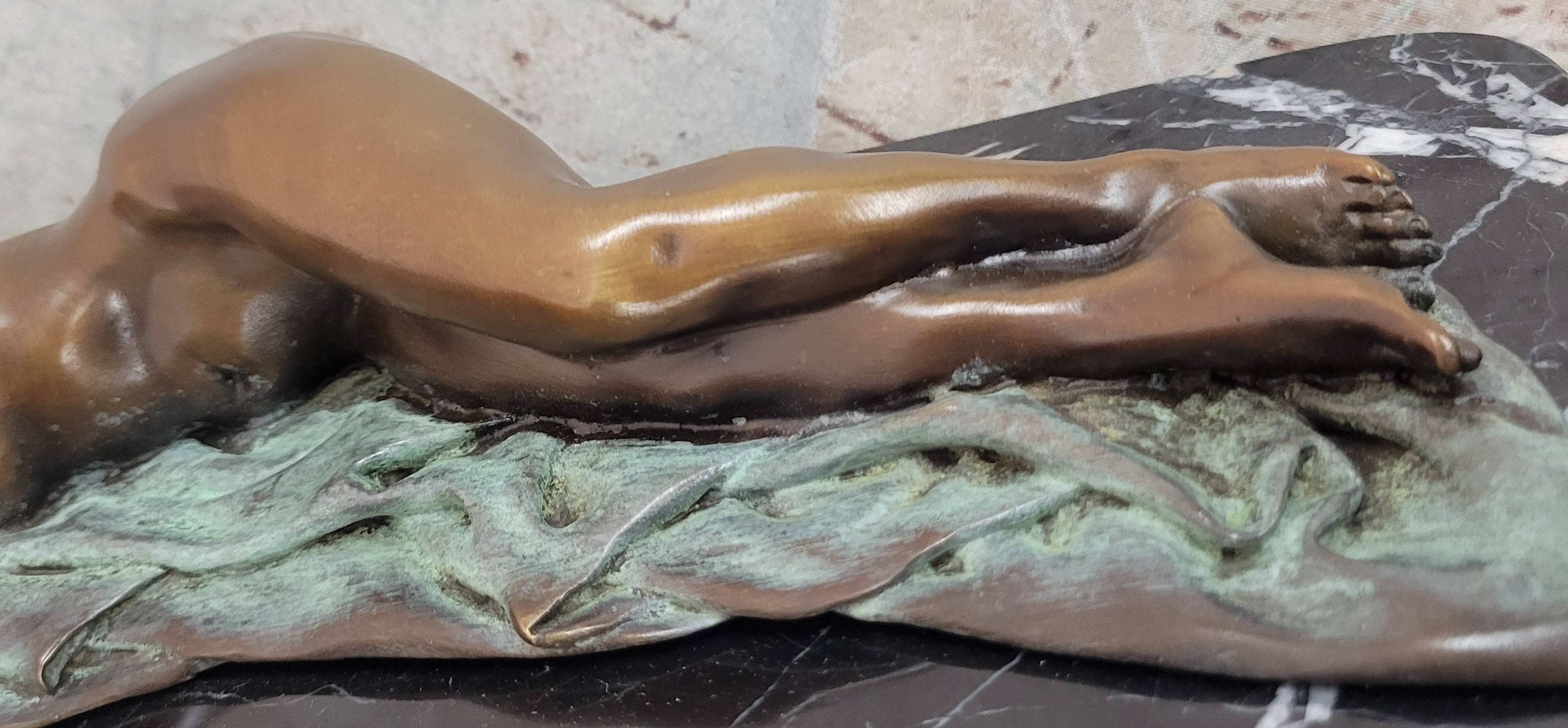 Bronze Fully Nude Girl Laying Down Sleeping on Marble Base Original Art