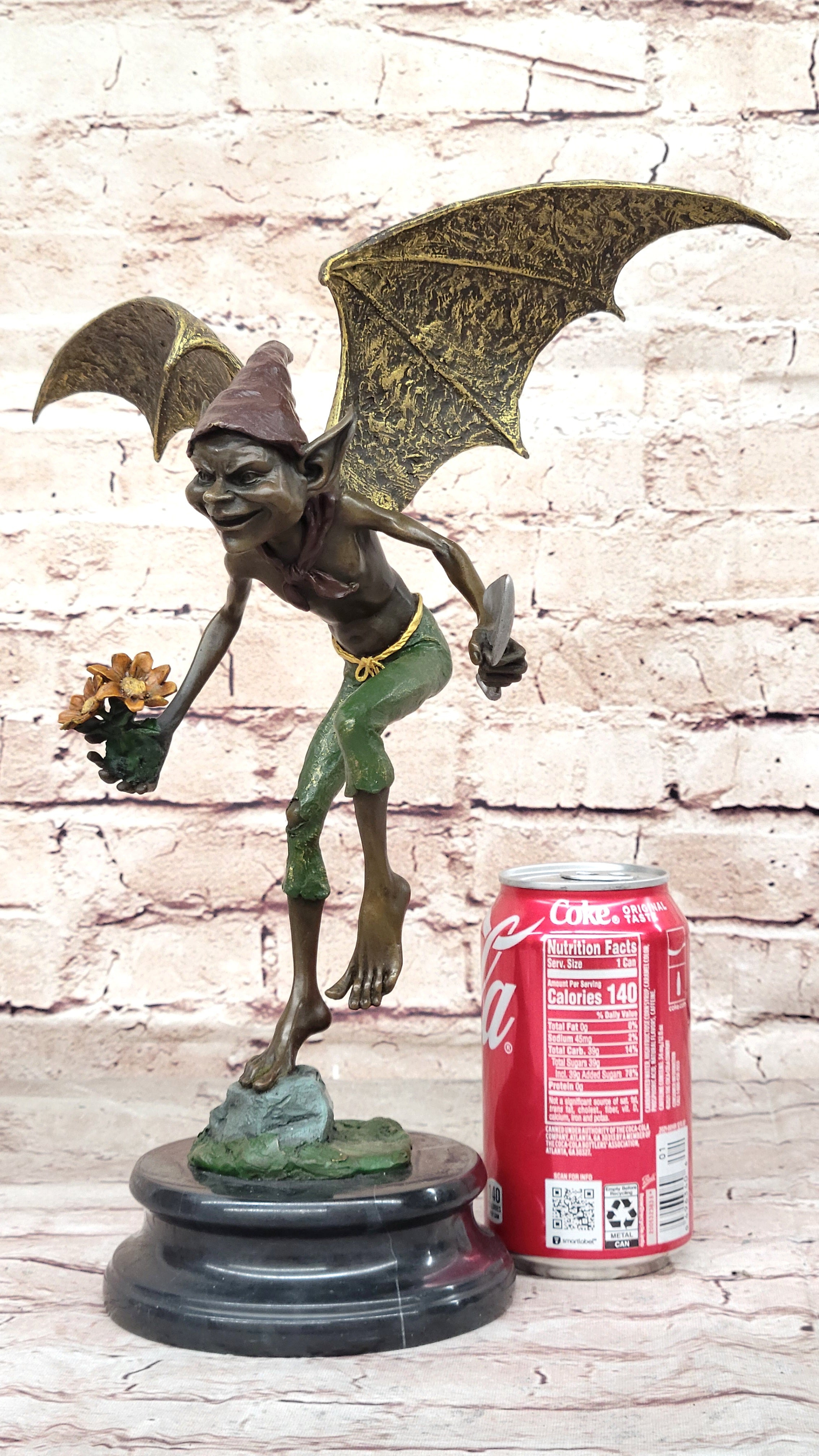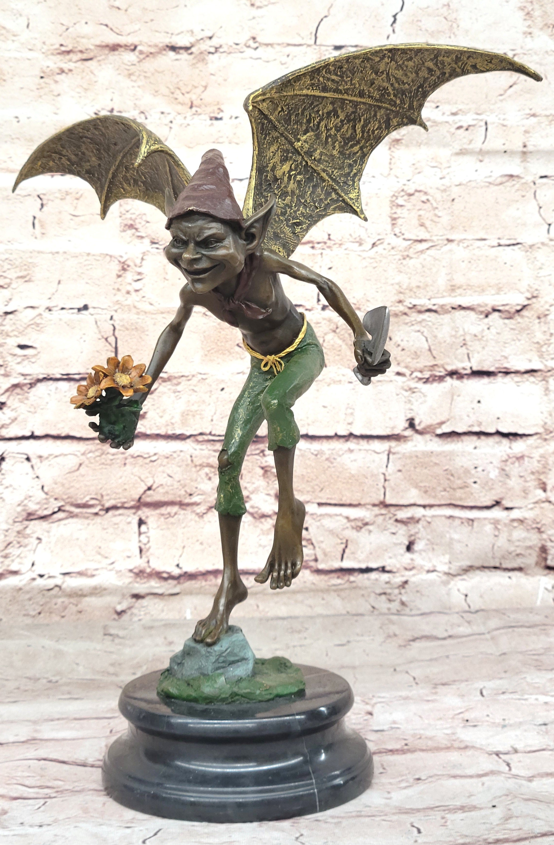 Juno's signature on this bronze masterpiece ensures its authenticity and adds a personal touch to the overall appeal. The Goblin/Gnome/Leprechaun, with its mischievous charm, becomes a delightful addition to any space, whether it's your home or office. The details in the craftsmanship, from the mythical creature's expression to the intricate features, make it a collector's item that sparks the imagination and conversation.
