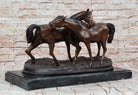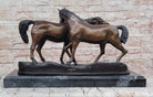 Bronze Horses Sculpture – Pair of Grazing Stallions Statue on Marble Base