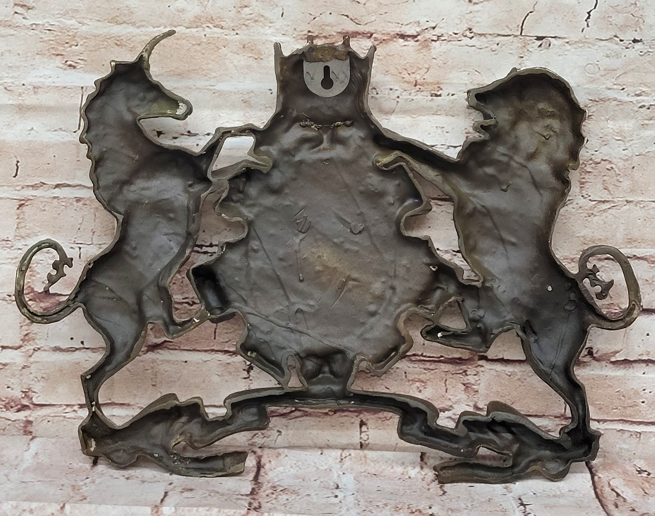 Bronze Lion and Unicorn Heraldic Crest Coat of Arms Hanging Wall Sculpture