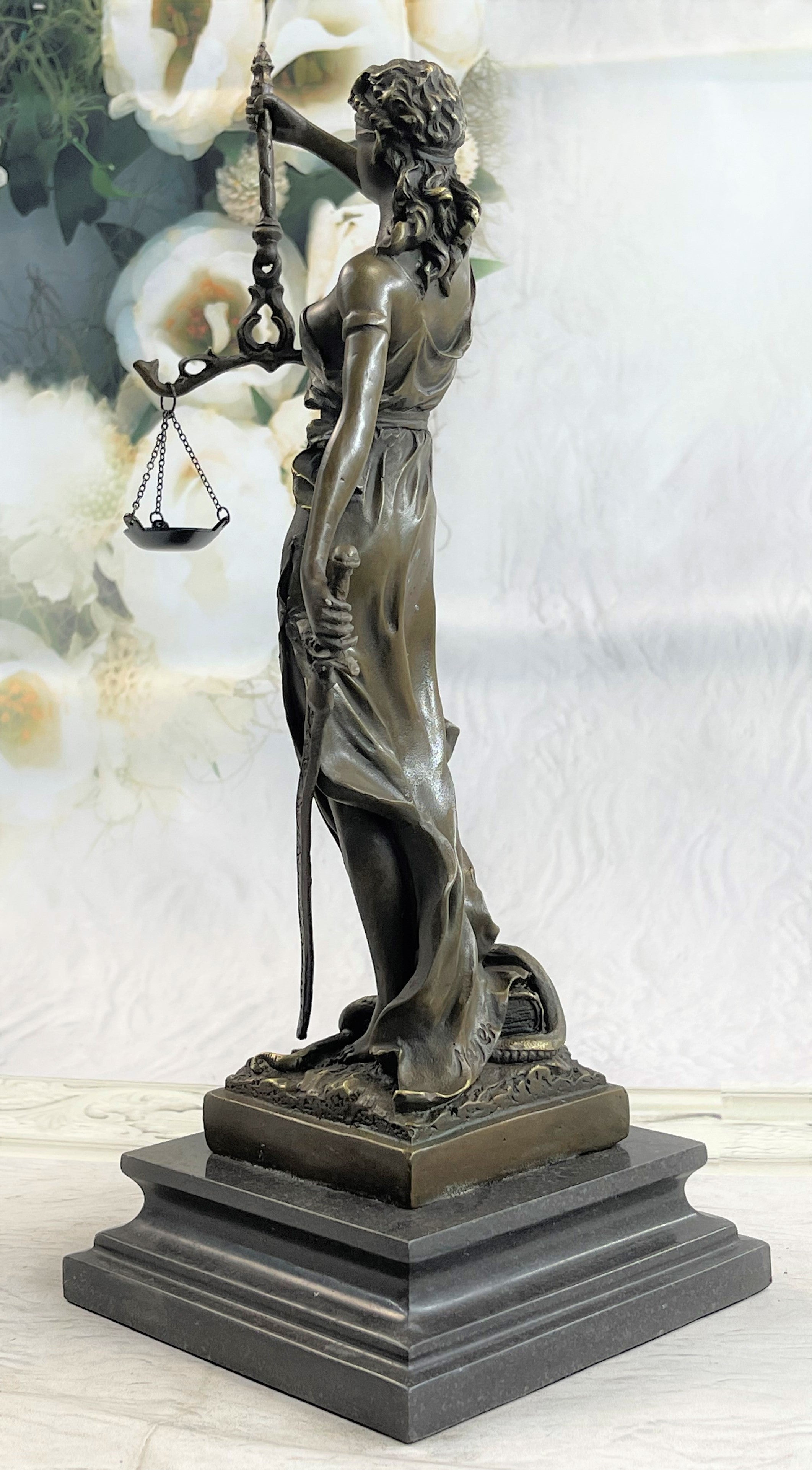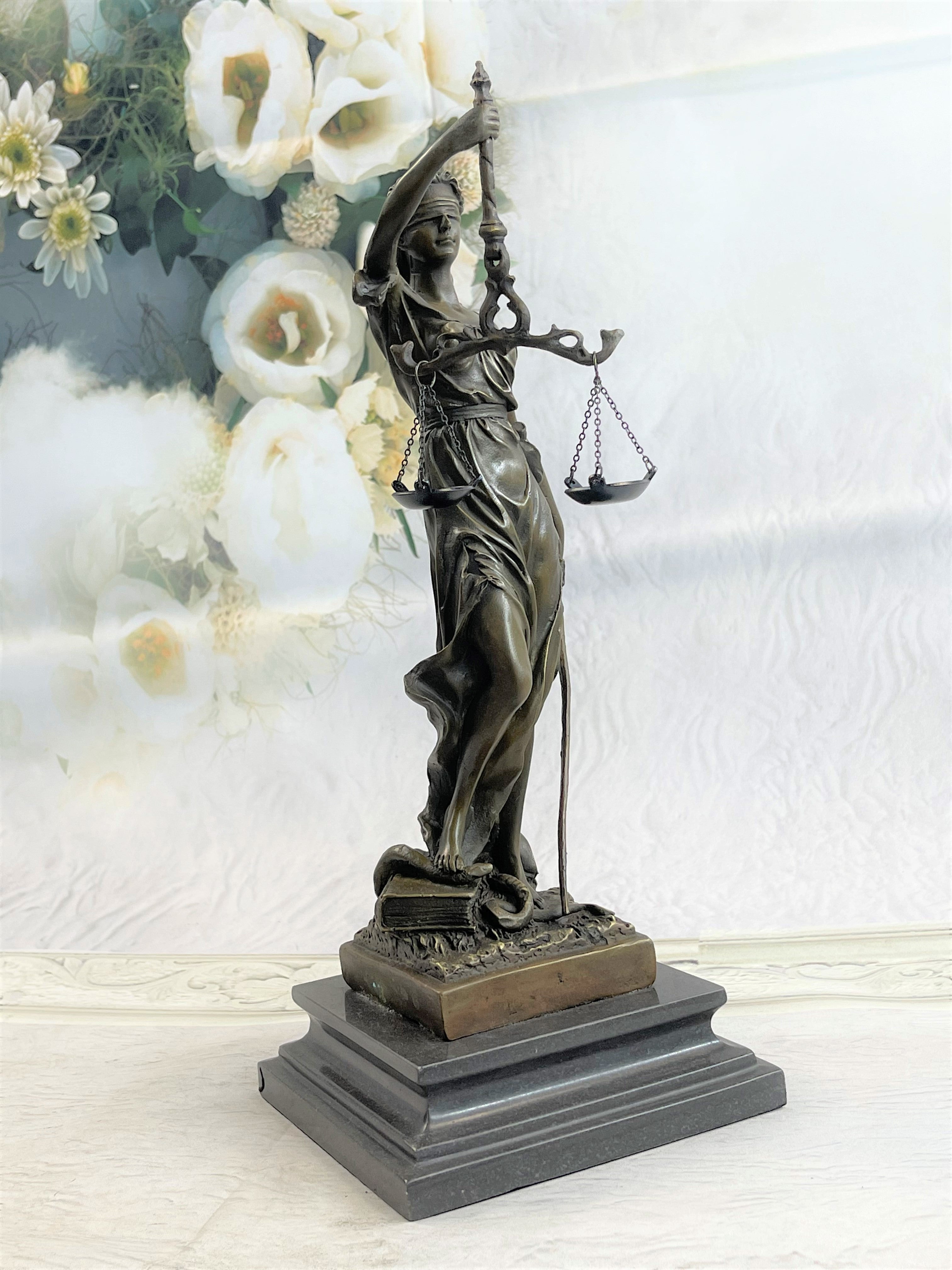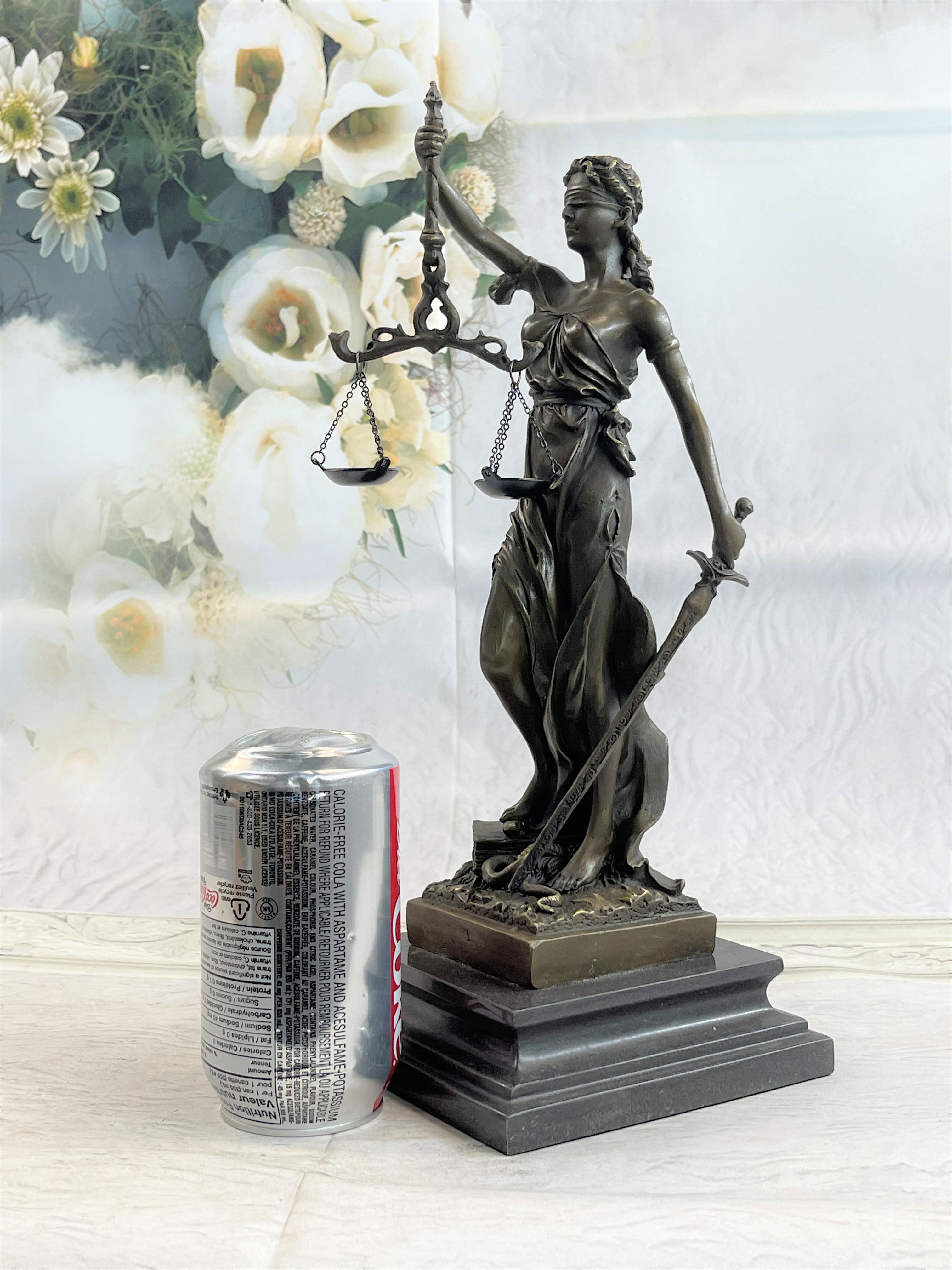 Bronze Marble Statue Lady Justice Scales Goddess Lawyer Sculpture Figurine Deco