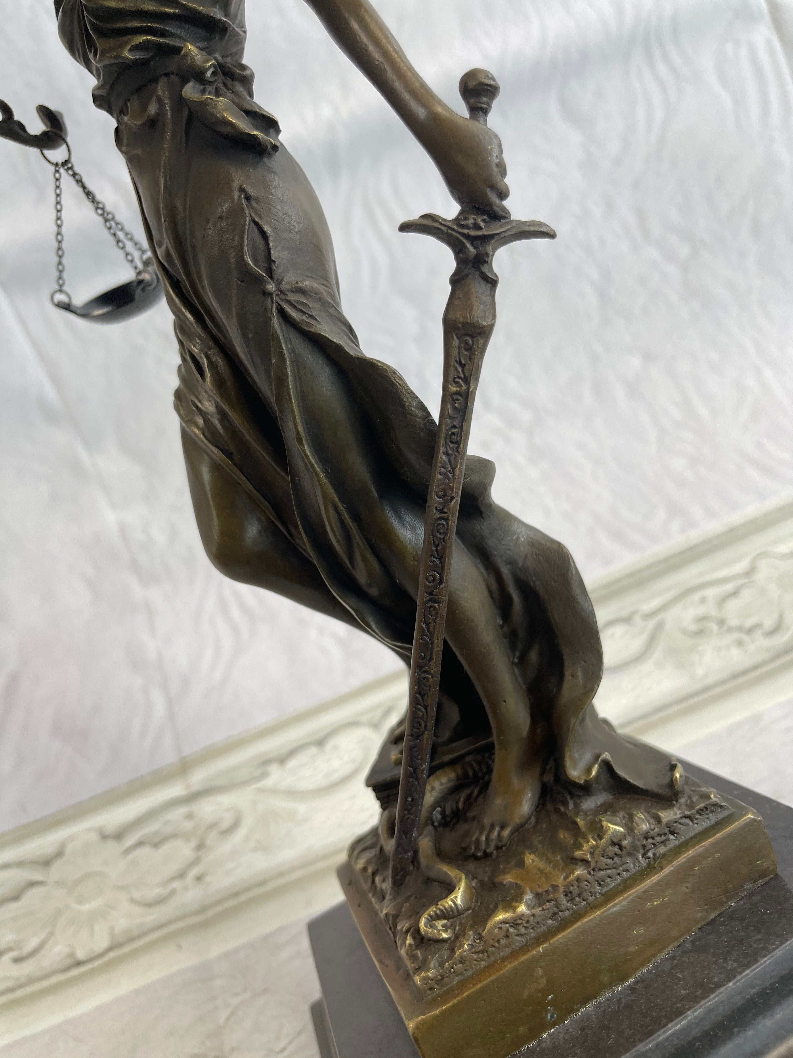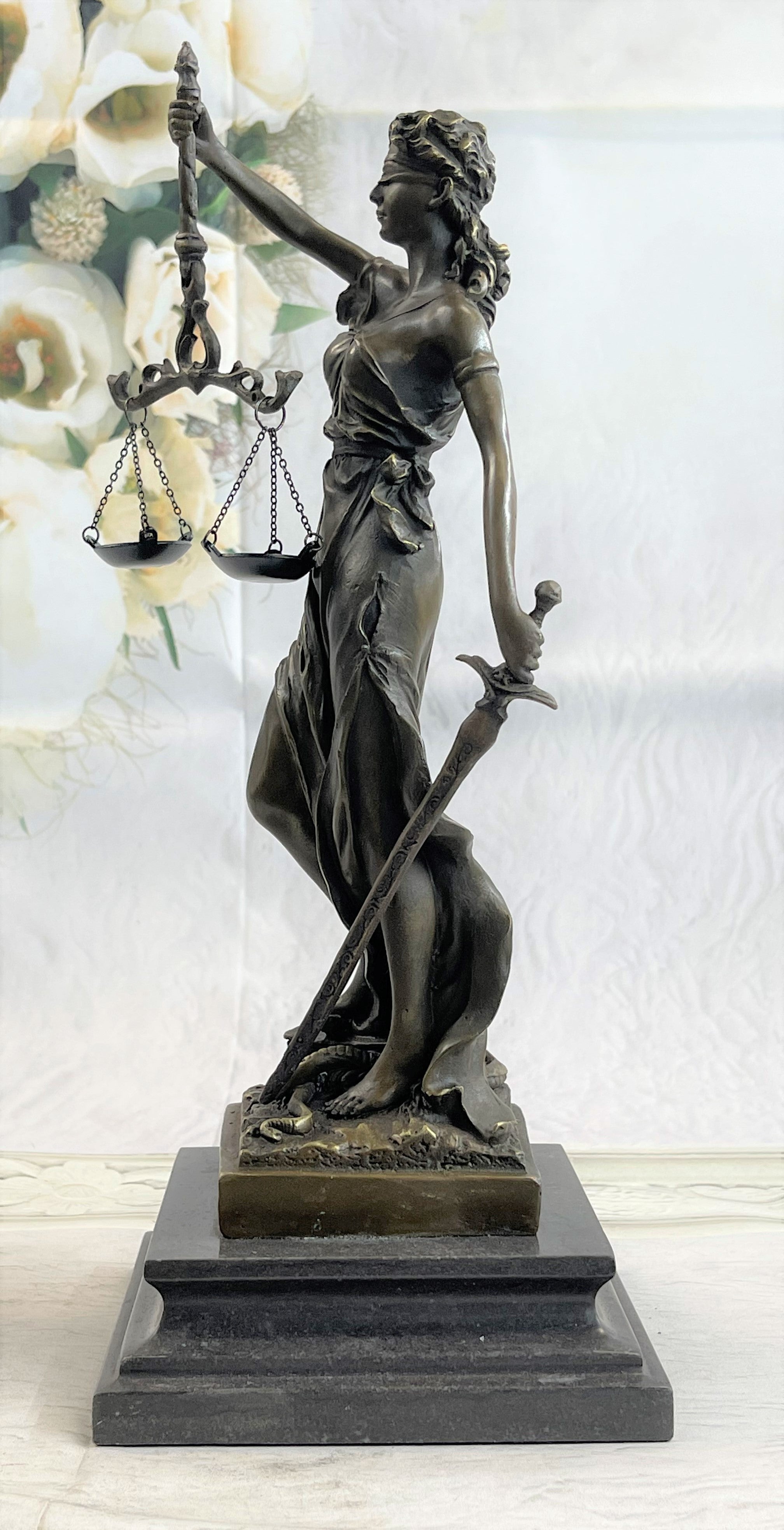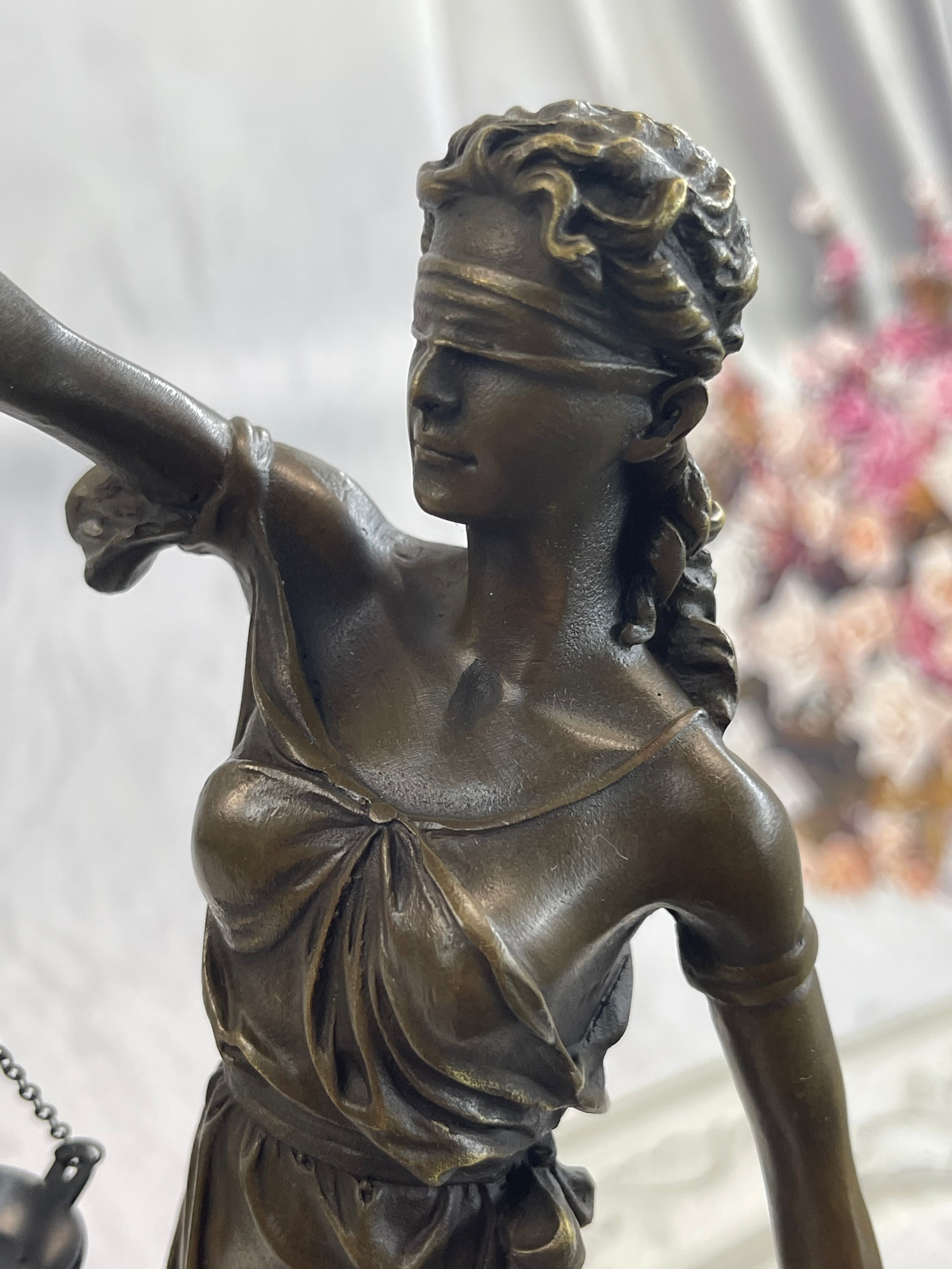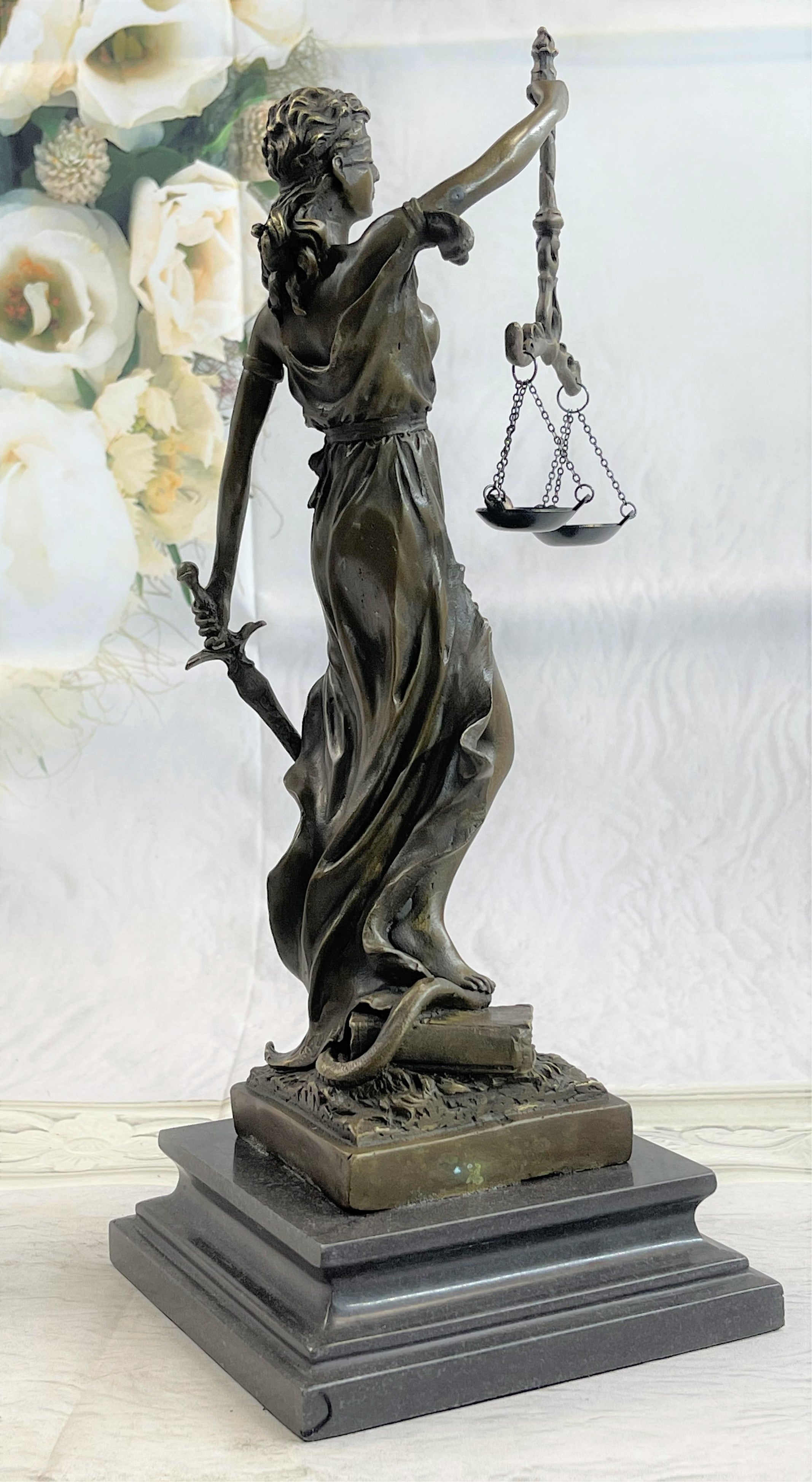 Bronze Marble Statue Lady Justice Scales Goddess Lawyer Sculpture Figurine Deco