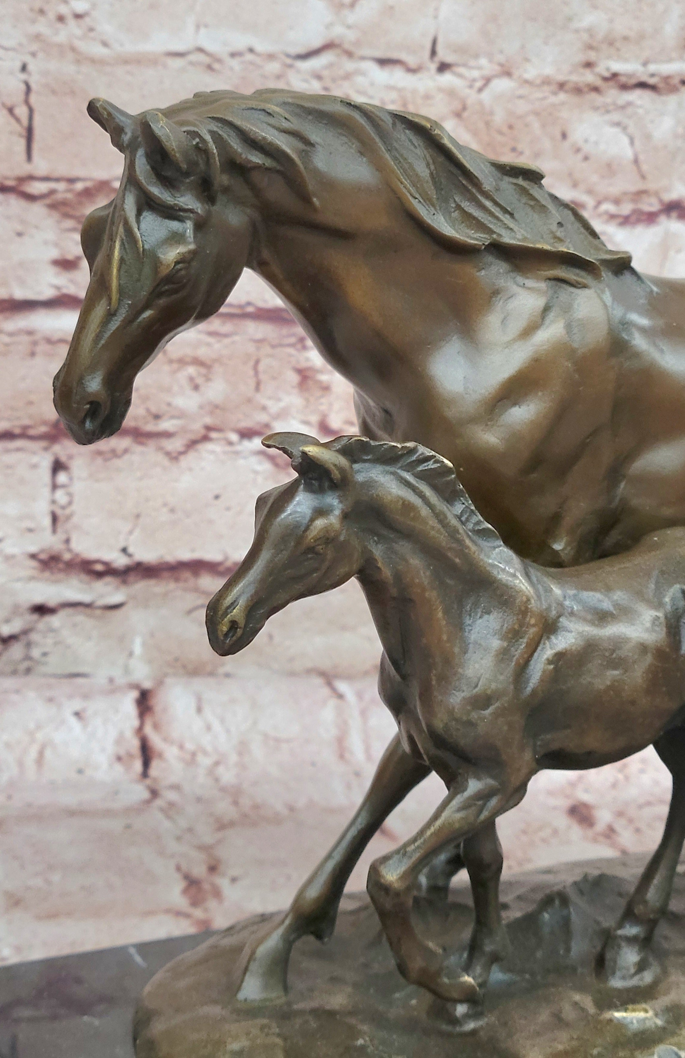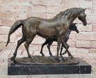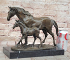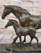 Bronze Mare and Foal Horse Sculpture on Marble Base Equestrian Statue