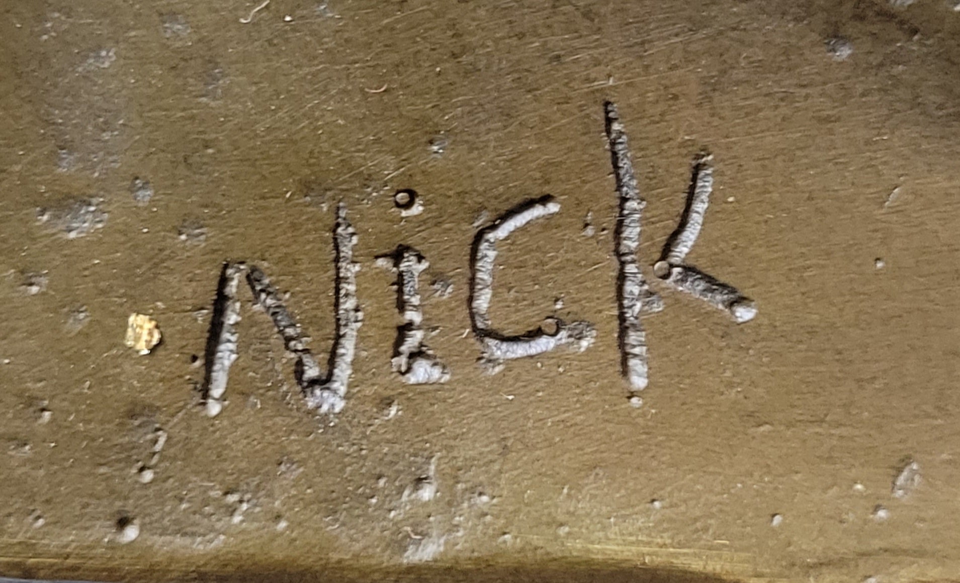 A fine detailed bronze, 20th century bust of a child, signed by Artist Mario Nick. This bronze has a beautiful patina, attached to a solid marble base. This piece is absolutely charming and is signed Nick..Bronze Dimensions with Marble Base: Height 17" x Width 11"