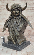 Bronze Native American Warrior Bust – Tribal Chief Statue on Marble Base