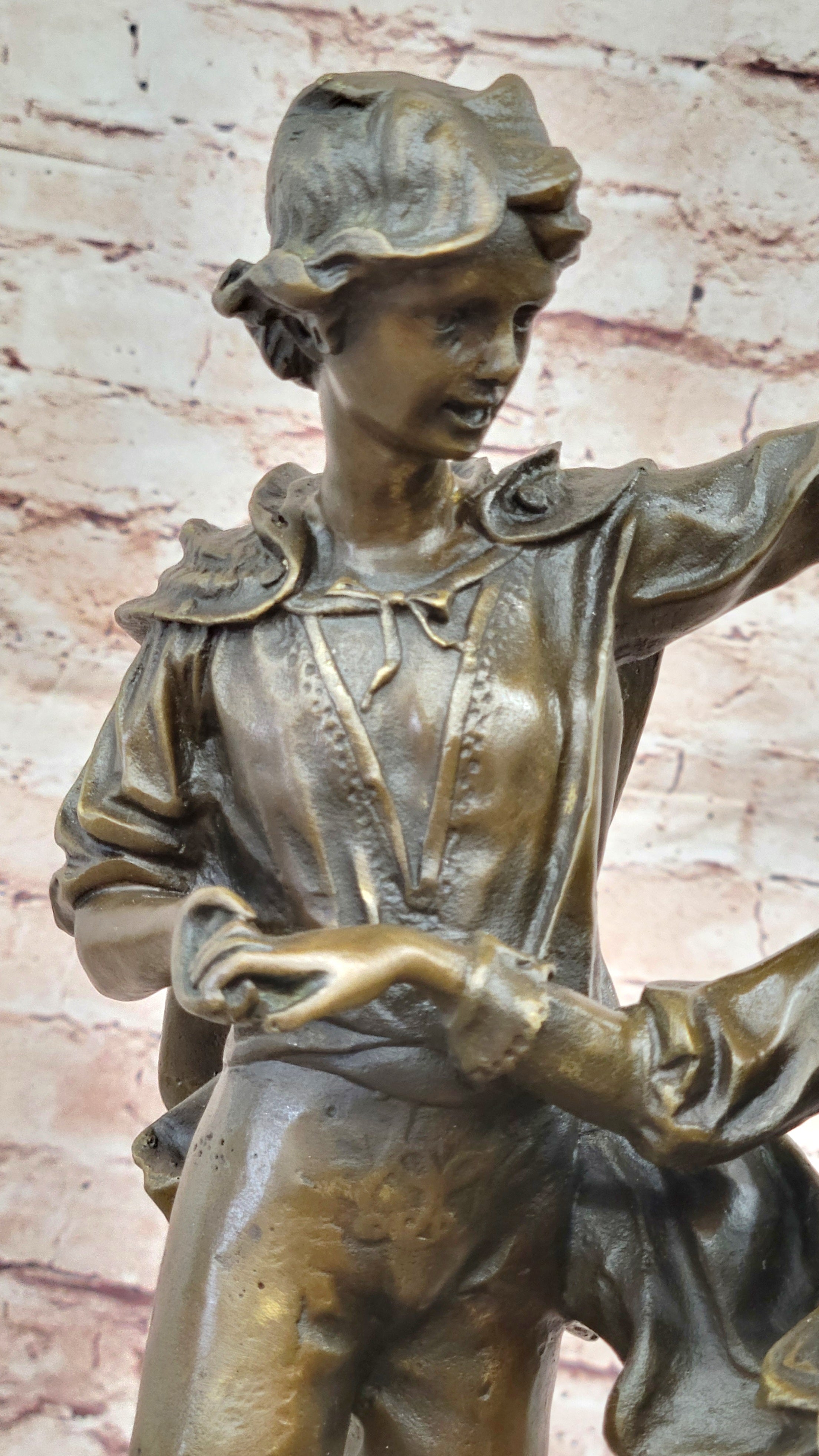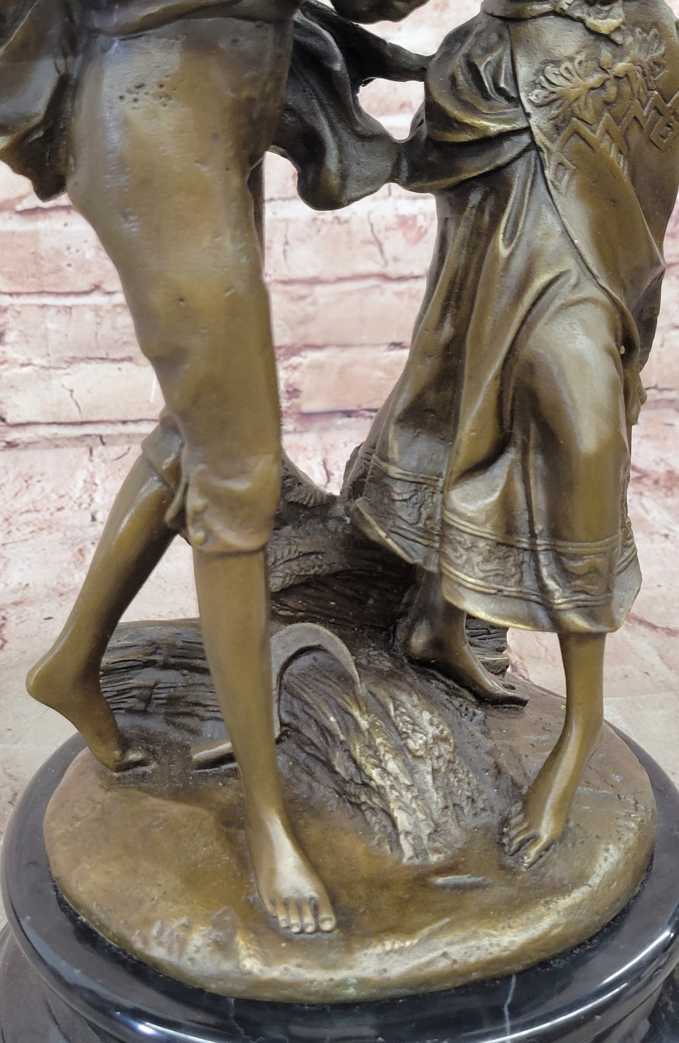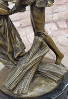 Mounted on a smooth round black marble base, this signed original sculpture is both elegant and durable. Perfect as a centerpiece in any collection, it celebrates not only fine craftsmanship but also one of the most enduring love stories in history. A true collectible, this work of art makes a meaningful addition for admirers of romance, literature, or bronze artistry.Bronze Dimensions with Marble Base: Height 17.5" X Width 9"
