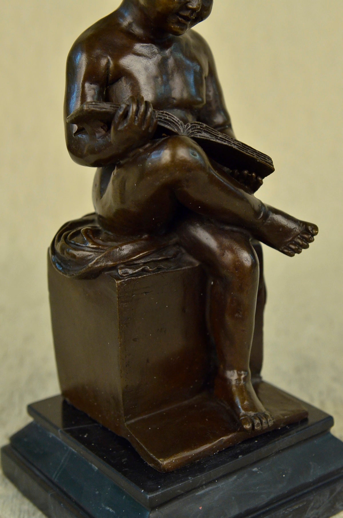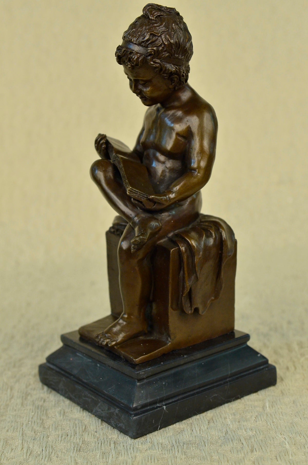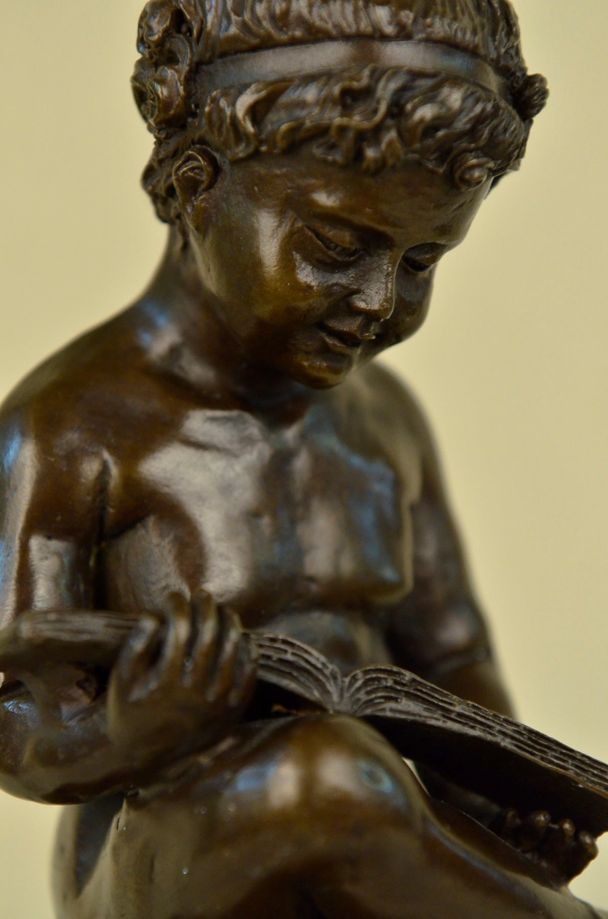 Bronze Sculpture Nude Young Girl Reading Book Art Deco Marble Base Figurine SALE