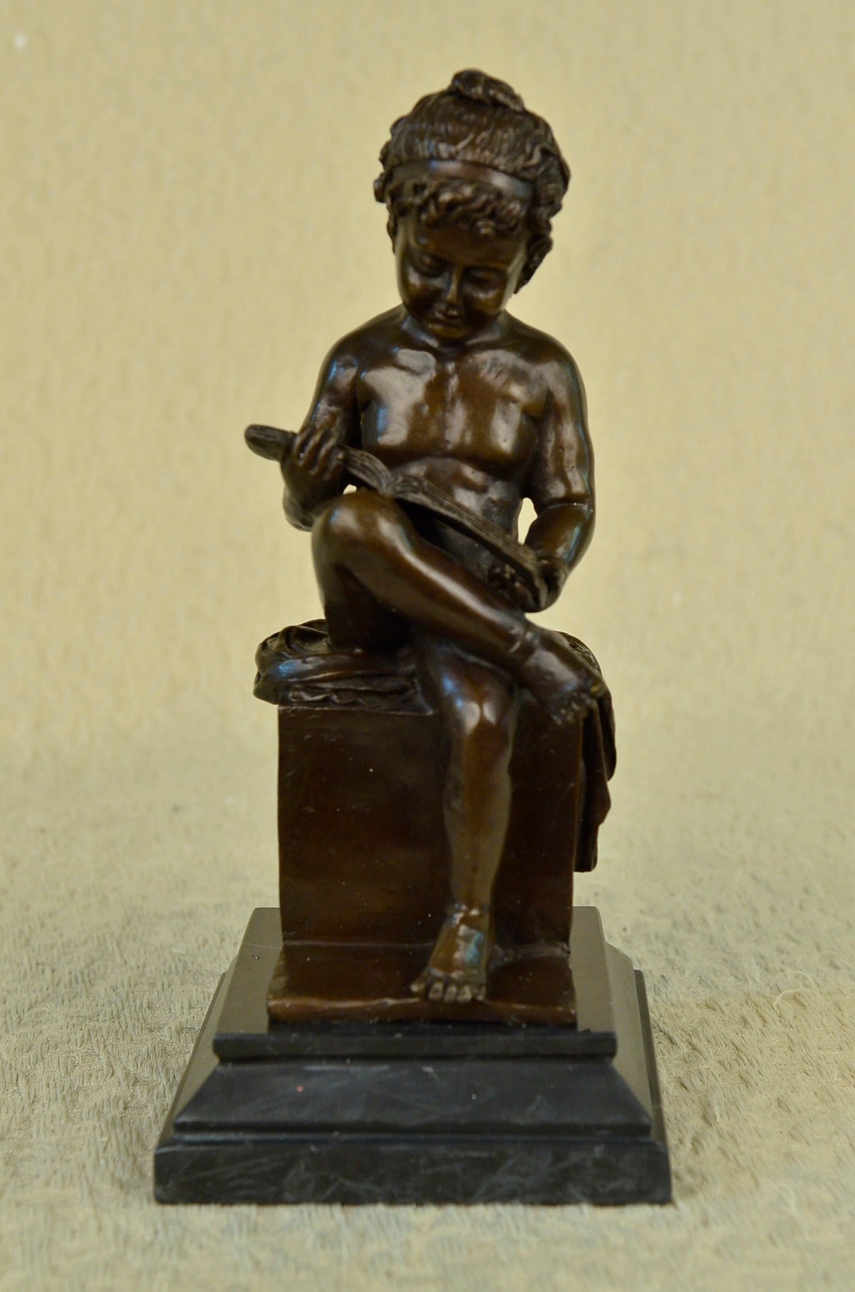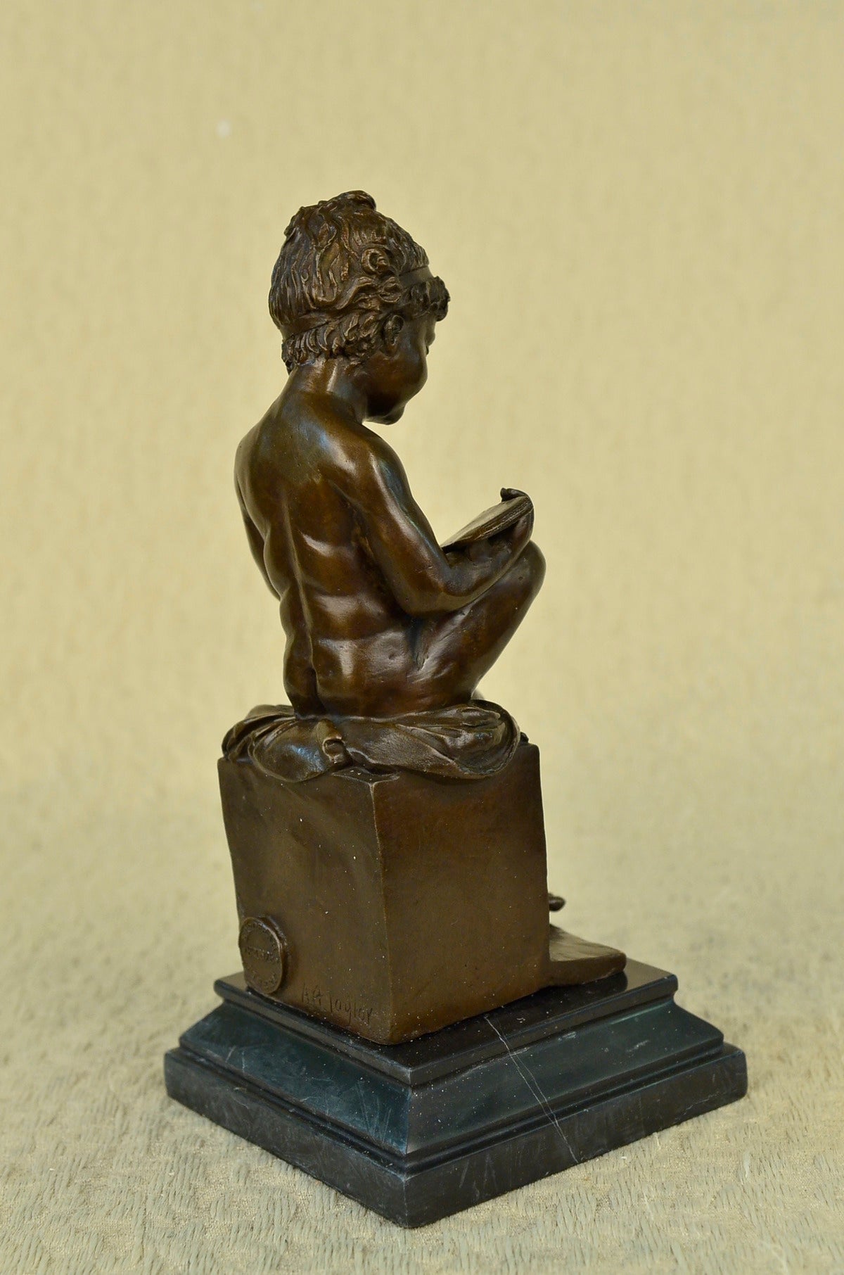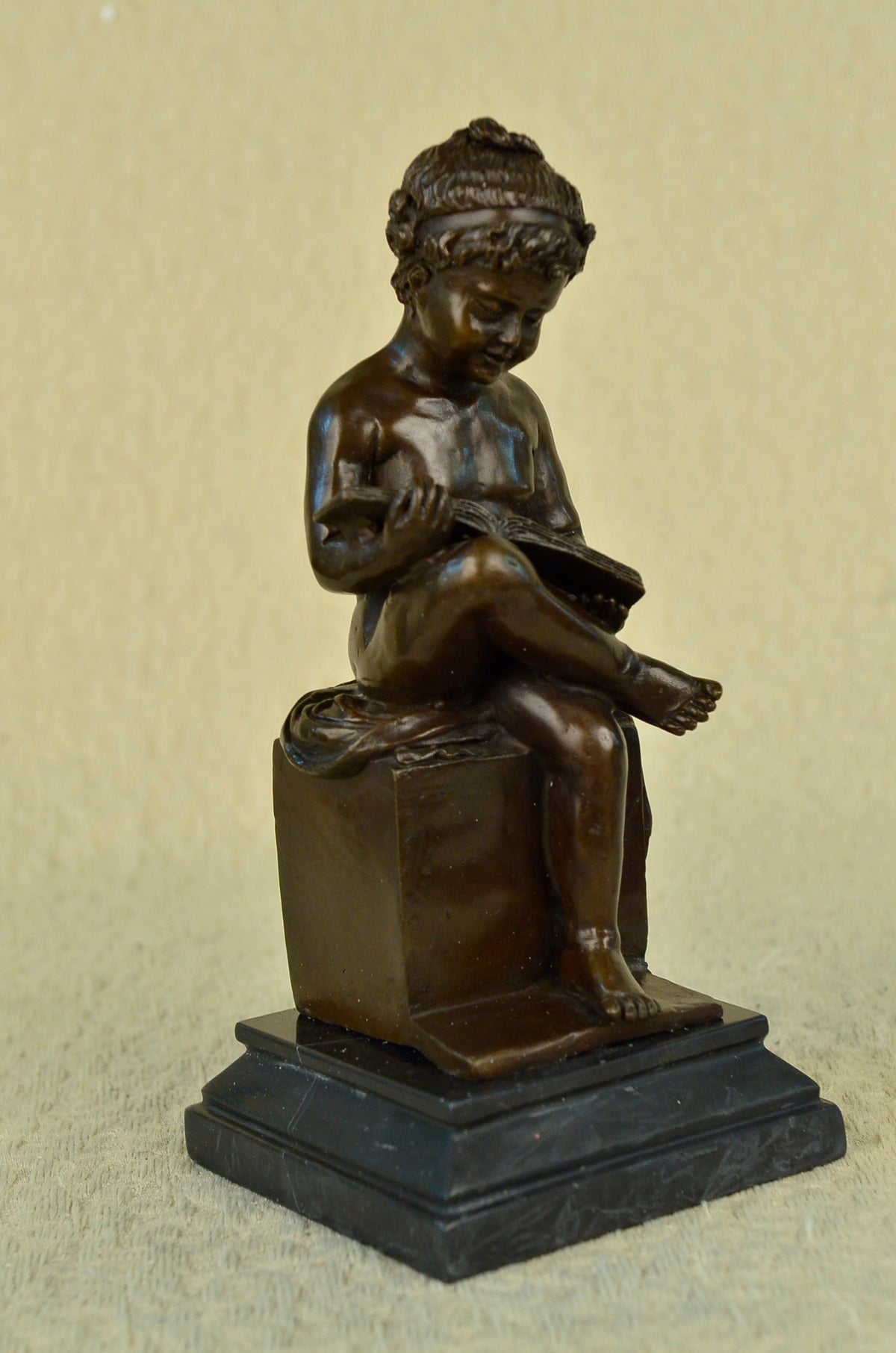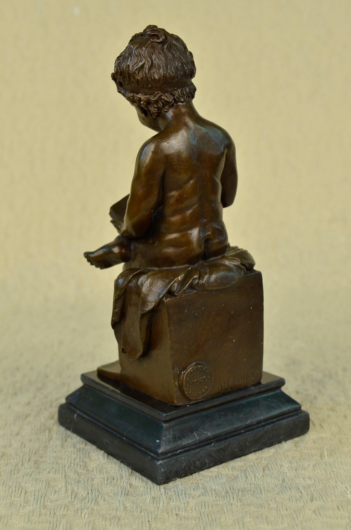Bronze Sculpture Nude Young Girl Reading Book Art Deco Marble Base Figurine SALE