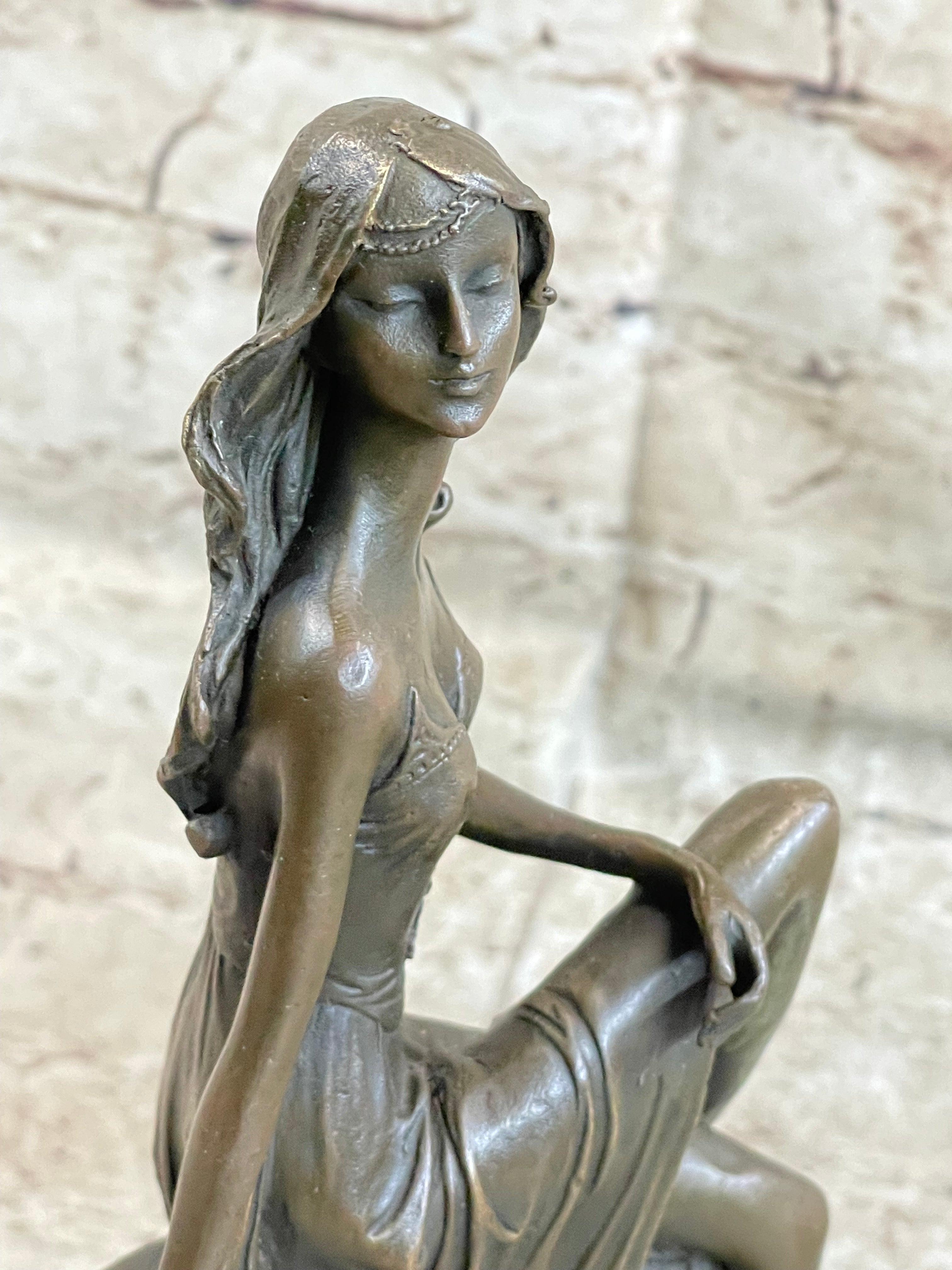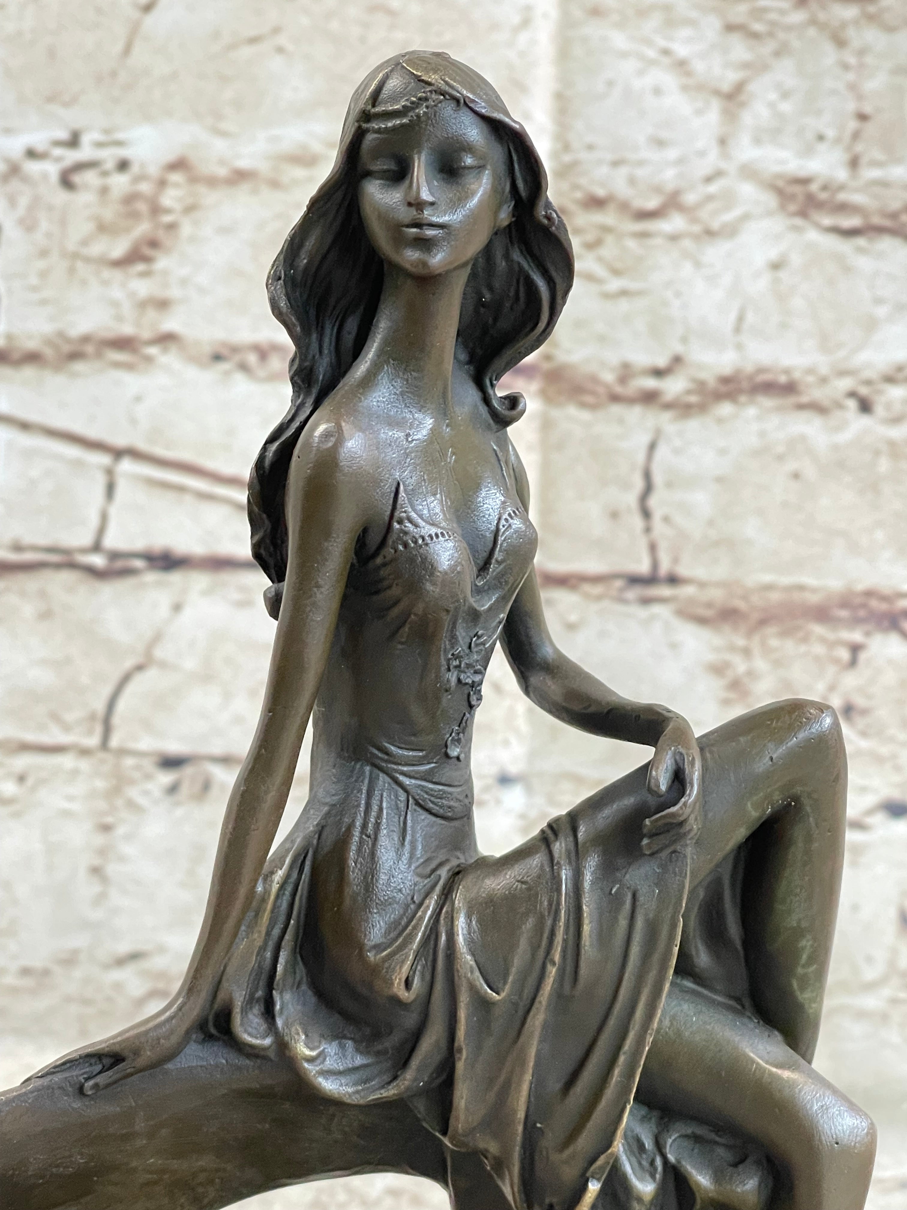 Skinny Sexy Art Deco Girl Bronze Statue Sculpture Figure 10" x 6.5"