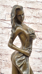Bronze Sculpture Statue of Nude Woman Partially Covered with Towel Original Art by Jean Patou