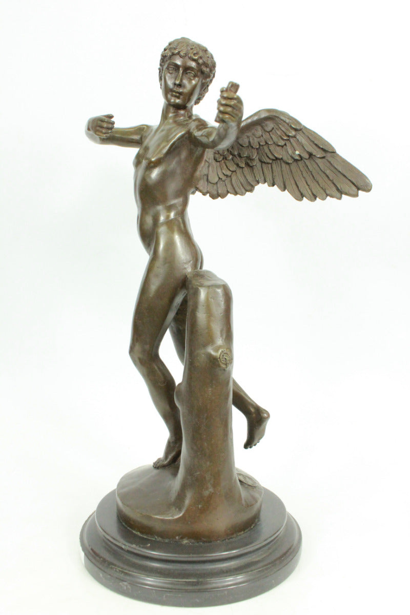 Bronze Sculpture Teenage Nude Cupid Valentine Lost Wax Hot Cast Figure Art Decor
