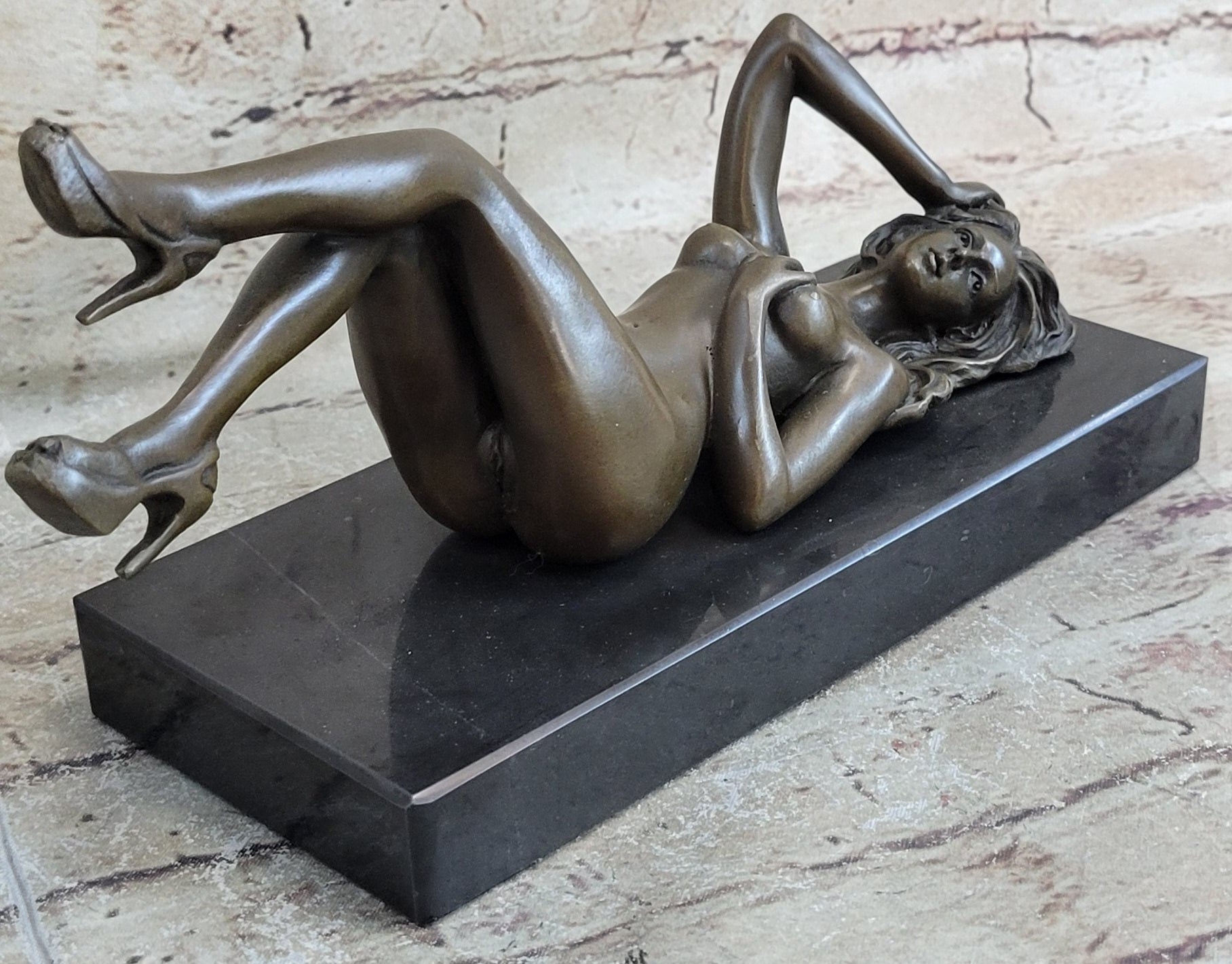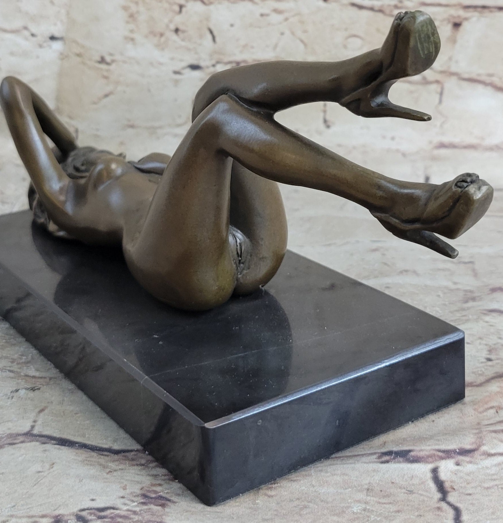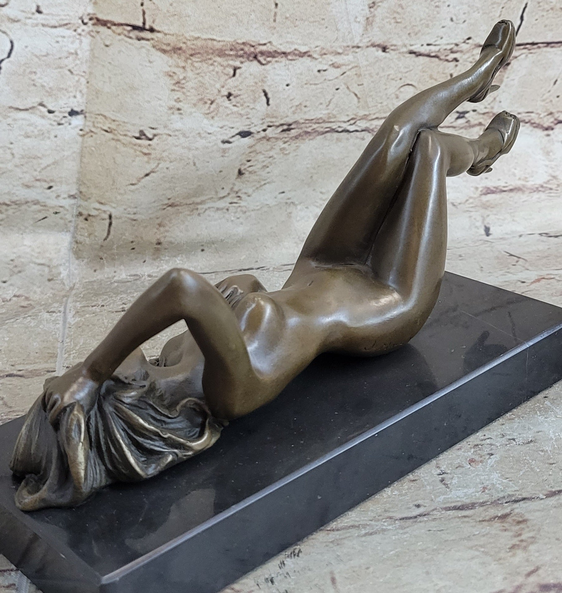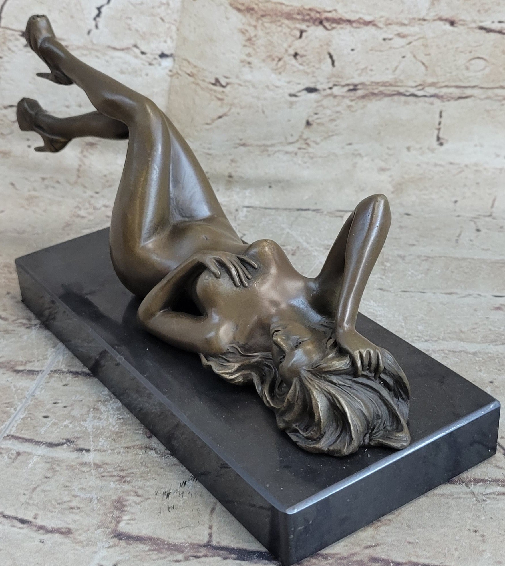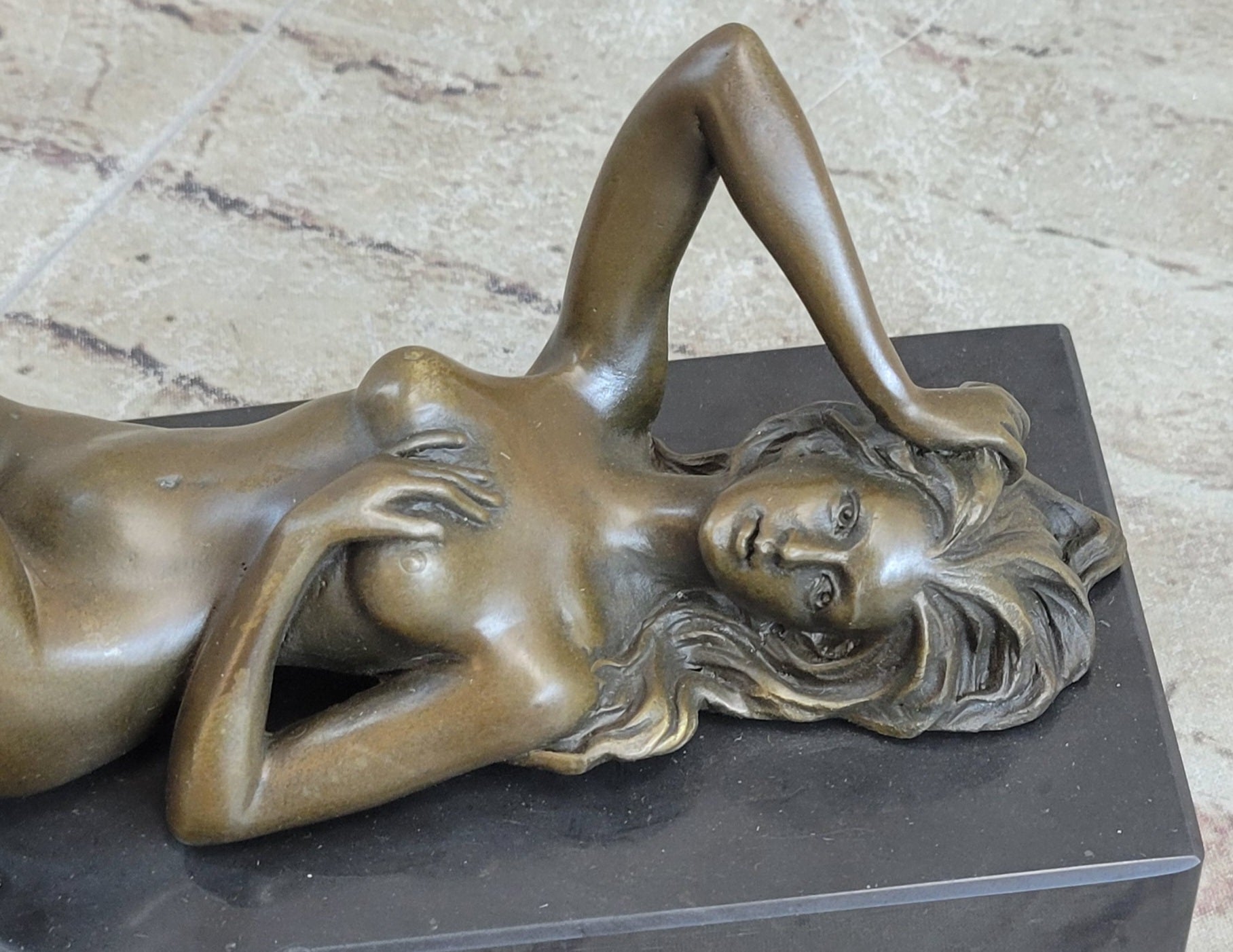 Erotic Bronze Signed Sculpture Statue Nude Woman Naked Lady Laying on Back 5" x 10"