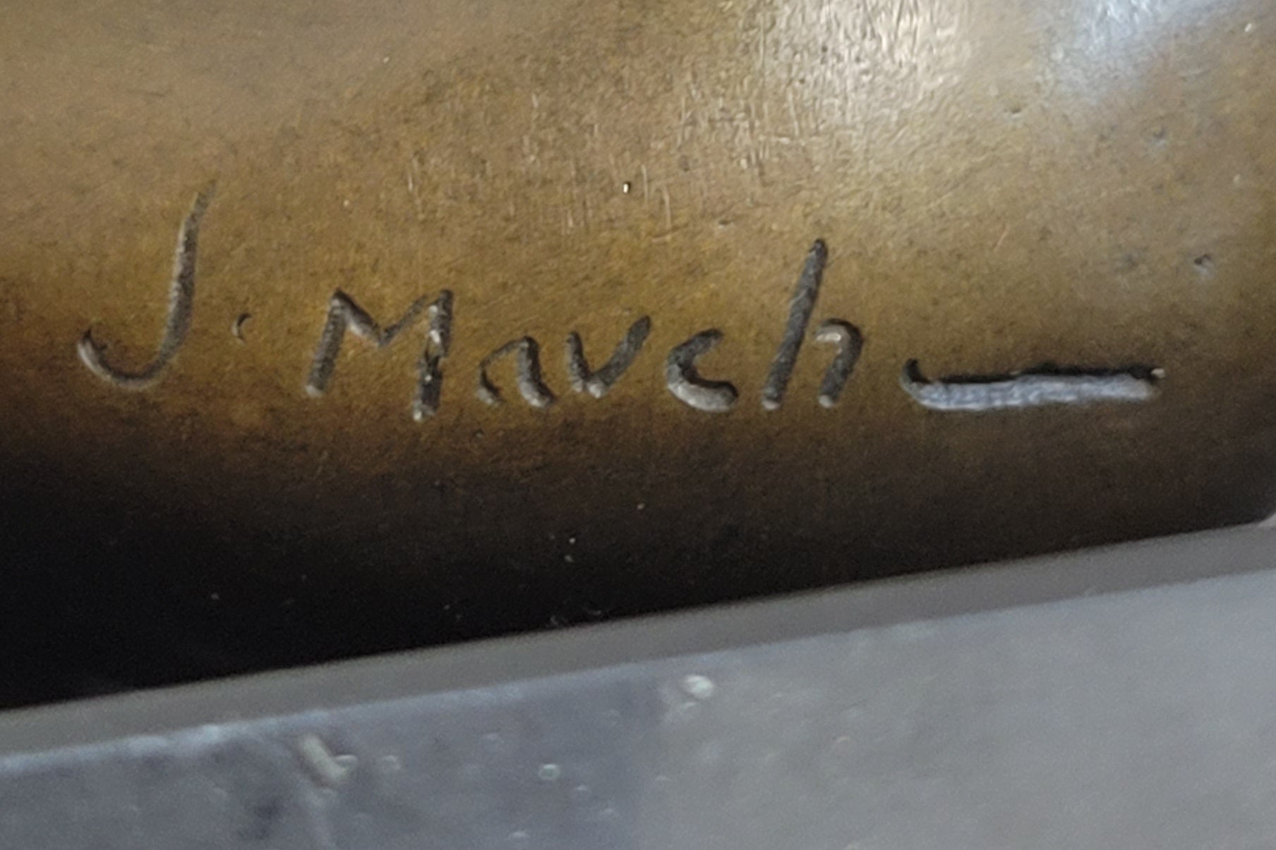 With its blend of sensuality, craftsmanship, and artistic expression, this bronze sculpture not only enhances the visual appeal of its surroundings but also invites contemplation, sparking curiosity about the inner world of the captivating figure. Mavchi's dedication to the art form is evident in the careful detailing and the overall composition, making this piece a timeless celebration of the female form and the artistry behind it.Bronze Dimensions with Marble Base: Height 5" X Width 10"