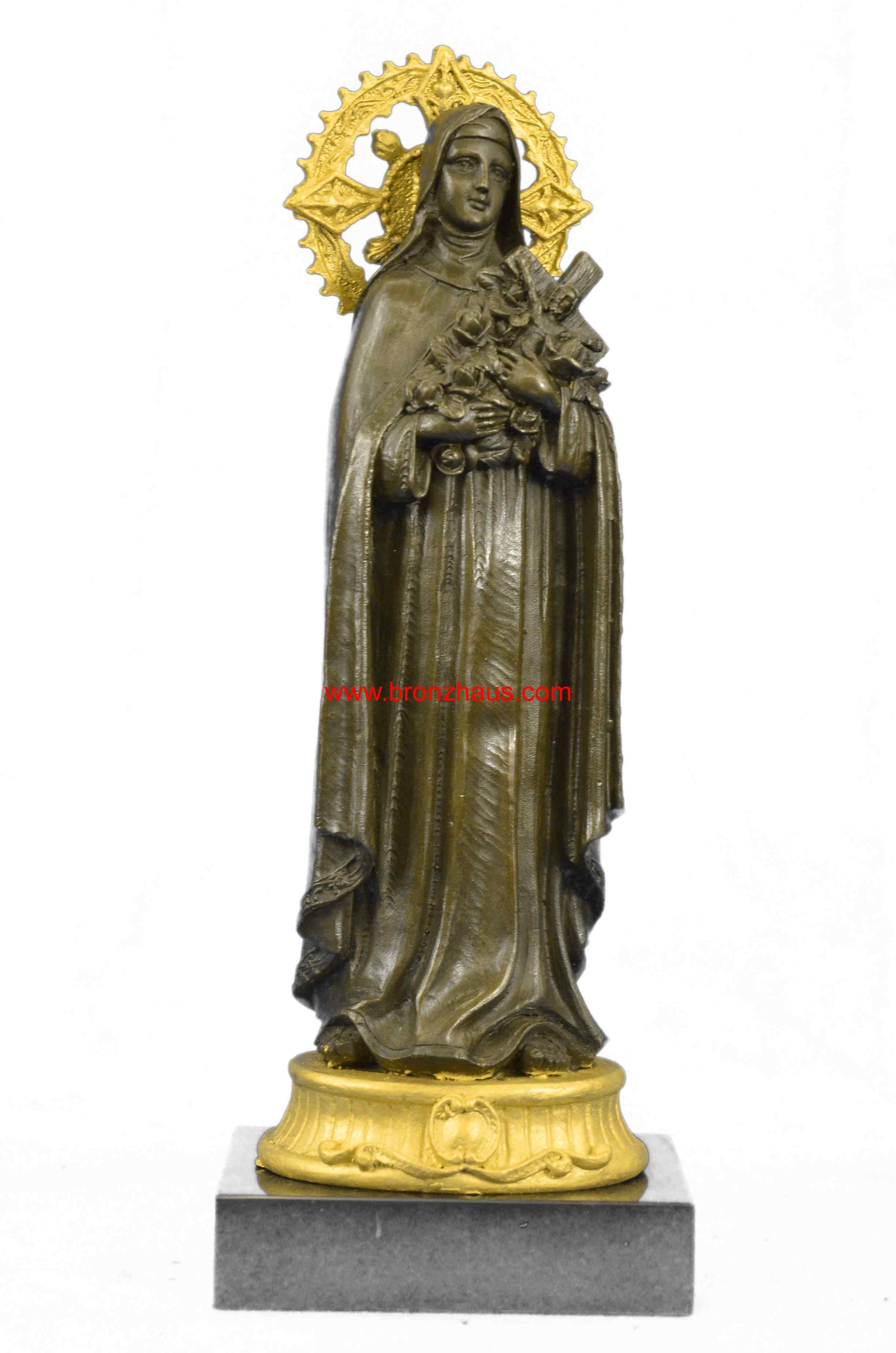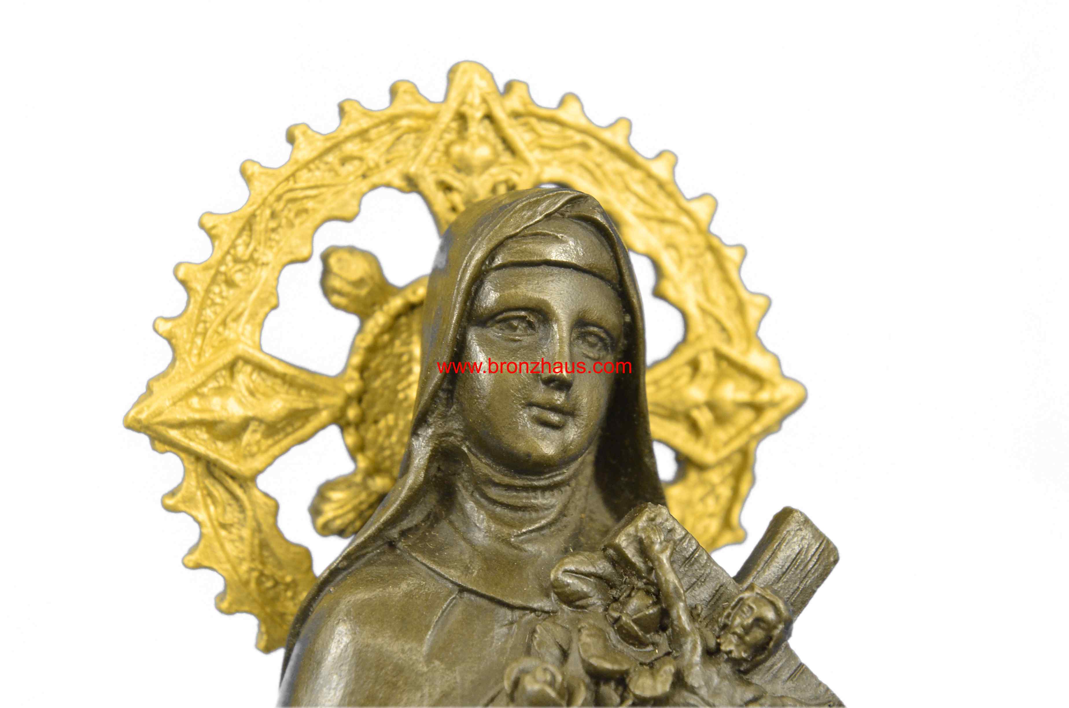 Bronze statue LITTLE FLOWER OF JESUS Clutching a Cross Hot Cast Classic Artwork