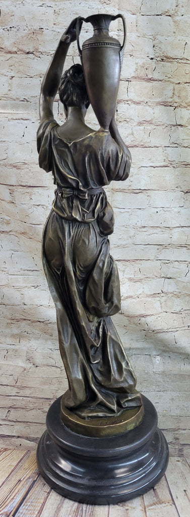 Bronze Statue Sculpture of Classical Roman Woman Water Carrier on Marble Base
