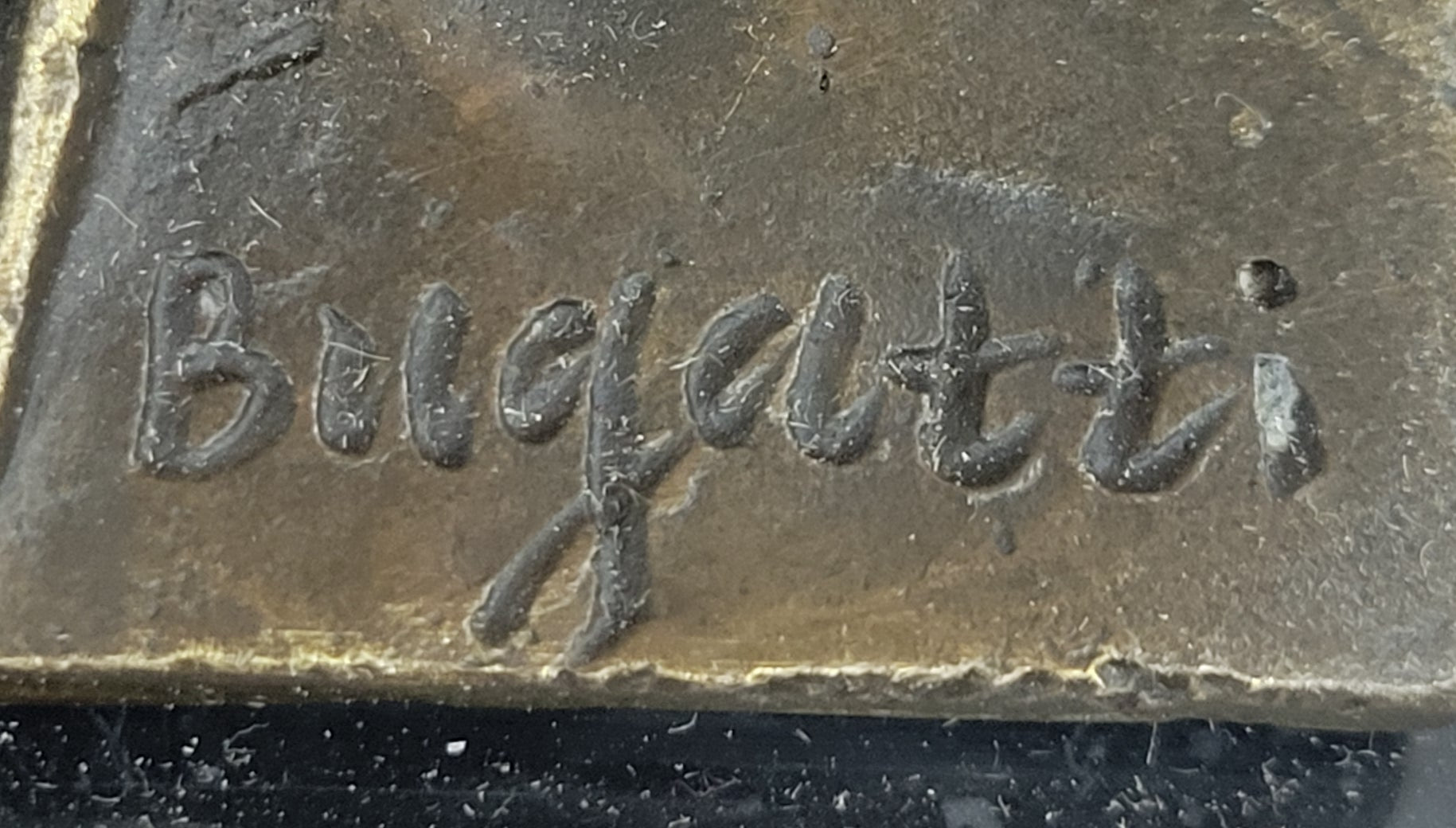 This is a truly stunning sculpture of an exotic bird, possibly an Egret or a Stork, beautifully modeled and executed by the renowned Italian artist Rembrandt Bugatti. Known for his masterful animal sculptures, Bugatti captures the elegance and grace of this bird with exquisite detail. The bird's body is adorned with a dark brown patina, enhancing its lifelike texture and form.